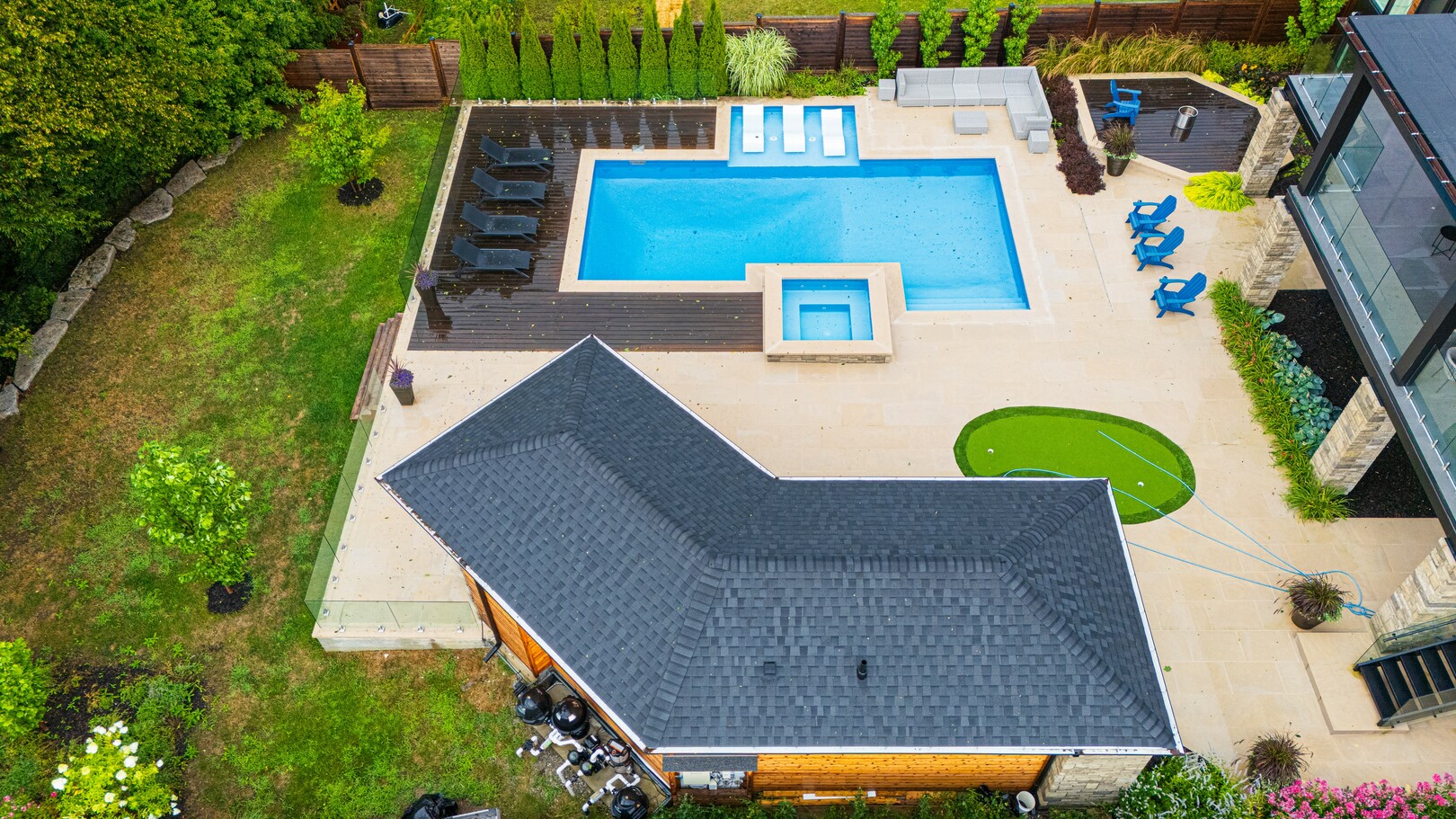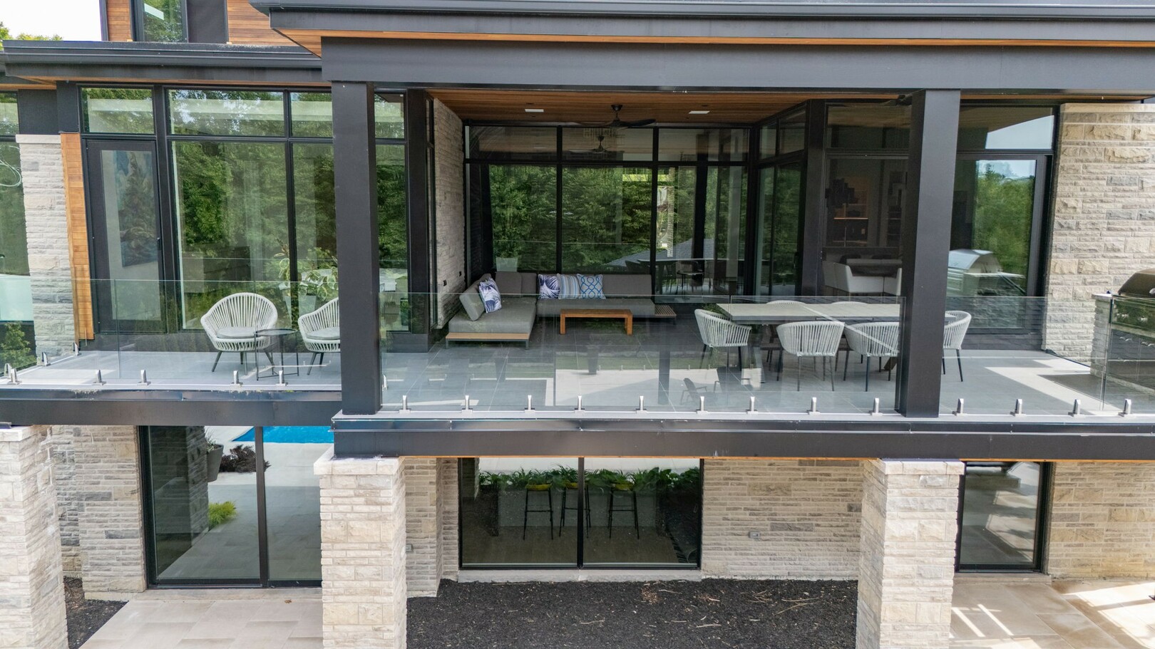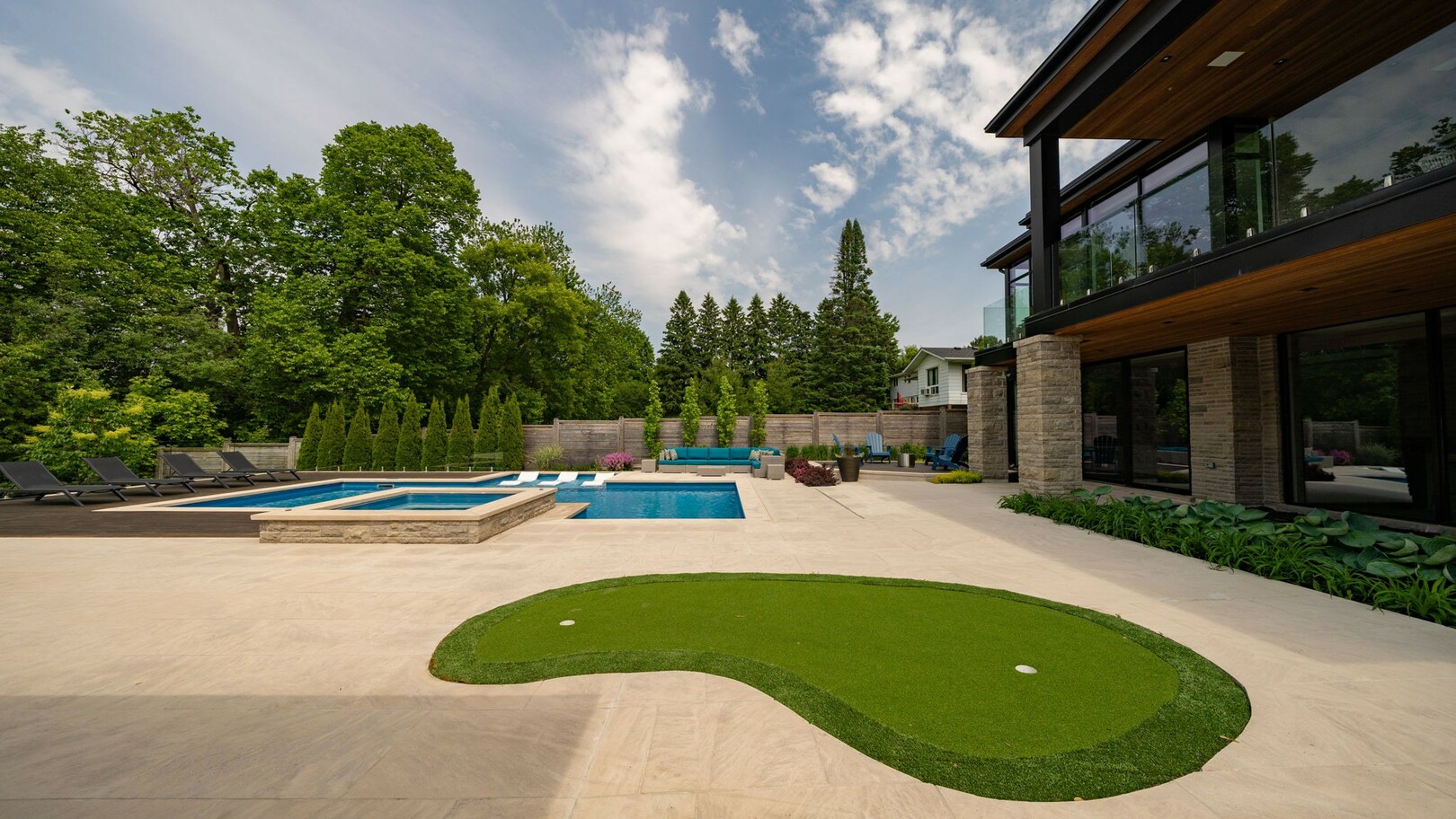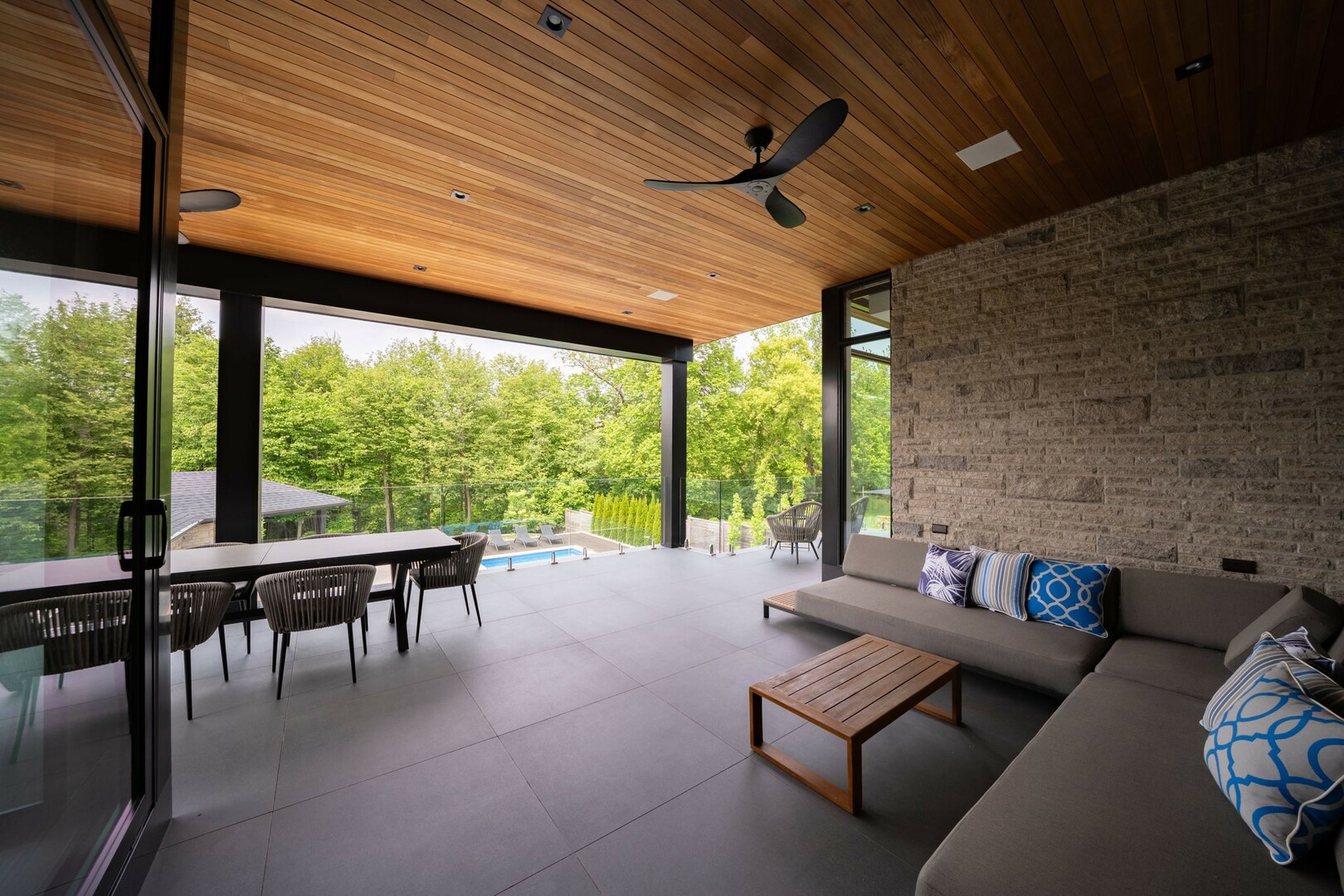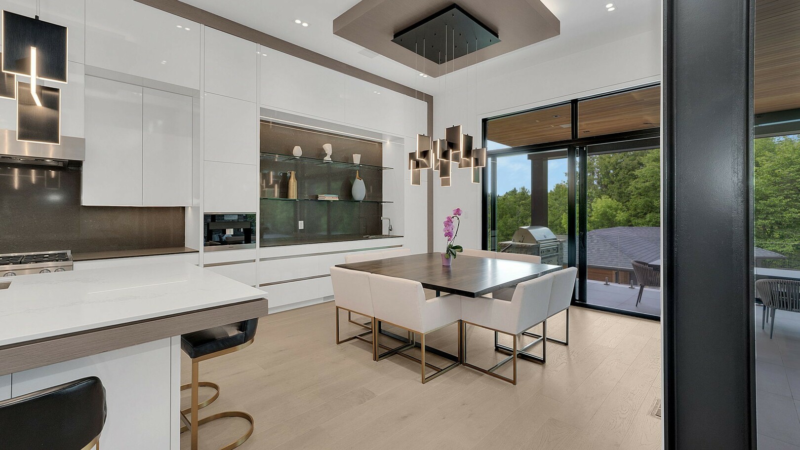 A masterpiece by David Small Designs, this architectural gem offers an elevated lifestyle with cutting-edge design and sophisticated finishes for the most discerning buyer. Soaring 10-20 ft ceilings, expansive floor-to-ceiling windows, wide-plank 8 white oak hardwood, and Eurofase designer lighting create a showstopping backdrop for everyday living and entertaining. - Smart home automation throughout (Lutron, Sonos) seamlessly blends technology with comfort. The open-concept chefs kitchen is a culinary dream, featuring premium Miele appliances and a spacious walk-in butlers' pantry. - Indulge in the bespoke main floor primary suite offering privacy, elegance, W/o to balcony, ravine views and custom millwork throughout. The second-floor family room can easily be converted into an additional bedroom to suit your needs. - The premium walkout basement is designed for both relaxation and entertainment, featuring a serene yoga studio, sophisticated cocktail lounge, and an inviting media room. Step outside to your private backyard oasis complete with an inground saltwater pool, hot tub, covered loggia, and a cabana with a cozy fireplace. Fully landscaped with elegant Indiana limestone and backing onto a tranquil ravine, this outdoor space offers unmatched privacy and natural beauty. - Additional Highlights: Heated driveway and walk way, Heated Floors,Impeccable craftsmanship & attention to every detail! - Located Mins To Highway 400, go train, Kings Finest Schools ( Country Day/Villa Nova/ King City High) walking distance to restaurants, amenities, Parks and walking trails. (id:9346)