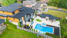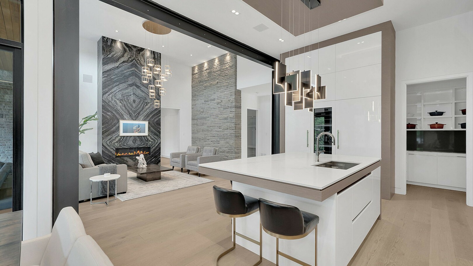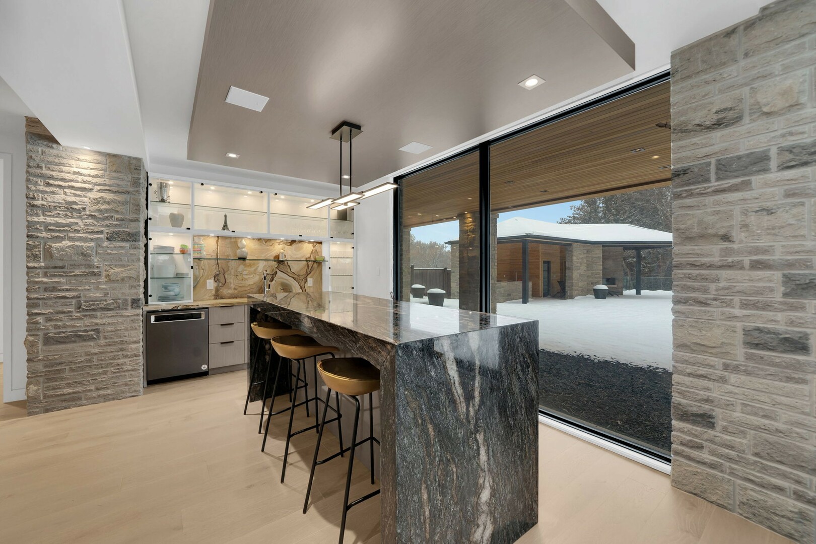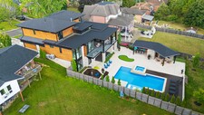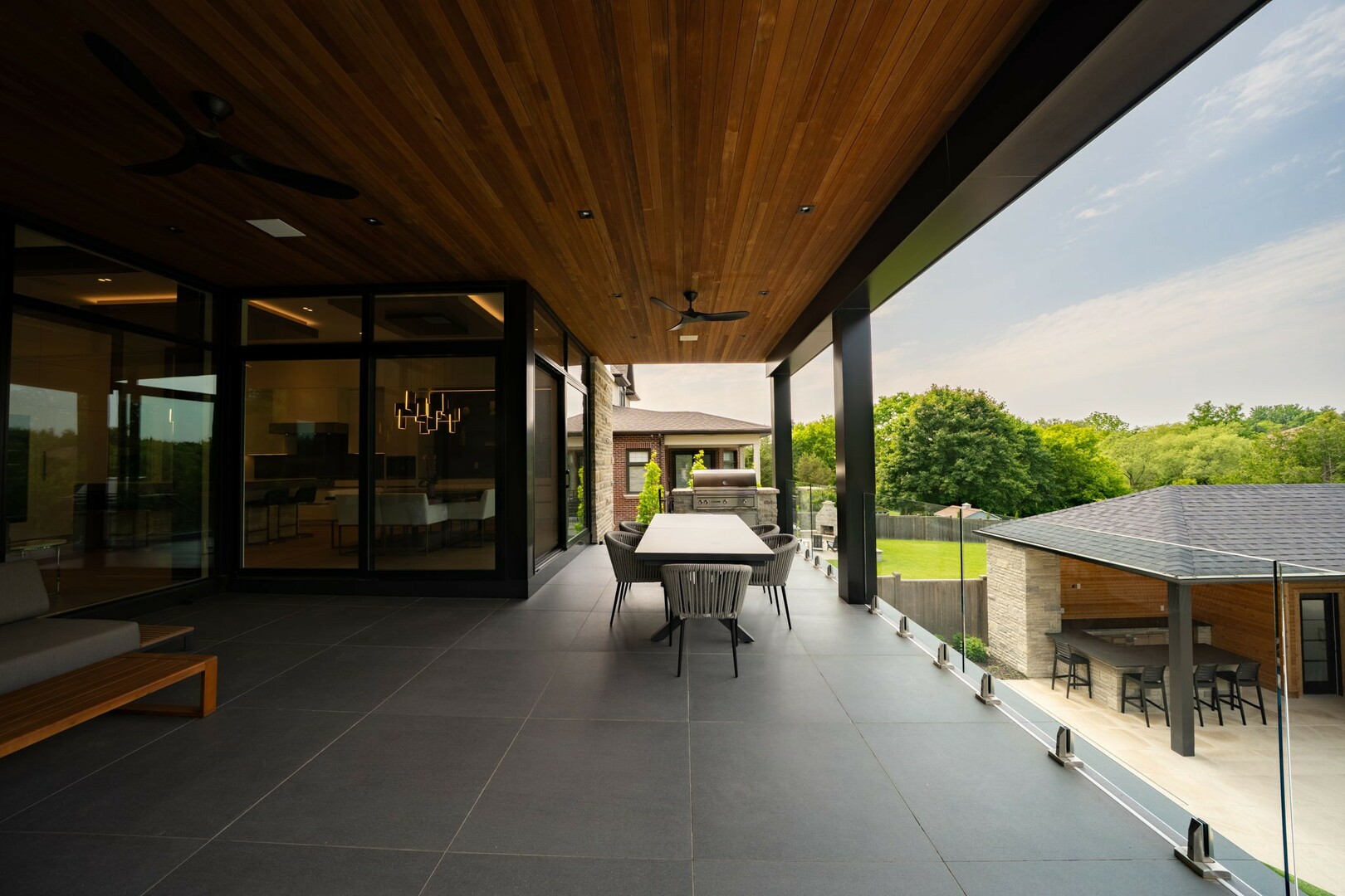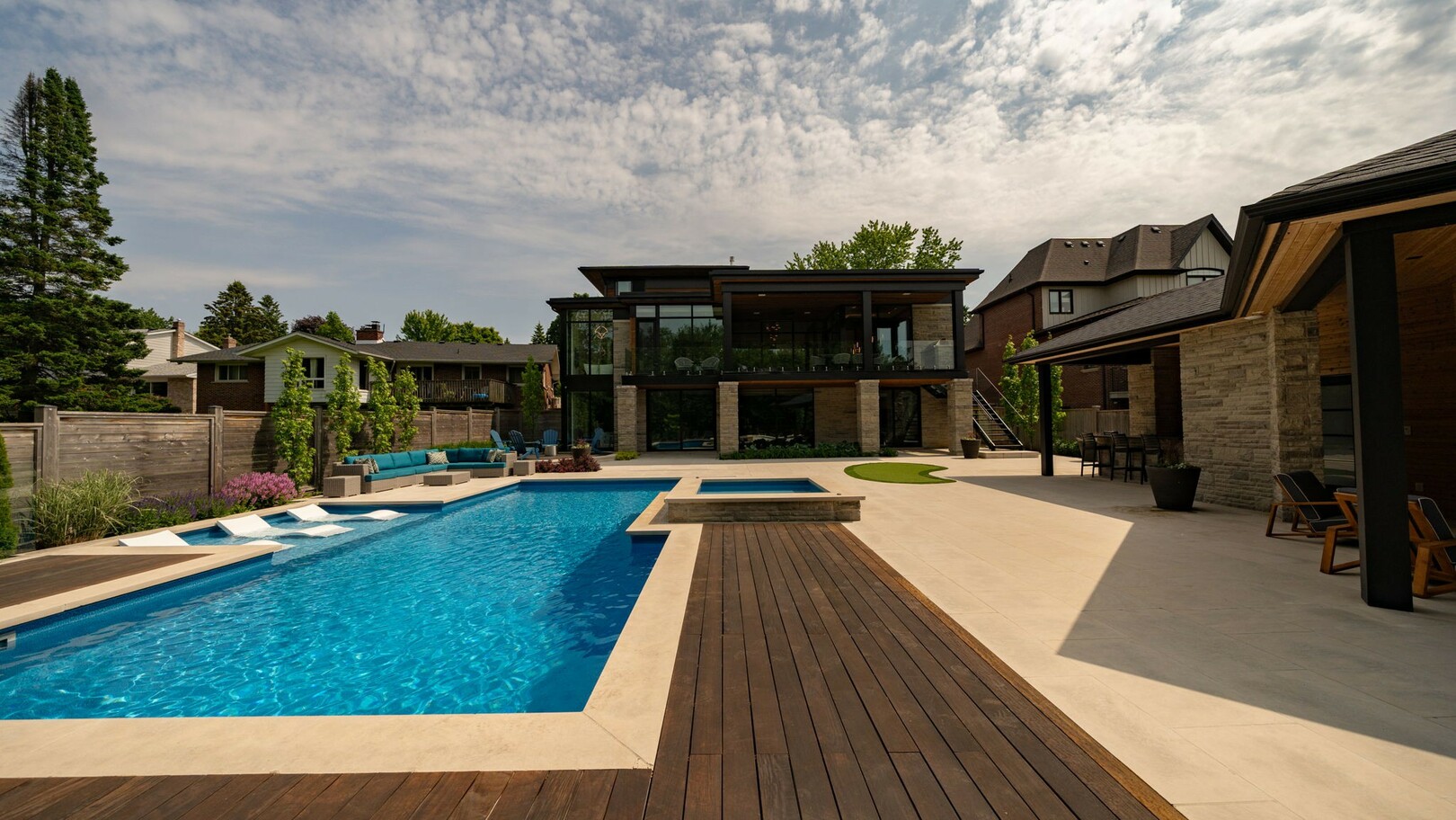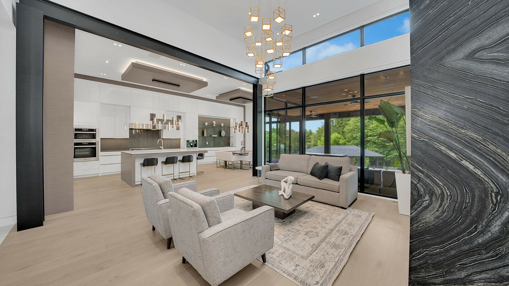 A masterpiece by David Small Designs, this architectural gem offers an elevated lifestyle with cutting-edge design and sophisticated finishes for the most discerning buyer. Soaring 10-20 ft ceilings, expansive floor-to-ceiling windows, wide-plank 8 white oak hardwood, and Eurofase designer lighting create a showstopping backdrop for everyday living and entertaining. - Smart home automation throughout (Lutron, Sonos) seamlessly blends technology with comfort. The open-concept chefs kitchen is a culinary dream, featuring premium Miele appliances and a spacious walk-in butlers' pantry. - Indulge in the bespoke main floor primary suite offering privacy, elegance, W/o to balcony, ravine views and custom millwork throughout. The second-floor family room can easily be converted into an additional bedroom to suit your needs. - The premium walkout basement is designed for both relaxation and entertainment, featuring a serene yoga studio, sophisticated cocktail lounge, and an inviting media room. Step outside to your private backyard oasis complete with an inground saltwater pool, hot tub, covered loggia, and a cabana with a cozy fireplace. Fully landscaped with elegant Indiana limestone and backing onto a tranquil ravine, this outdoor space offers unmatched privacy and natural beauty. - Additional Highlights: Heated driveway and walk way, Heated Floors,Impeccable craftsmanship & attention to every detail! - Located Mins To Highway 400, go train, Kings Finest Schools ( Country Day/Villa Nova/ King City High) walking distance to restaurants, amenities, Parks and walking trails. (id:9346)