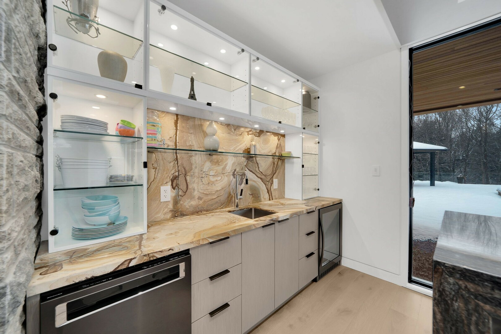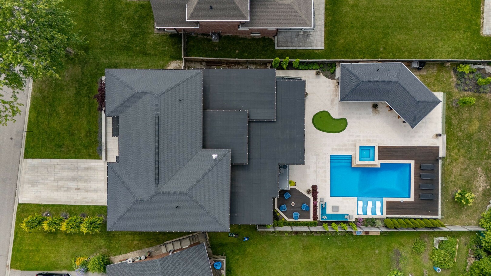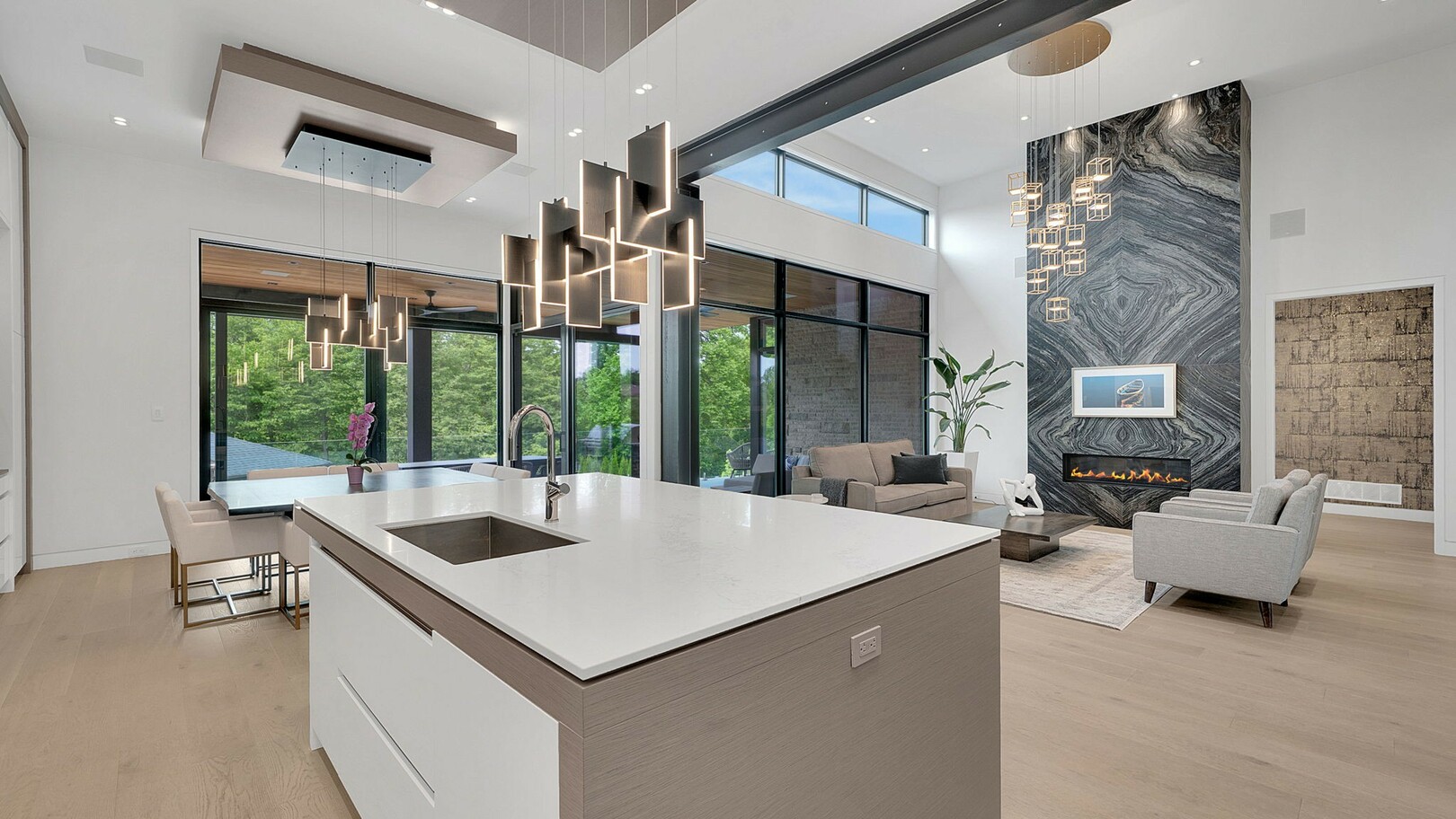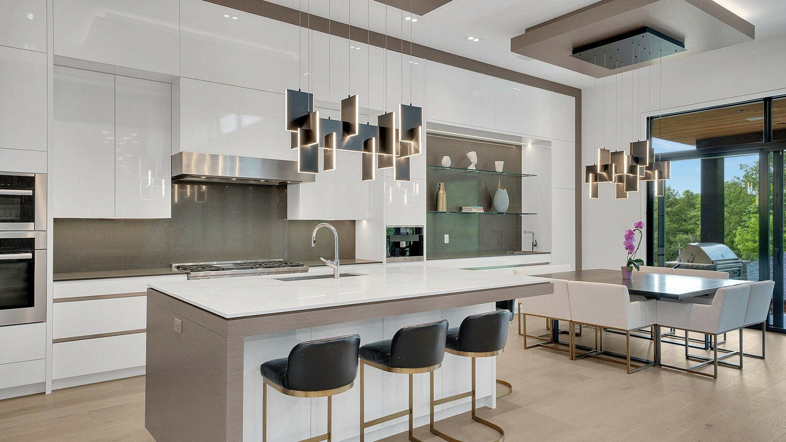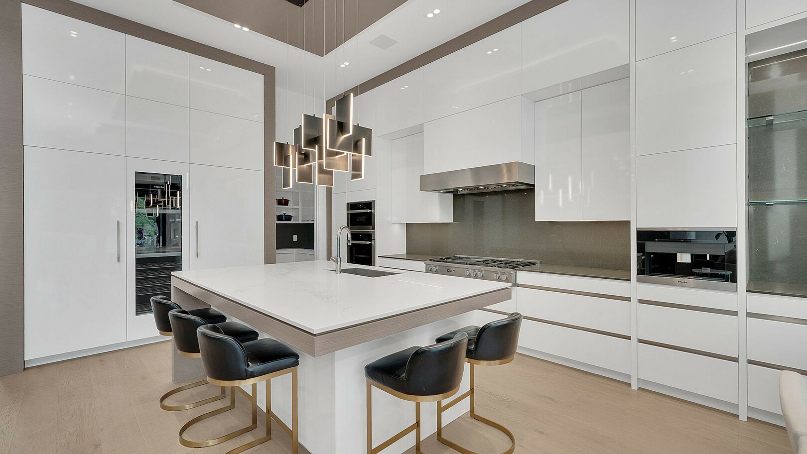 A masterpiece by David Small Designs, this architectural gem offers an elevated lifestyle with cutting-edge design and sophisticated finishes for the most discerning buyer. Soaring 10-20 ft ceilings, expansive floor-to-ceiling windows, wide-plank 8 white oak hardwood, and Eurofase designer lighting create a showstopping backdrop for everyday living and entertaining. - Smart home automation throughout (Lutron, Sonos) seamlessly blends technology with comfort. The open-concept chefs kitchen is a culinary dream, featuring premium Miele appliances and a spacious walk-in butlers' pantry. - Indulge in the bespoke main floor primary suite offering privacy, elegance, W/o to balcony, ravine views and custom millwork throughout. The second-floor family room can easily be converted into an additional bedroom to suit your needs. - The premium walkout basement is designed for both relaxation and entertainment, featuring a serene yoga studio, sophisticated cocktail lounge, and an inviting media room. Step outside to your private backyard oasis complete with an inground saltwater pool, hot tub, covered loggia, and a cabana with a cozy fireplace. Fully landscaped with elegant Indiana limestone and backing onto a tranquil ravine, this outdoor space offers unmatched privacy and natural beauty. - Additional Highlights: Heated driveway and walk way, Heated Floors,Impeccable craftsmanship & attention to every detail! - Located Mins To Highway 400, go train, Kings Finest Schools ( Country Day/Villa Nova/ King City High) walking distance to restaurants, amenities, Parks and walking trails. (id:9346)