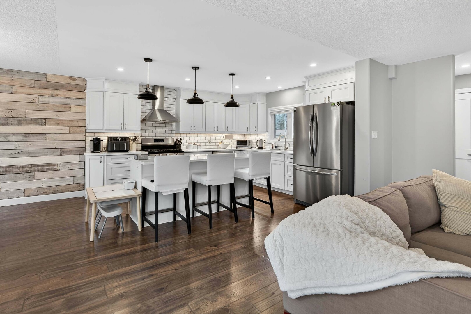 WOW FACTOR! The home you've been waiting for. This fully renovated 3+1 bedroom, 3 full bathroom elevated bungalow combines stunning design with exceptional flexibility for today's buyers. Located in Kingston's highly sought-after Westwoods neighbourhood, known for some of the city's top-rated schools, this home is ideal for growing families or those seeking multigenerational living potential. With just a few quick adjustments, the secondary suite can be ready to go, transforming this charming bungalow into a functional and inviting multigenerational home.The bright, open-concept main floor is ideal for owners looking to offset their mortgage by completing the 90% finished in-law suite, or simply enjoy it as it is currently used-as a complete single-family home. The beautifully finished kitchen flows seamlessly into the main living space.The primary suite is a true retreat, complete with a custom walk-through closet and a spa-inspired ensuite with porcelain floors and quartz countertops.The fully finished lower level is where this home truly shines. With a separate front entrance, spacious layout, large bedroom, full bathroom, roughed-in kitchen area, and washer/dryer hookups on both levels, this space is perfectly set up for a future in-law suite or secondary unit-just add a kitchenette to complete the setup.Extensively updated, the home was fully renovated in 2019, with a furnace installed in 2018. In March 2024, all bathrooms were re-tiled and updated, vinyl plank flooring was added to the laundry and playroom, and the basement bathroom septic pump chamber was completed. Enjoy the added bonus of a drive-through garage and a large, fully fenced backyard-perfect for families, entertaining, or added tenant appeal. Ideal for multi-generational living or buyers seeking a mortgage helper, this home offers space, flexibility, and long-term value. (id:9346)