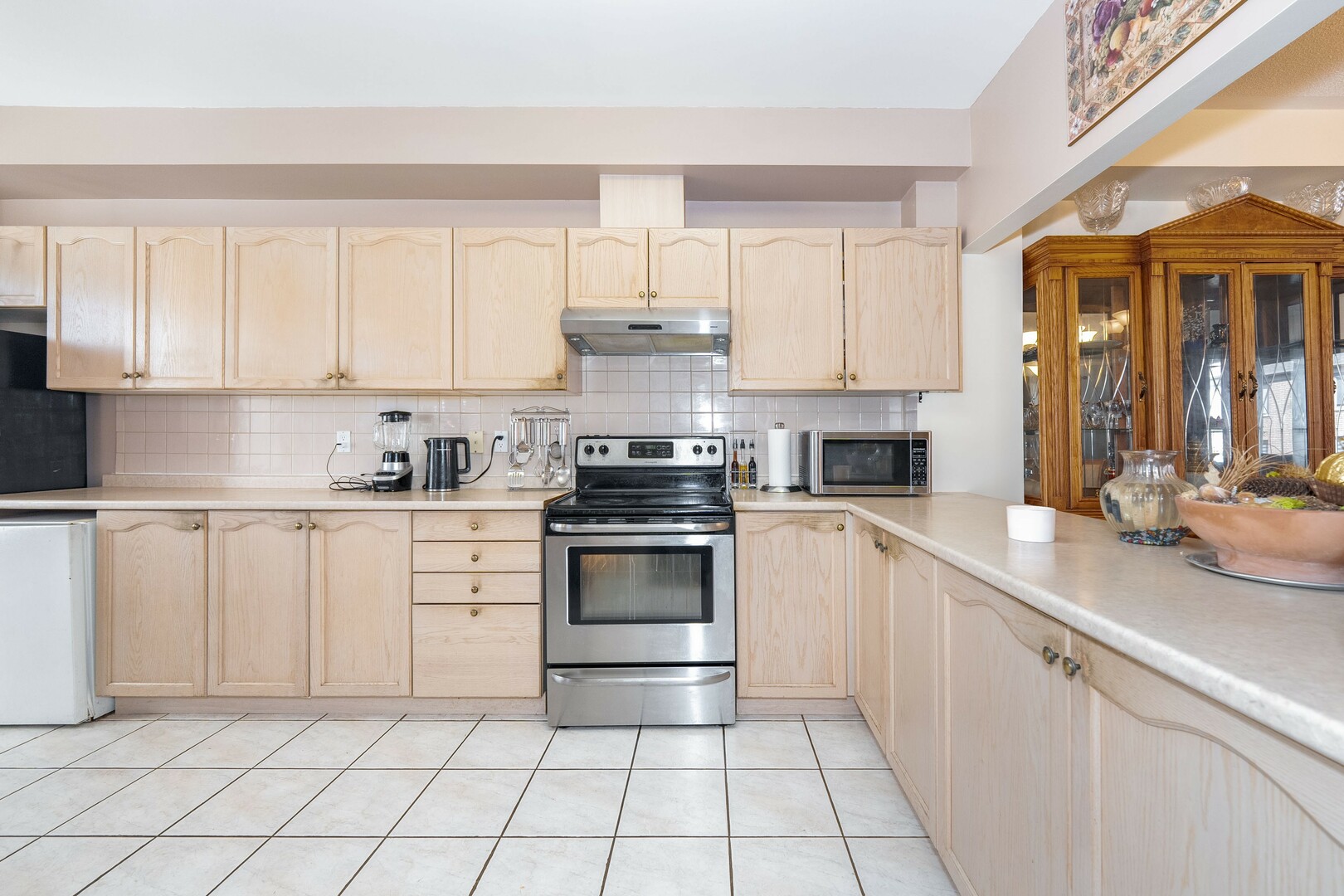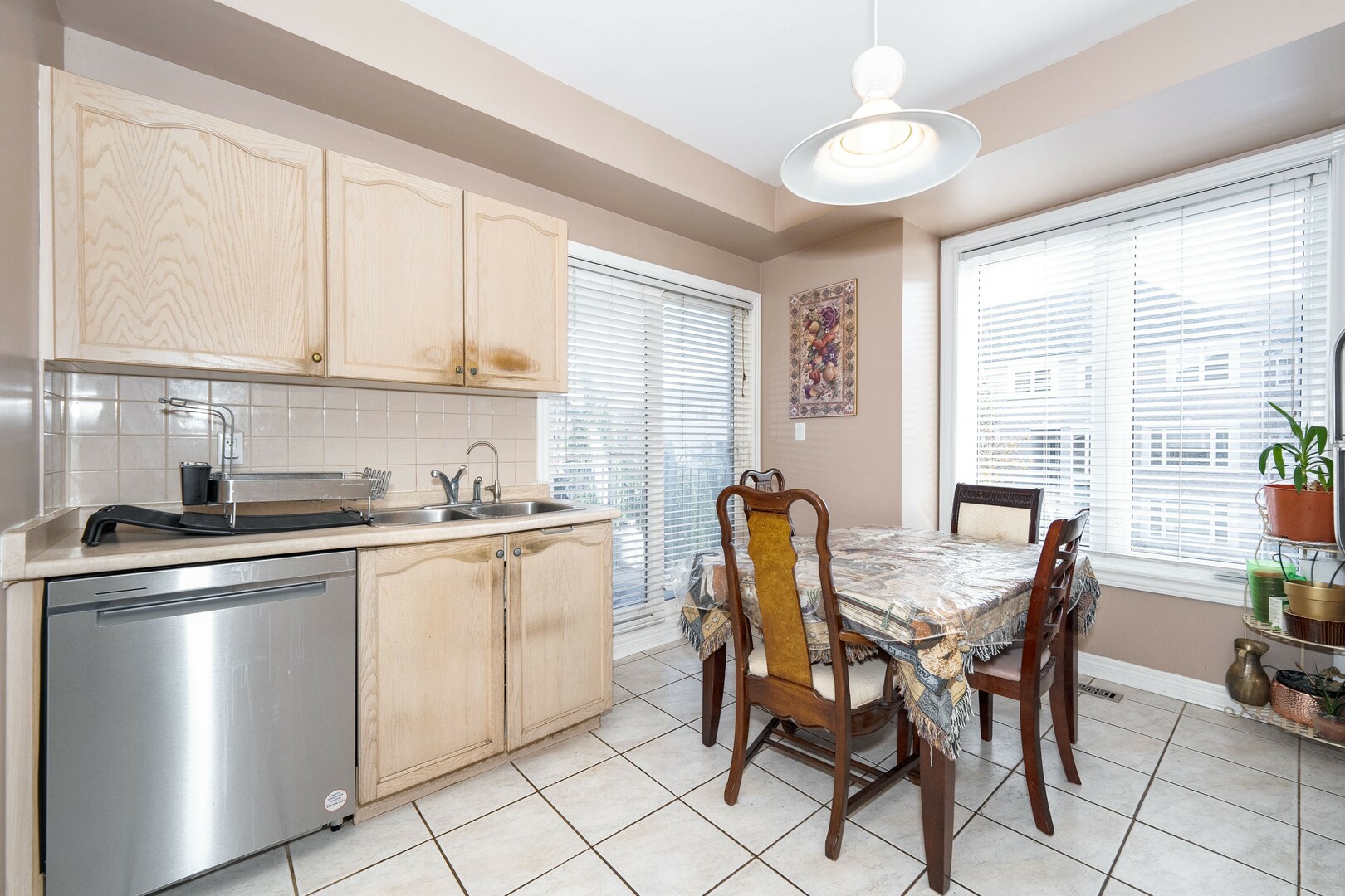 La Dolce Vita; Largest Freehold Townhouse Model "Clainborne" built by Times Developments, No monthly maintenance fee, Nestled in a peaceful residential area with park, pond, playground and high-ranking schools like St. Robert's, Doncrest, Thornlea. interlocking double driveway with no sidewalk and 2 parking spaces built in garage, landscaped, large eat-in kitchen, walk to balcony from breakfast area, extra kitchen cabinetry, combined open concept living/Dining, large family room in lower level with walk out to yard, large prime Br with 5 pc ensuite, oval top. newer hardwood flooring, fresh paint and upgraded some windows. Close all amenities, shops, restaurants, grocery stores and major highways like 404, Hwy 7.