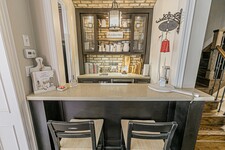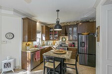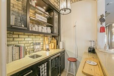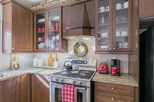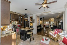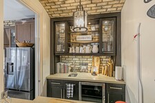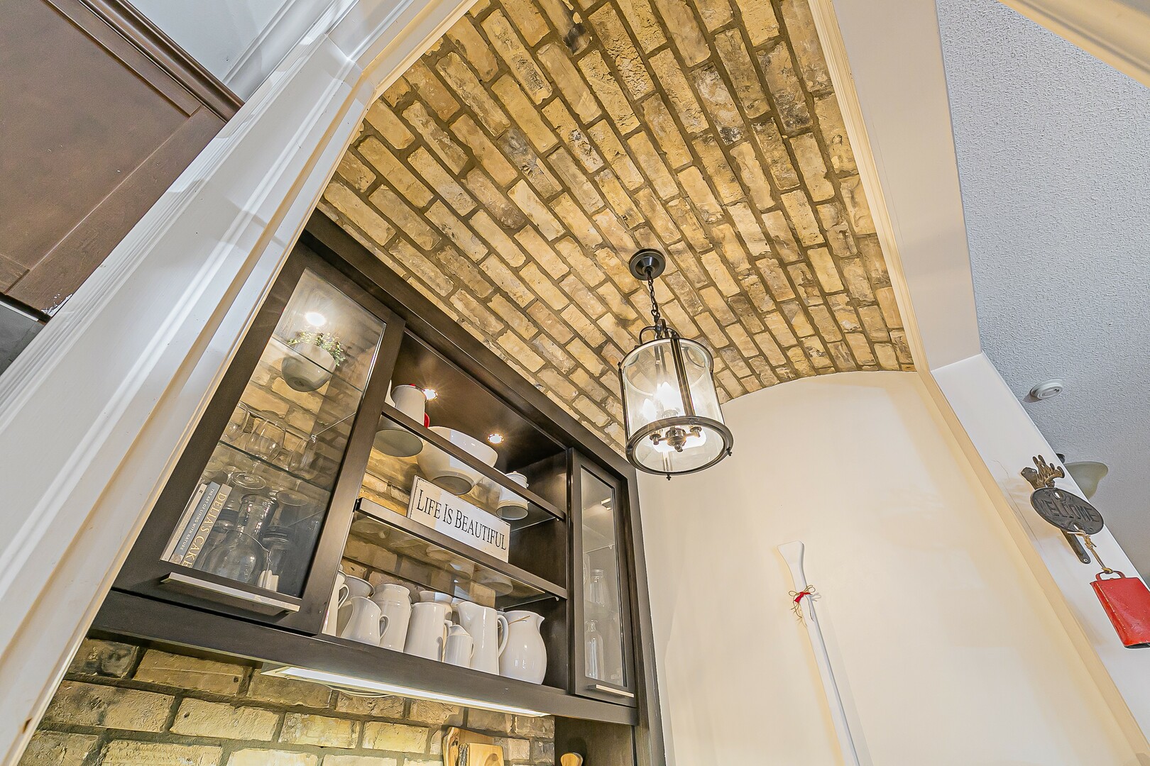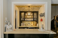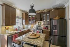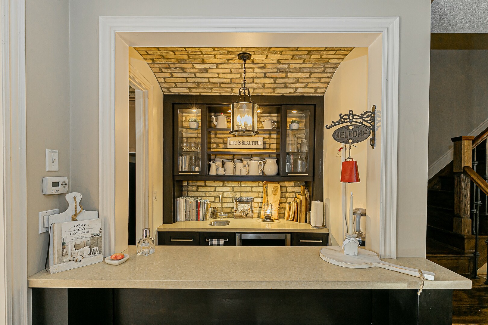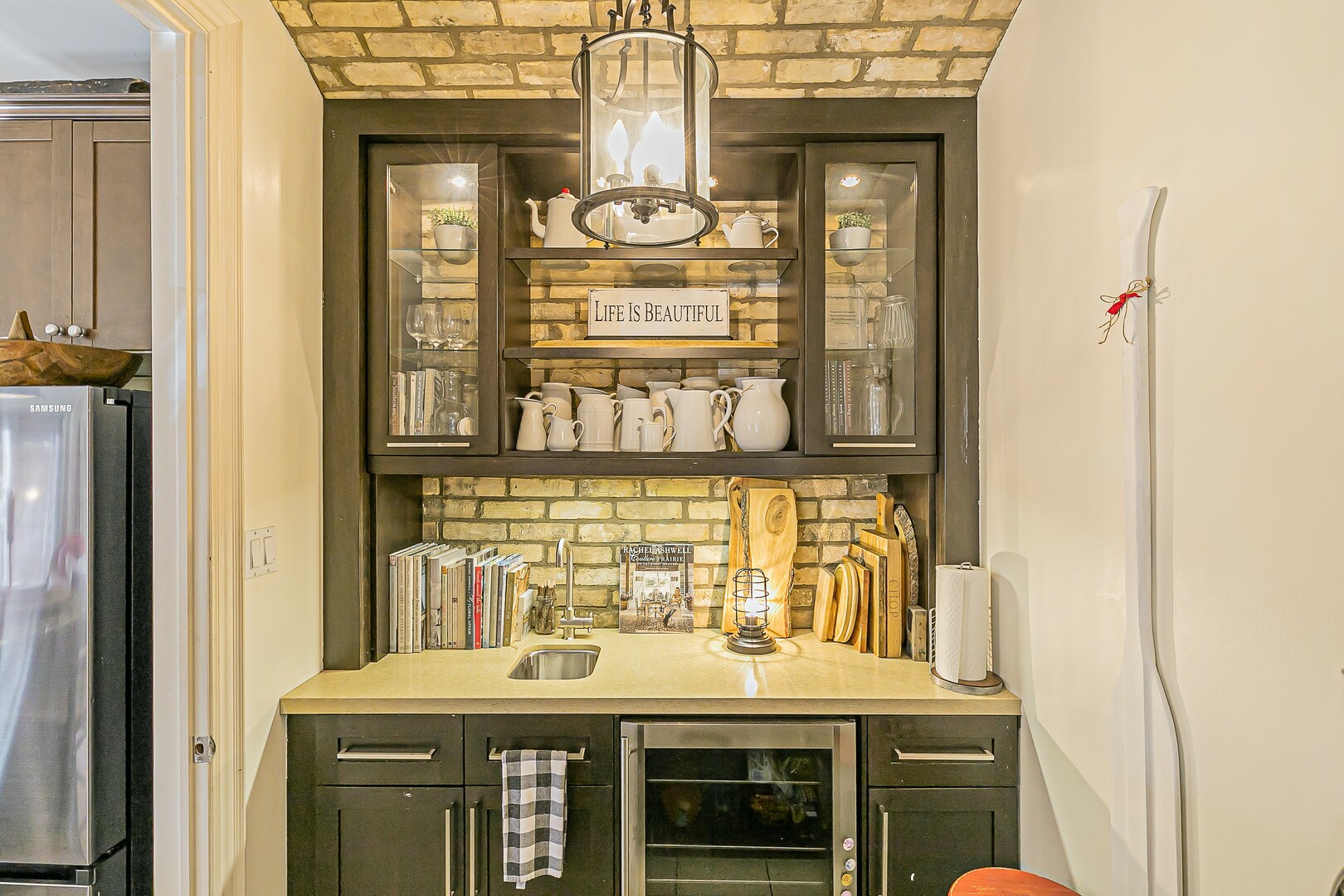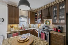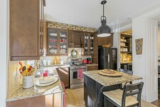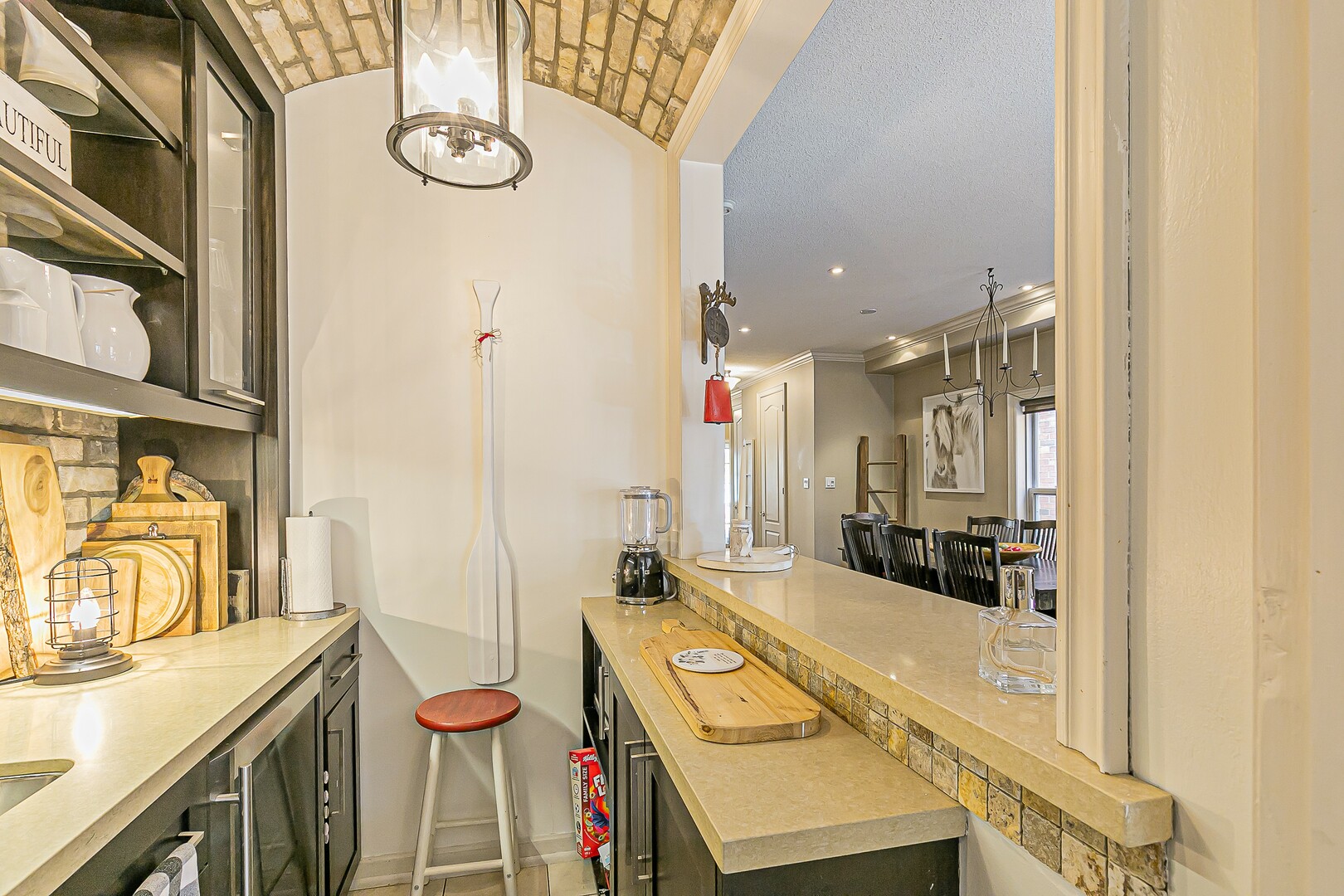 The Gourmet Kitchen features Granite Counters, Stainless Steel appliances including a Gas Range and convenient Center Island. Just off the kitchen is the custom built Chef’s Pantry with stone feature wall, curved ceiling, corian counters, wet bar and bar fridge, this is where everyone will want to gather.