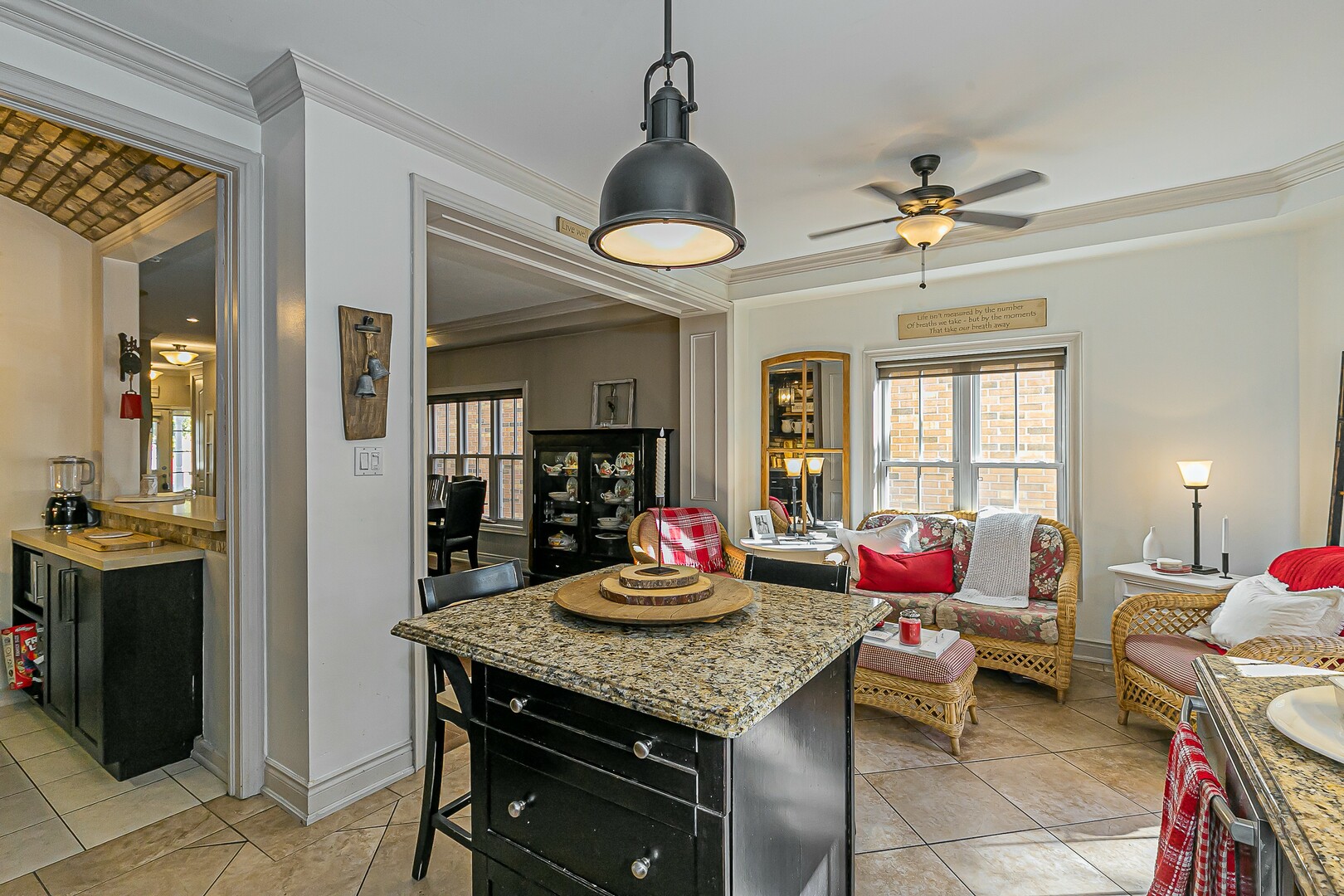 The Dining Room offers bright windows and lots of space for large groups, the Living Room is a cozy space to gather with gas fireplace and room for lots of seating.
