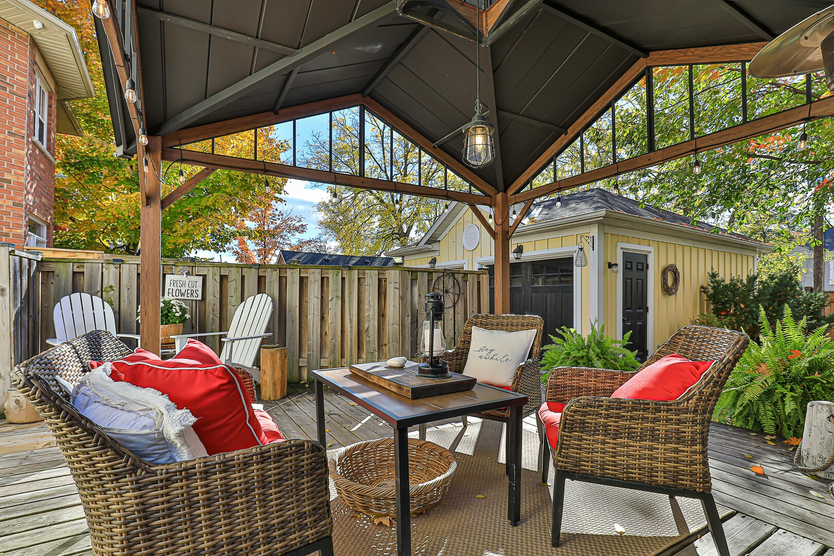 You will be impressed with the private backyard oasis with mature trees, manicured gardens and a large deck with Gazebo, this is the perfect space for outdoor entertainment.