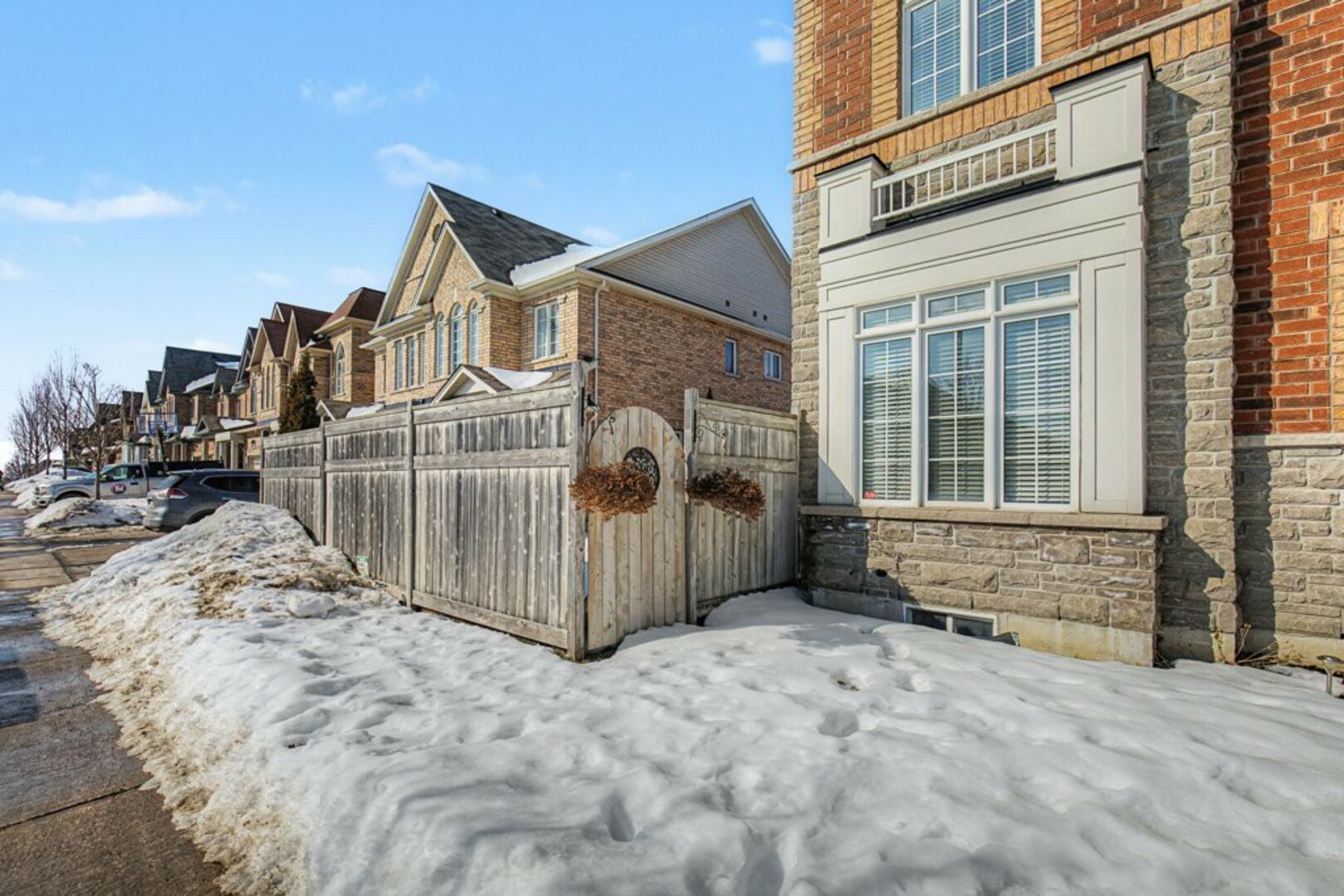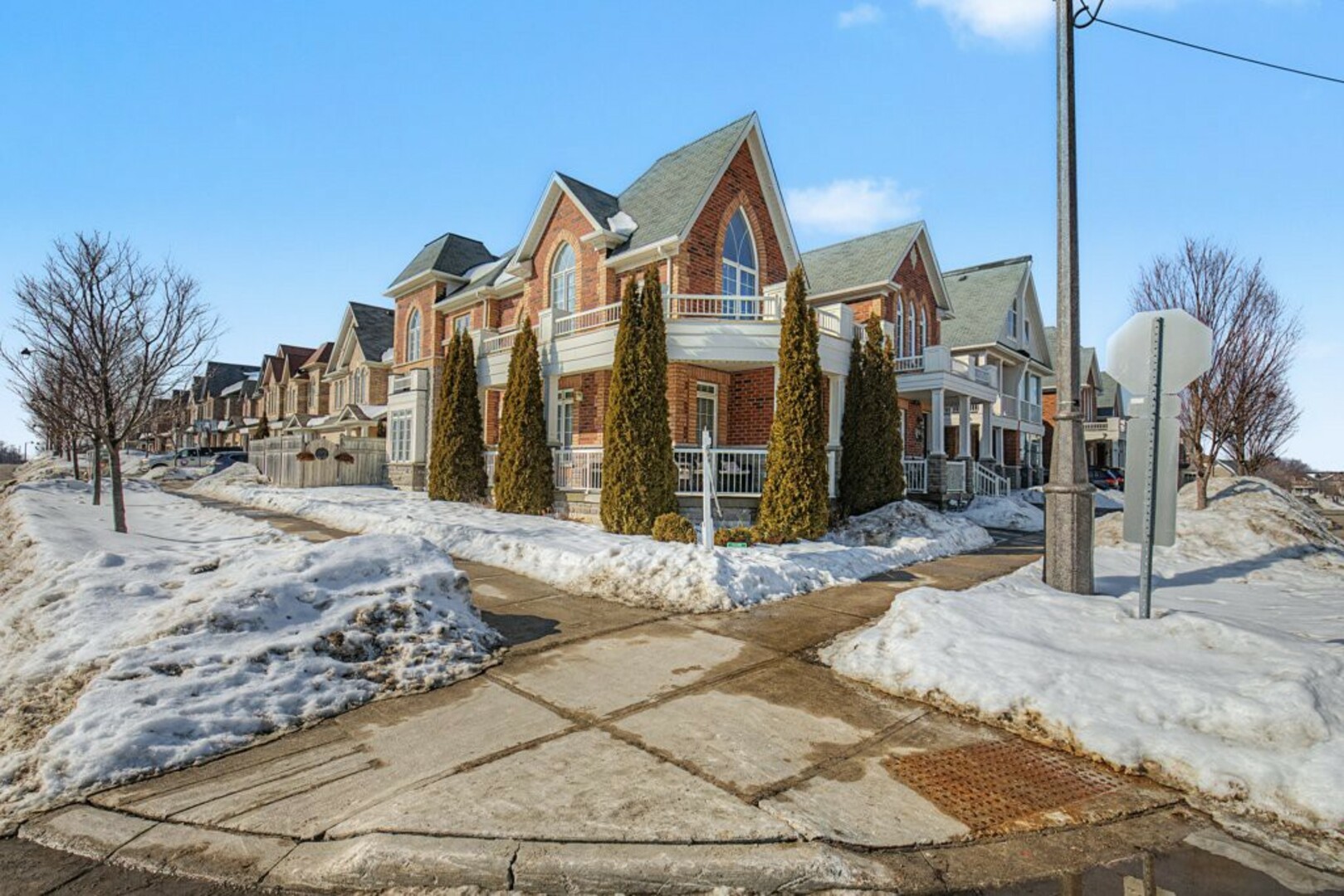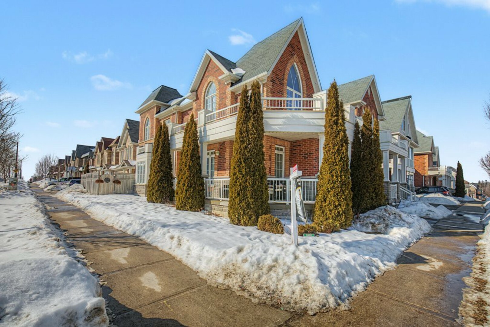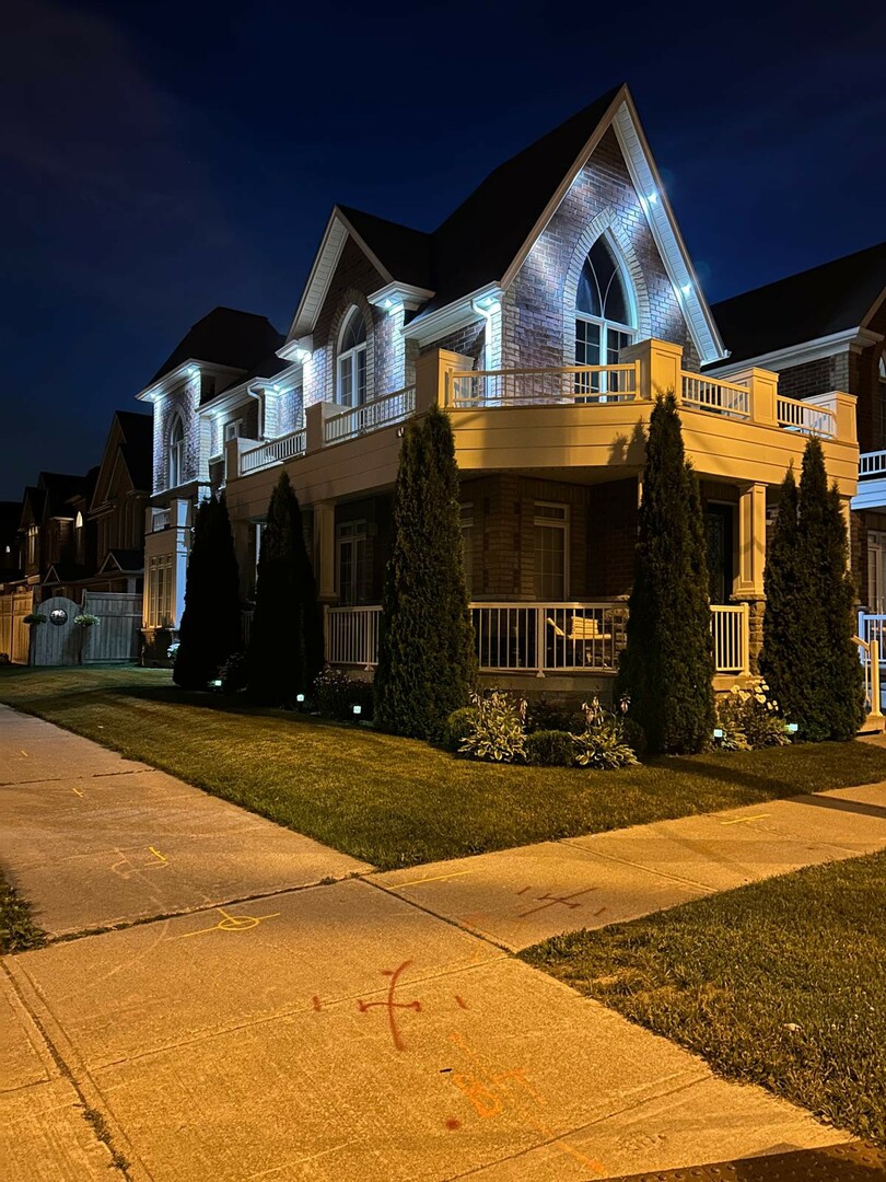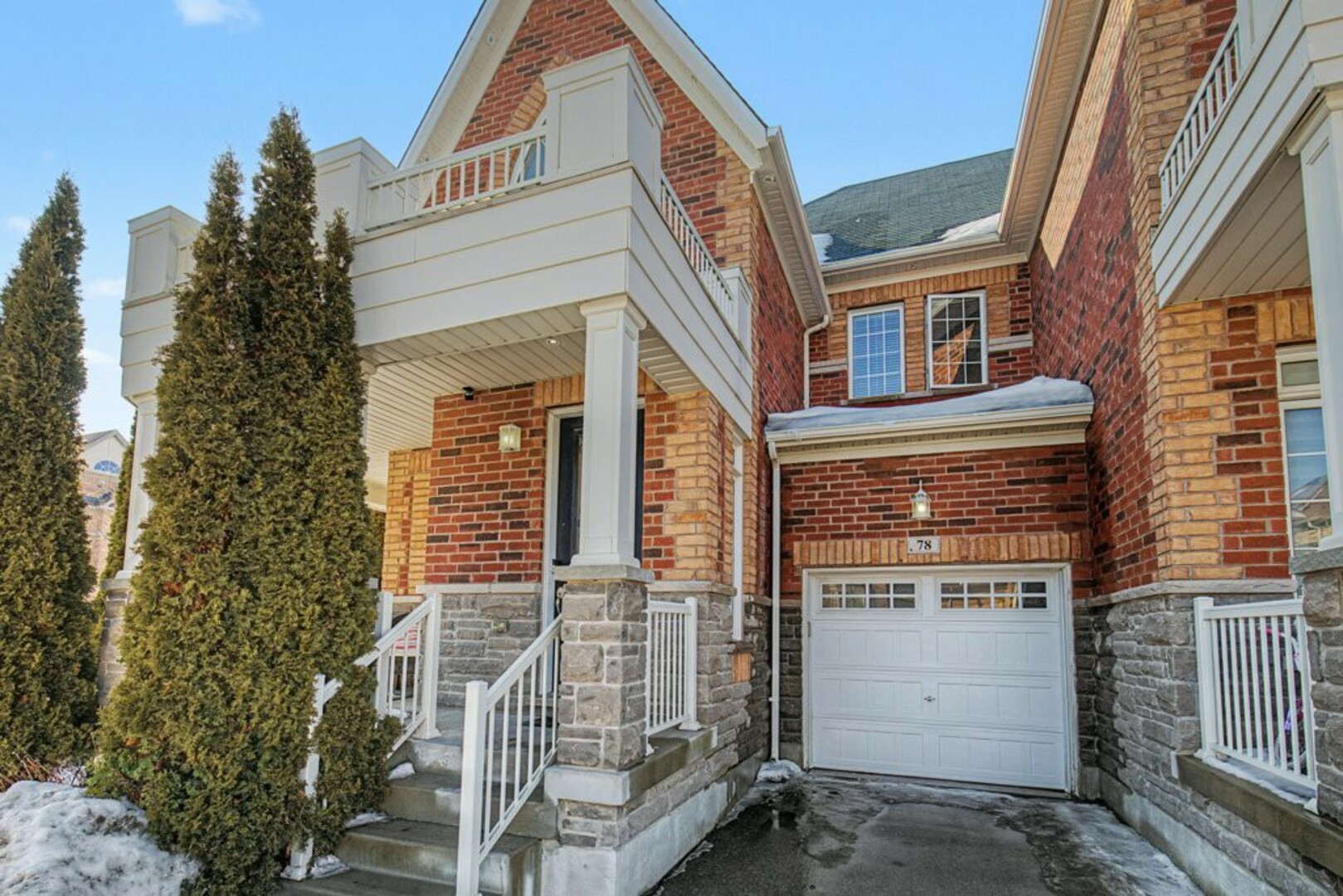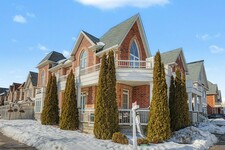 Welcome to 78 Brock Avenue - an exceptional end-unit corner townhome, approximately 2200 sq ft in size, that feels like a detached home, offering 33' of frontage, a rare and highly desirable feature among row townhouses. Situated in the prestigious Berczy community (Upper Unionville), this approximately 12-year-new residence is surrounded by top-ranked schools, parks, public transit, and everyday amenities. This well-maintained home features 4 spacious bedrooms and 4 washrooms, along with a professionally finished basement. The inviting wrap-around porch enhances the home's outstanding curb appeal and creates a welcoming first impression as you approach the property. The main floor offers 9' ceilings and an abundance of natural light thanks to its corner orientation and additional windows. The customized kitchen showcases rich cabinetry, granite countertops, glass backsplash, and a generous eat-in area. The adjoining family room features a corner fireplace and provides an ideal layout for everyday living and entertaining. On the second floor, you'll find four generously sized bedrooms. The primary bedroom is highlighted by coffered ceilings, while the ensuite bath features vaulted ceilings and distinctive semi-circular windows, adding architectural character and charm. The finished basement includes an additional bedroom and a 3-piece washroom, offering flexibility for guests, extended family, or home office use. Exterior features include beautifully landscaped perennial gardens and a serene backyard pond, creating a private outdoor retreat. Located in one of Markham's most sought-after neighbourhoods, Berczy Village is well known for its highly ranked schools, including Pierre Elliott Trudeau High School, just a short walk or 2-minute drive away. This is a rare opportunity to own a premium corner property in an established, family-oriented community with great schools and amenities. (id:9346)