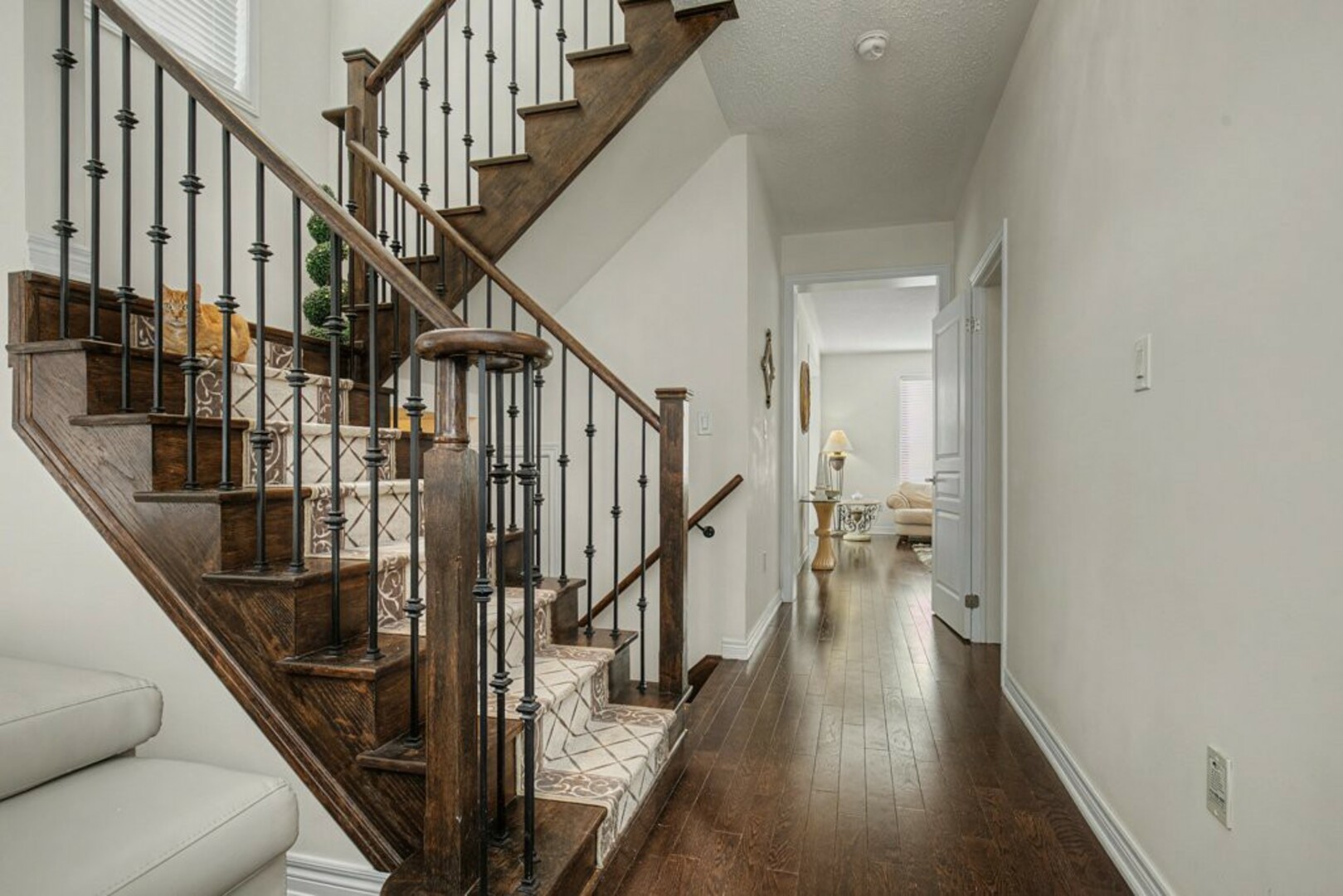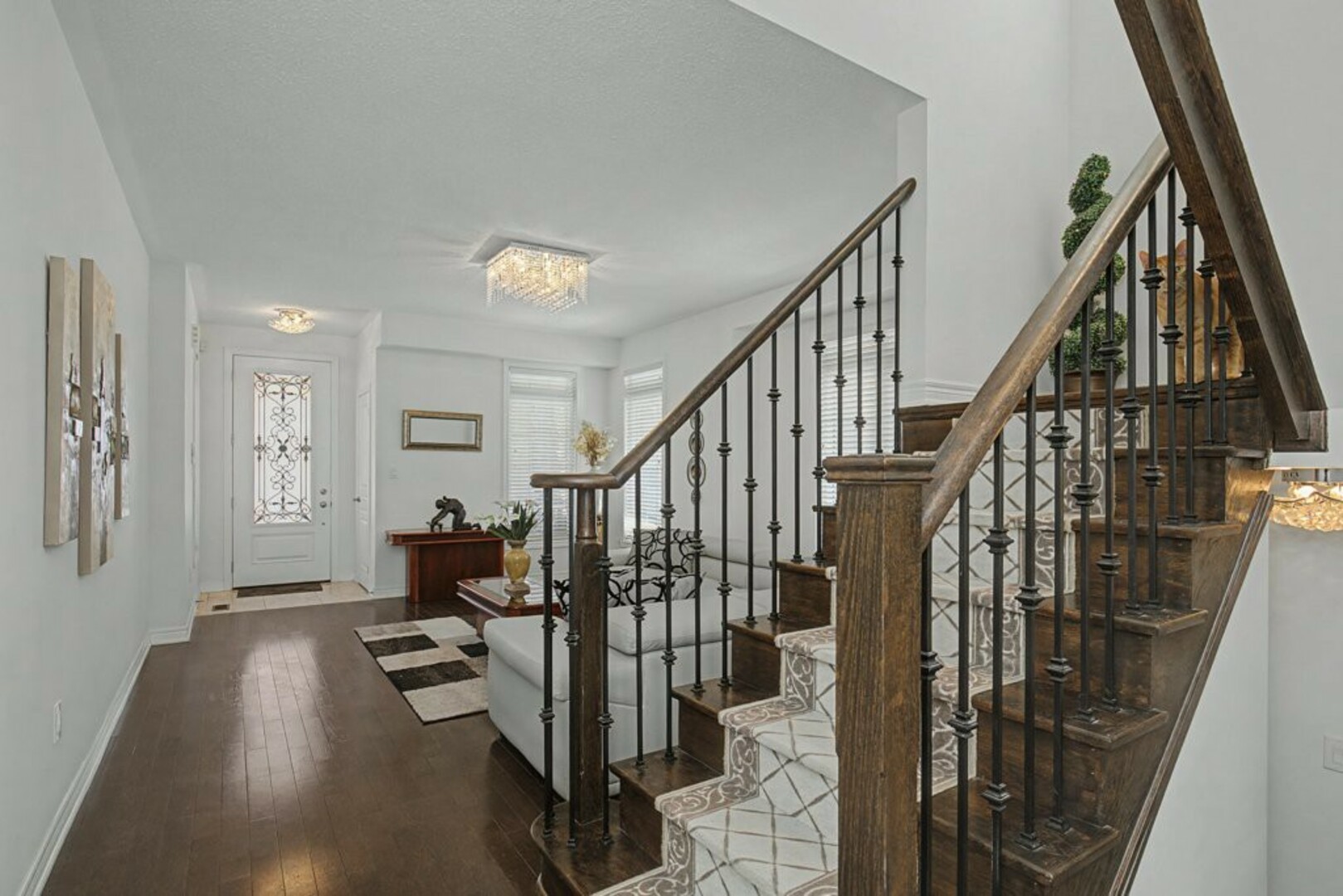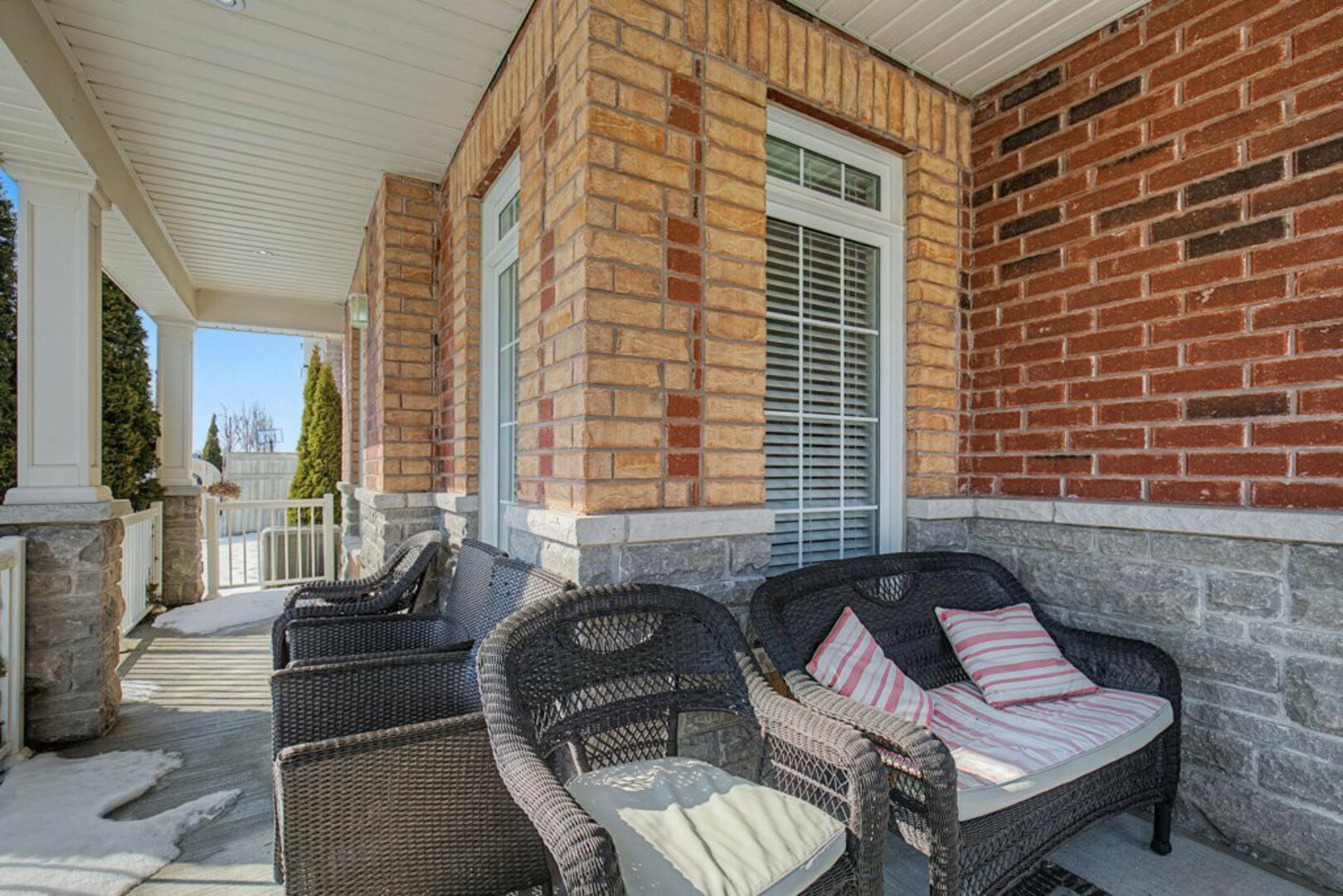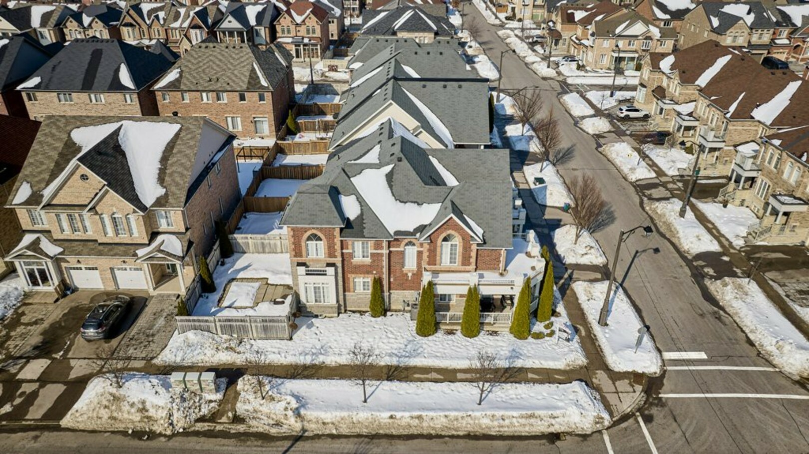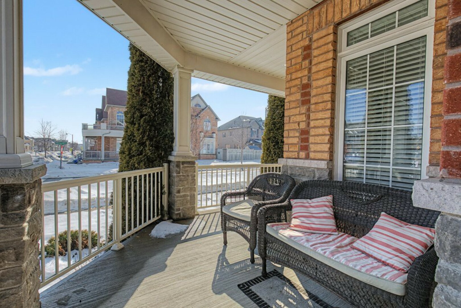 Welcome to 78 Brock Avenue - an exceptional end-unit corner townhome, approximately 2200 sq ft in size, that feels like a detached home, offering 33' of frontage, a rare and highly desirable feature among row townhouses. Situated in the prestigious Berczy community (Upper Unionville), this approximately 12-year-new residence is surrounded by top-ranked schools, parks, public transit, and everyday amenities. This well-maintained home features 4 spacious bedrooms and 4 washrooms, along with a professionally finished basement. The inviting wrap-around porch enhances the home's outstanding curb appeal and creates a welcoming first impression as you approach the property. The main floor offers 9' ceilings and an abundance of natural light thanks to its corner orientation and additional windows. The customized kitchen showcases rich cabinetry, granite countertops, glass backsplash, and a generous eat-in area. The adjoining family room features a corner fireplace and provides an ideal layout for everyday living and entertaining. On the second floor, you'll find four generously sized bedrooms. The primary bedroom is highlighted by coffered ceilings, while the ensuite bath features vaulted ceilings and distinctive semi-circular windows, adding architectural character and charm. The finished basement includes an additional bedroom and a 3-piece washroom, offering flexibility for guests, extended family, or home office use. Exterior features include beautifully landscaped perennial gardens and a serene backyard pond, creating a private outdoor retreat. Located in one of Markham's most sought-after neighbourhoods, Berczy Village is well known for its highly ranked schools, including Pierre Elliott Trudeau High School, just a short walk or 2-minute drive away. This is a rare opportunity to own a premium corner property in an established, family-oriented community with great schools and amenities. (id:9346)