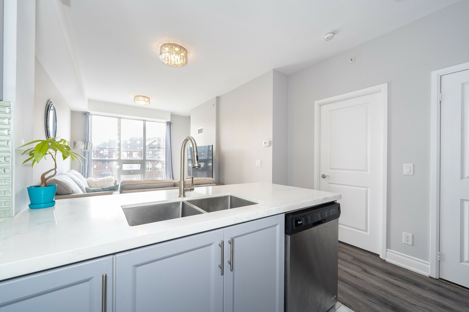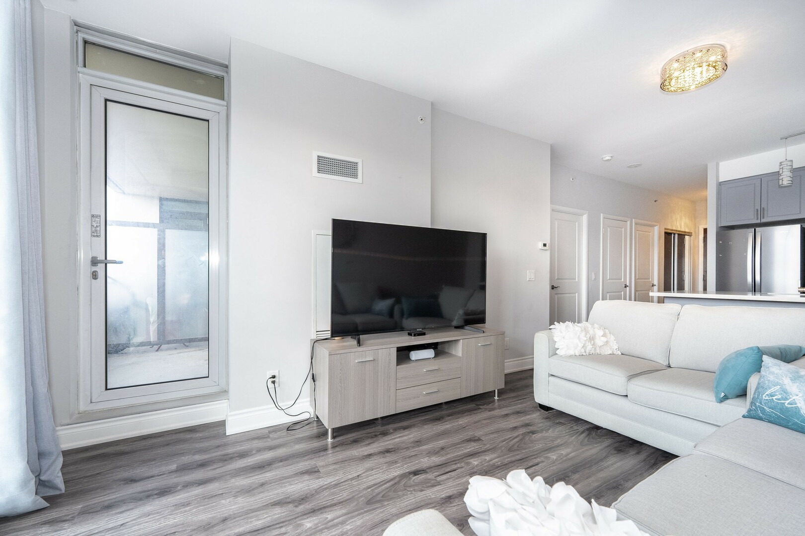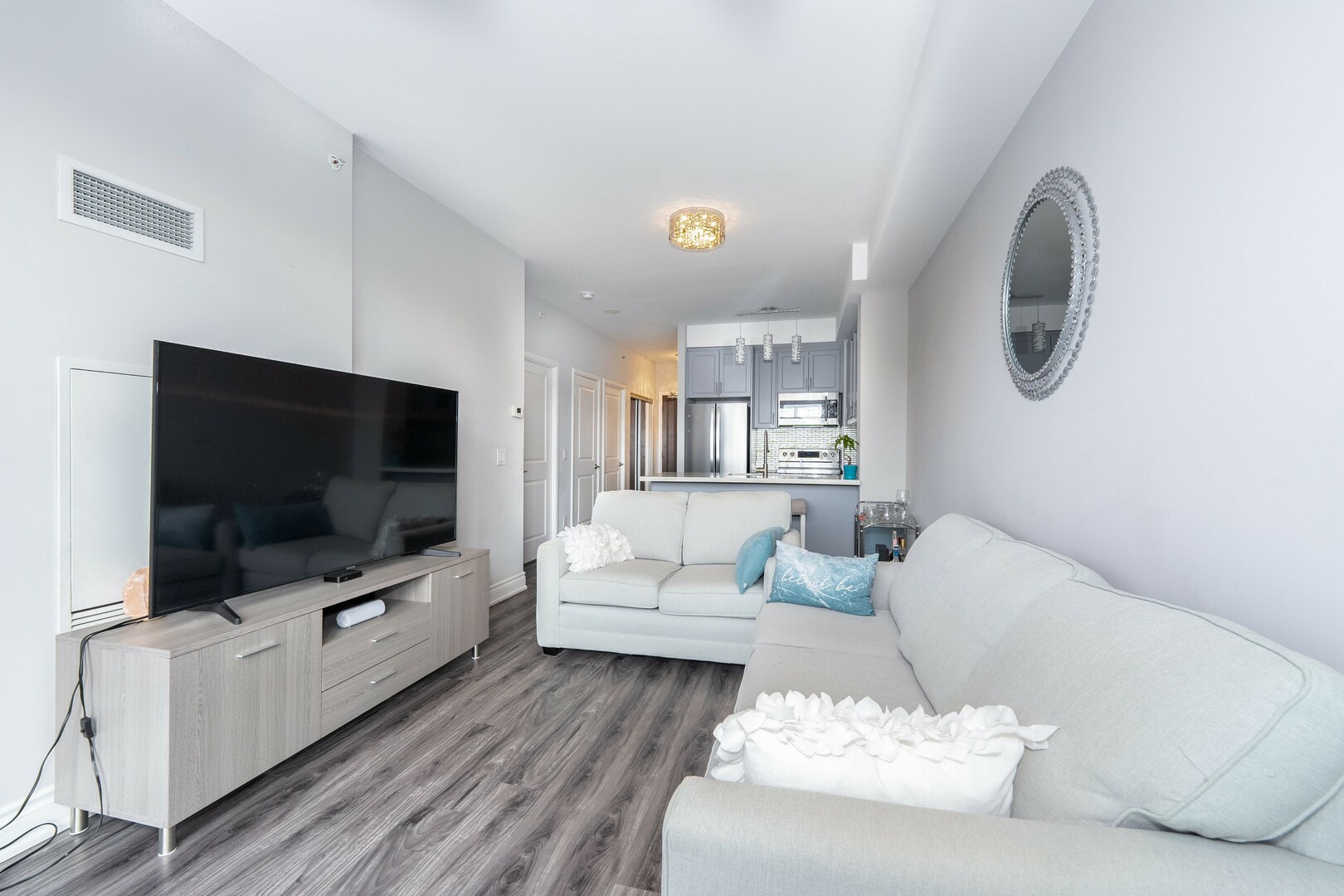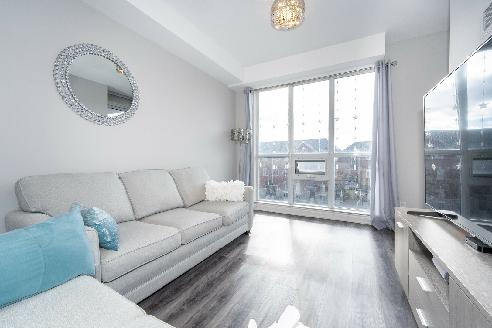 Welcome to this Cozy & Modern 1 Bed + Den condo located in the heart of Markham. Perfect Retreat for anyone looking for comfort & Convenience. This Charming Unit has a very spacious Bedroom with Large Closet, Modern Bath with sleek Vanity, Open concept Living and Kitchen with Breakfast Bar. Plenty of Cabinets, Large Windows, In-Suite Laundry, Sprinkler system, Large Open Balcony, Underground Parking. Building Amenities include Fitness Centre, Party Room, Pool/Sauna, Concierge Service. Home of prestigious Elementary & Secondary Schools. Minutes to all local Shops, Restaurants, Parks & Trails, Hospital, Community Centre, Library, Public Transit, Highways etc. A Must See!!