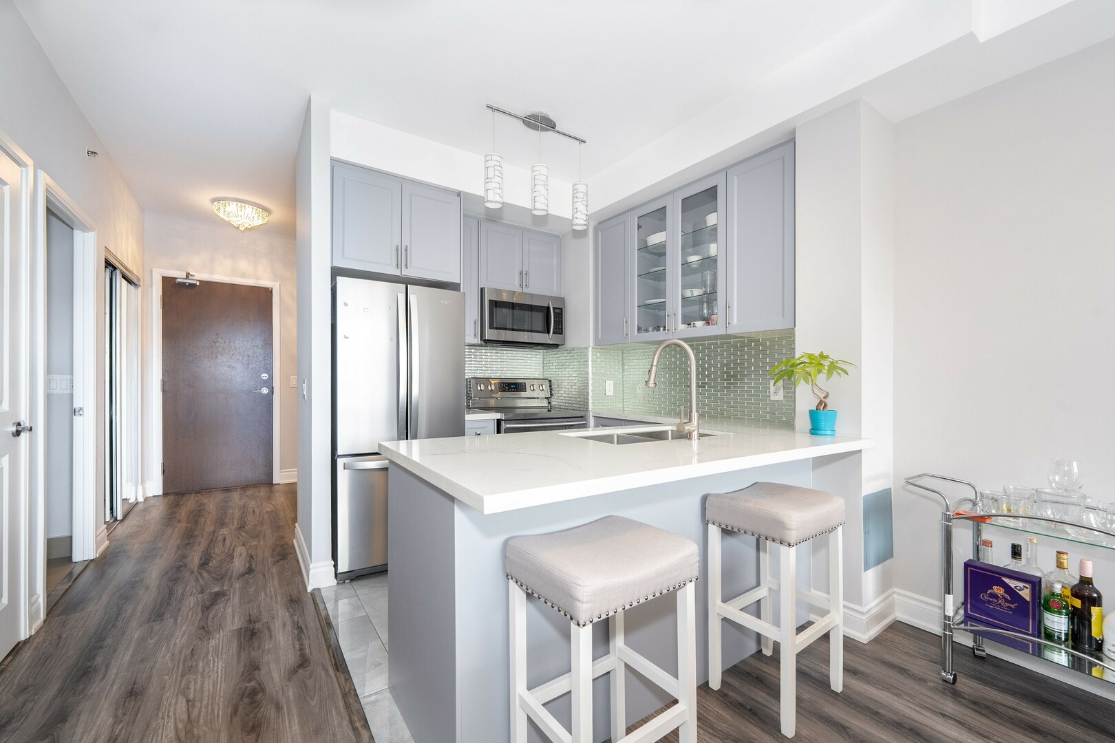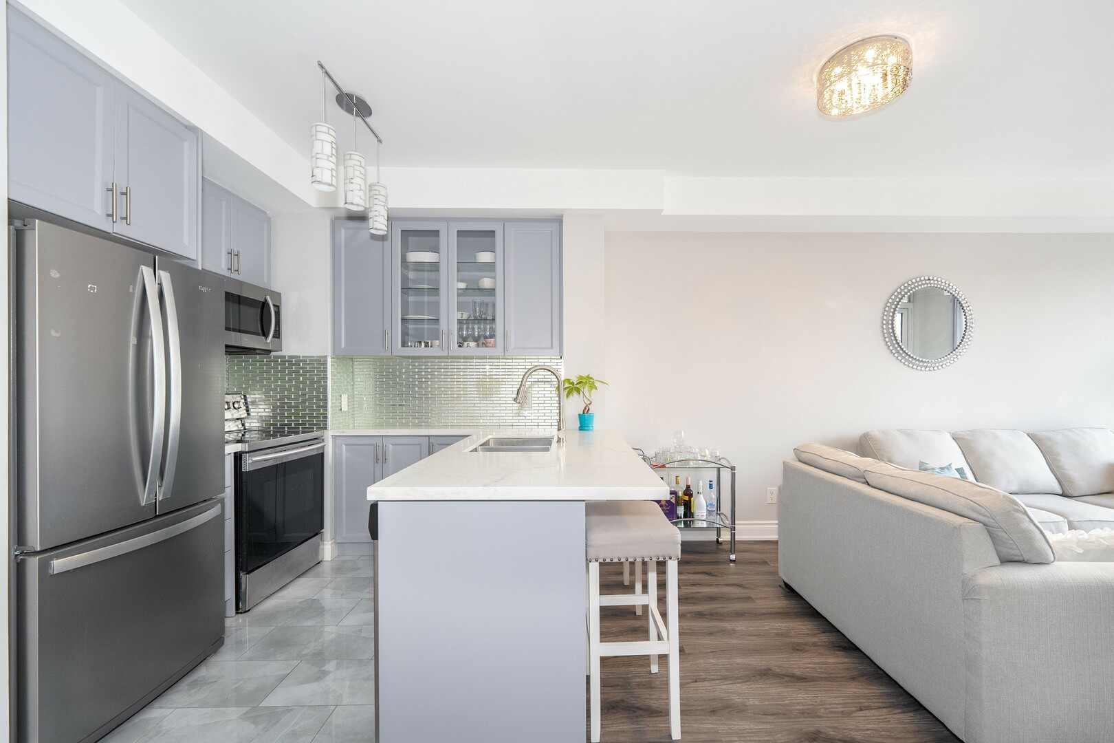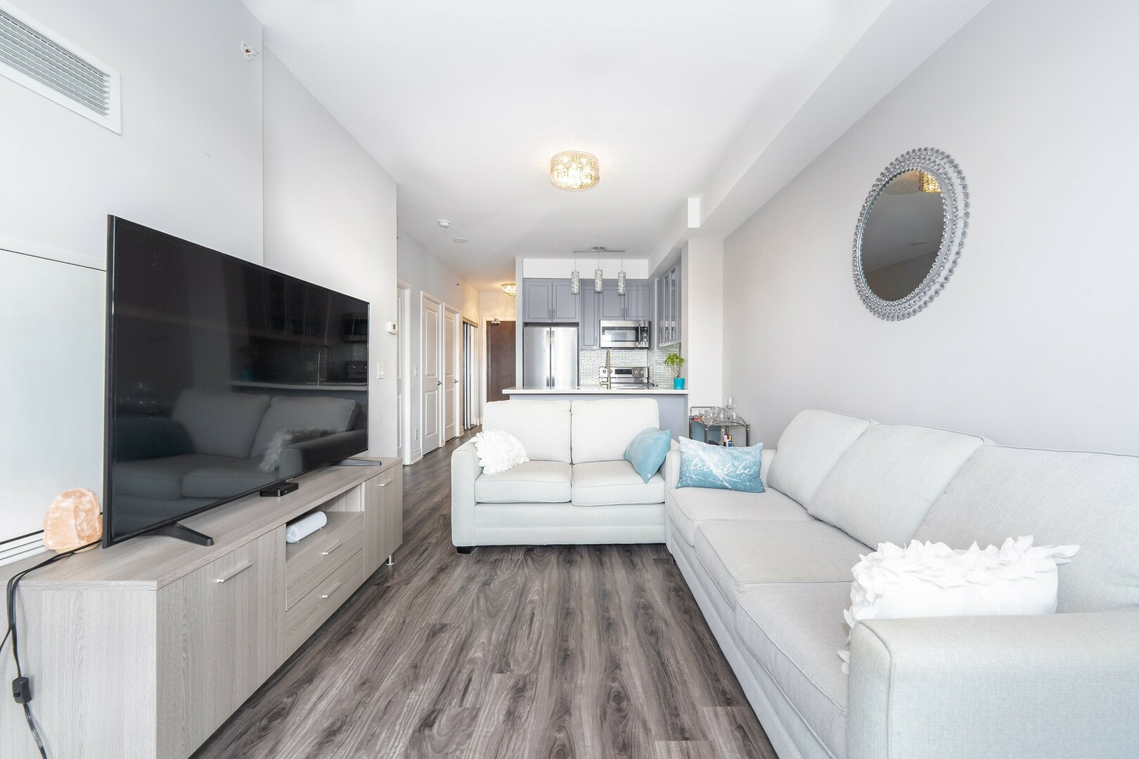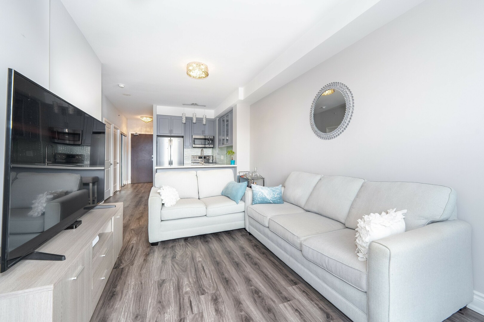 Welcome to this Cozy & Modern 1 Bed + Den condo located in the heart of Markham. Perfect Retreat for anyone looking for comfort & Convenience. This Charming Unit has a very spacious Bedroom with Large Closet, Modern Bath with sleek Vanity, Open concept Living and Kitchen with Breakfast Bar. Plenty of Cabinets, Large Windows, In-Suite Laundry, Sprinkler system, Large Open Balcony, Underground Parking. Building Amenities include Fitness Centre, Party Room, Pool/Sauna, Concierge Service. Home of prestigious Elementary & Secondary Schools. Minutes to all local Shops, Restaurants, Parks & Trails, Hospital, Community Centre, Library, Public Transit, Highways etc. A Must See!!