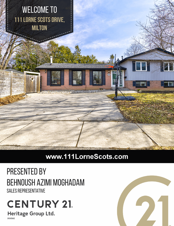 Welcome to 111 Lorne Scots Dr., a beautifully renovated side-split in Milton's sought-after Dorset Park! This bright, spacious home offers modern upgrades, a fantastic layout, and a prime location just steps from Main Street and the GO Station. The open-concept main floor, renovated in 2020, features custom cabinetry, new appliances, and elegant wood flooring. Large windows fill the space with natural light, and a walkout leads to a generous backyard perfect for relaxing or entertaining. Upstairs, three sunlit bedrooms share a full bathroom. The finished basement, with a separate entrance from Nelson Court, includes a private one-bedroom suite with a three-piece bath ideal for guests, extended family, or rental income. The spacious backyard and side yard include two large sheds, great for a workshop or extra storage. Recent upgrades: AC (2023), washer (2022), basement flooring (2022), main floor and kitchen (2021). Move-in ready and perfectly located--don't miss this rare find! (40081808)