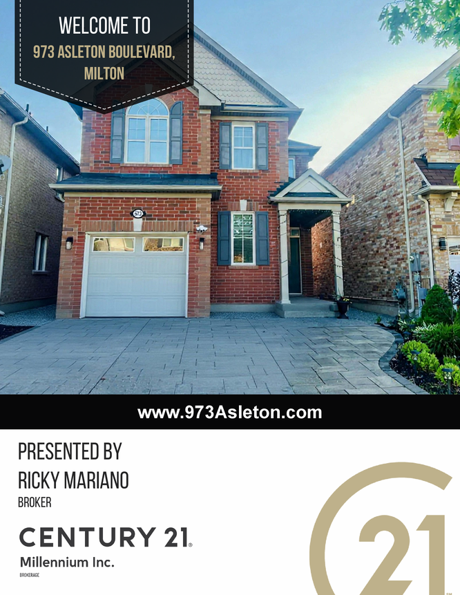 A HIDDEN GEM! WELCOME TO 973 ASLETON BLVD IN MILTON! A TRULY STUNNING WELL MAINTAINED 4 BEDROOM FAMILY HOME LOCATED IN FAMILY ORIENTED NEIGHBOURHOOD. THE MOMENT YOU ARRIVE AT THE PROPERTY, YOU WILL BE APPEALED BY THE EXTERIOR BRICK FACADE WITH LOUVERED SHUTTERS AND WIDENED INTERLOCK DRIVEWAY. THE FIRST FLOOR FEATURES 9FT SMOOTH CEILING, A BEDROOM OR HOME OFFICE, A POWDER ROOM, A LARGE BRIGHT OPEN CONCEPT FAMILY ROOM, OPEN CONCEPT KITCHEN WITH UPGRADED CABINET AND QUARTZ COUNTERTOPS WITH BACKSPLASH, AND A BREAKFAST/DINING AREA WITH SLIDING DOOR. UPSTAIRS YOU WILL FIND 4 SPACIOUS BEDROOMS WITH A MASTER'S WALK-IN CLOSET, A LUXURY 5 PIECE BATHROOM, ANOTHER FULL WASHROOM AND DESIRABLE UPPER LAUNDRY ROOM. FULLY FINISHED BASEMENT WITH LARGE ENTERTAINMENT AREA, LOTS OF STORAGE SPACE, POTENTIAL ADDITIONAL BEDROOM AND POWDER ROOM. FULLY FENCED BACKYARD WITH INTERLOCKING PAVED PATIO AND EXTENDED PLANTERS PERFECT FOR OUTDOOR GATHERINGS. CLOSED TO SHOPPINGS, PLAZAS, SCHOOLS AND MILTON DISTRICT HOSPITAL. DON'T MISS!!!