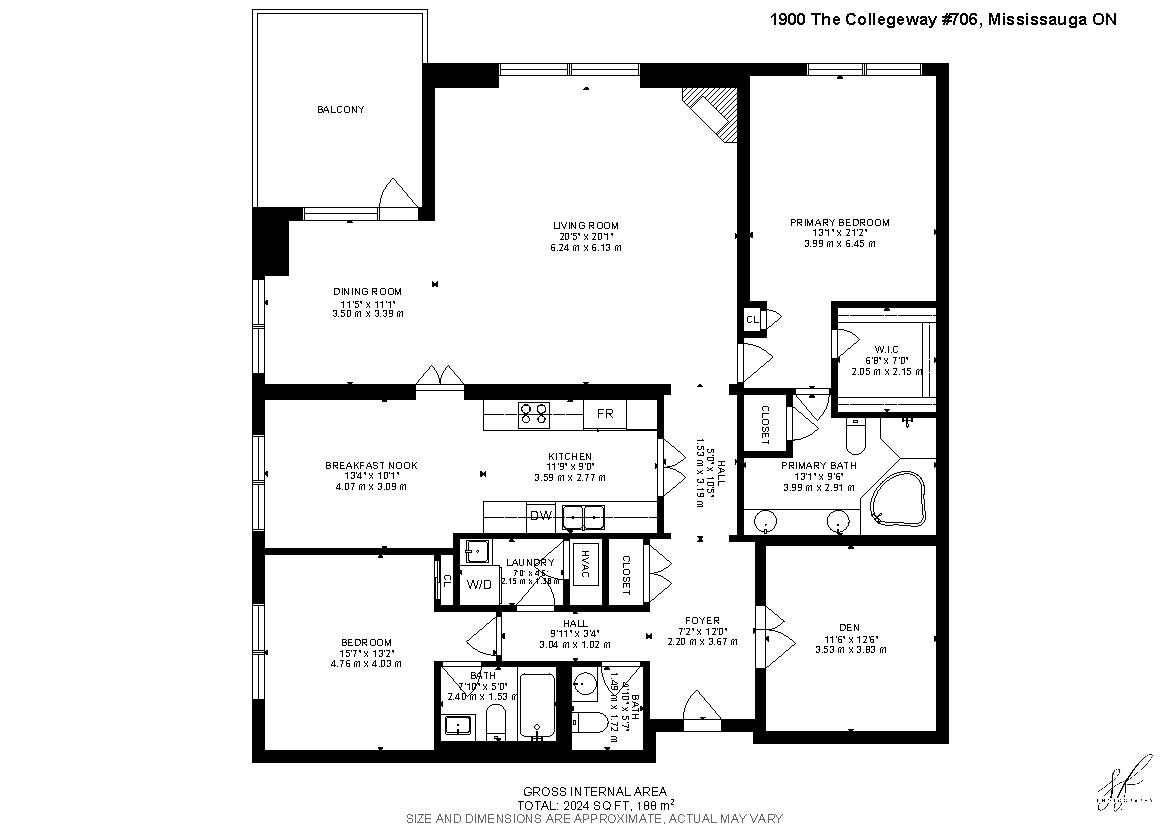 Welcome to "The Palace", an aptly named residence offering an opulent lifestyle. This elegant condo building features upscale amenities, including an indoor pool, party room, gym, billiard room, library, hobby room, three guest suites, car wash, and 24-hour concierge security. The on-site superintendent ensures unparalleled safety and convenience for both security and maintenance, all in a sought-after neighborhood including the nearby Glenerin Inn and Spa. You're a short drive from the U of T campus, shopping, hospitals and fantastic restaurants. This generous corner suite boasts over 2,100 sq ft of living space with 9' ceilings throughout. As you step inside you'll be welcomed by the grand front foyer. The separate eat-in kitchen, complete with a built-in pantry and gleaming countertops, simply perfect for entertaining. The kitchen opens to a large living/dining area with a gas fireplace, and a wall of windows allowing the light to pour in. Gorgeous views from your large corner balcony where the family chef will enjoy the convenience of a BBQ hook-up. The expansive primary bedroom includes a 5-piece ensuite, a walk-in closet and a second large closet, providing ample storage. The bright and airy second bedroom features a large window, a 4-piece ensuite and a closet. The den offers versatile options for a study, sitting room or extra sleeping space. A powder room for guests discreetly located off the hall, a separate laundry area with stackable washer and dryer and plenty of storage throughout complete this stunning suite. The suite also includes a large private storage room (P3 196) and two conveniently located underground parking spaces. Don't miss your chance to call Suite 706 "home". (id:9346)