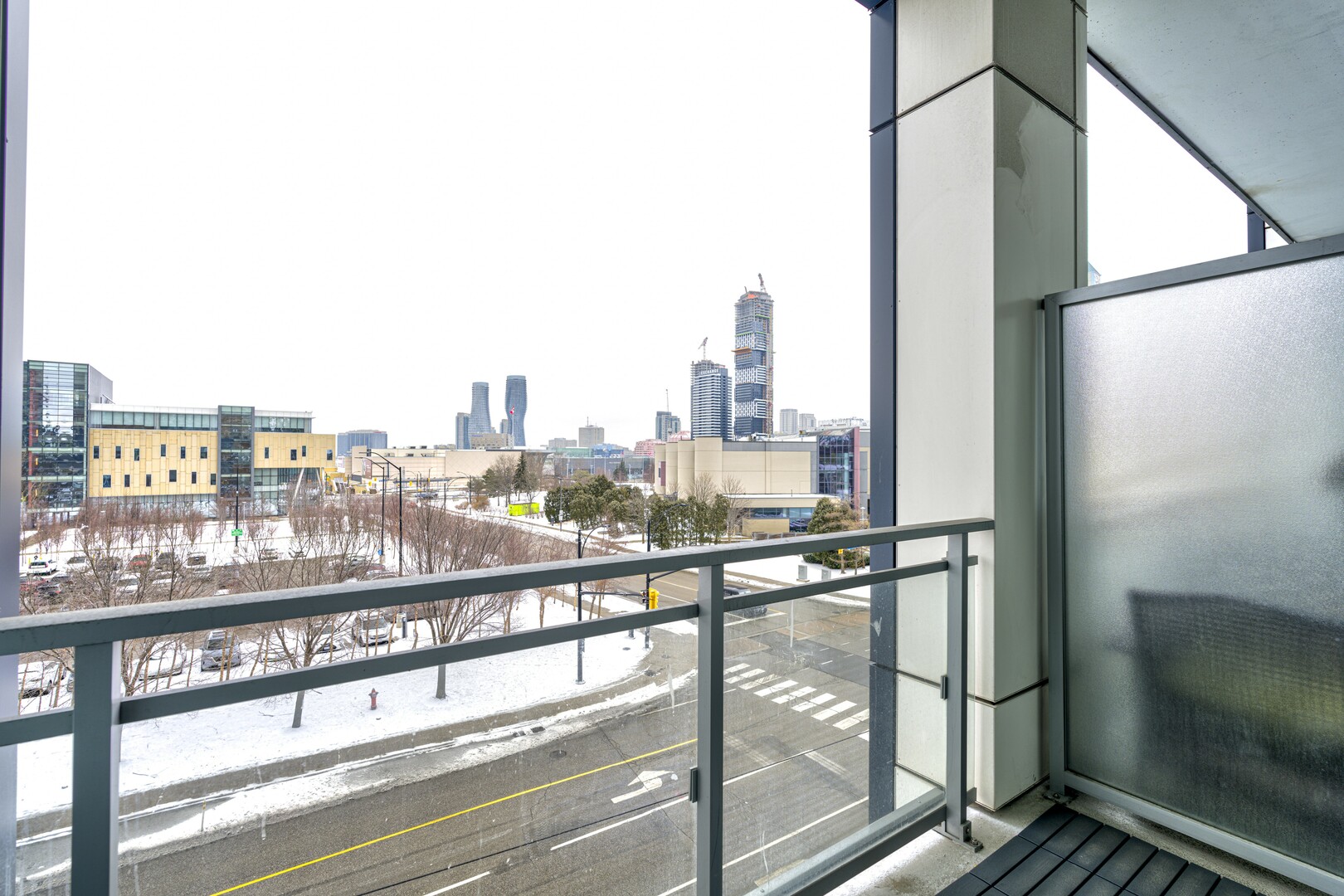 Excellent Location!!! Luxurious, Modern And Meticulously Designed Condo Unit With Brand New Hardwood Flooring Throughout! This Open Concept Unit Has 766 Sq Ft Of Living Space With Additional Square Footage From It's Terrace. Terrific Feeling Before And After Bed With The Spacious Master's Bedroom With An Awesome City View, 4pc Ensuite, Large Double Closet & Floor To Ceiling Glass Window Panel. Need A Second Room? No Problem! The Den is Huge Enough To Fit Another Bed With Full Size Washrooms Just Across! The Unit Comes With Lots Of Upgrades; Gourmet Kitchen, Granite Counters, Custom Backsplash, Dark Kitchen Cabinetry, Stainless Steel Appliances And So Much More. As You Enter The Unit, You’ll Be Amazed With The 10-Foot Ceiling, Perfect Lay-Out, Floor To Ceiling Glass Panel And The Obvious Huge Space In All Areas Of The Home Plus The Many Amenities This Condo Living Offers. Open Concept Living And Dining With Walk Out To An Open Balcony With Spectacular View Of Mississauga. Don’t Miss This Irresistible Home Right At The Heart Of Mississauga, Across Square One And Sheridan College, Close To Parks, Schools, Shopping Areas, Highways 401, 407, Go Station & Steps Away To The Most Awaited Hazel McCallion Light Rail Transit City Centre Station. Don't Miss!!!