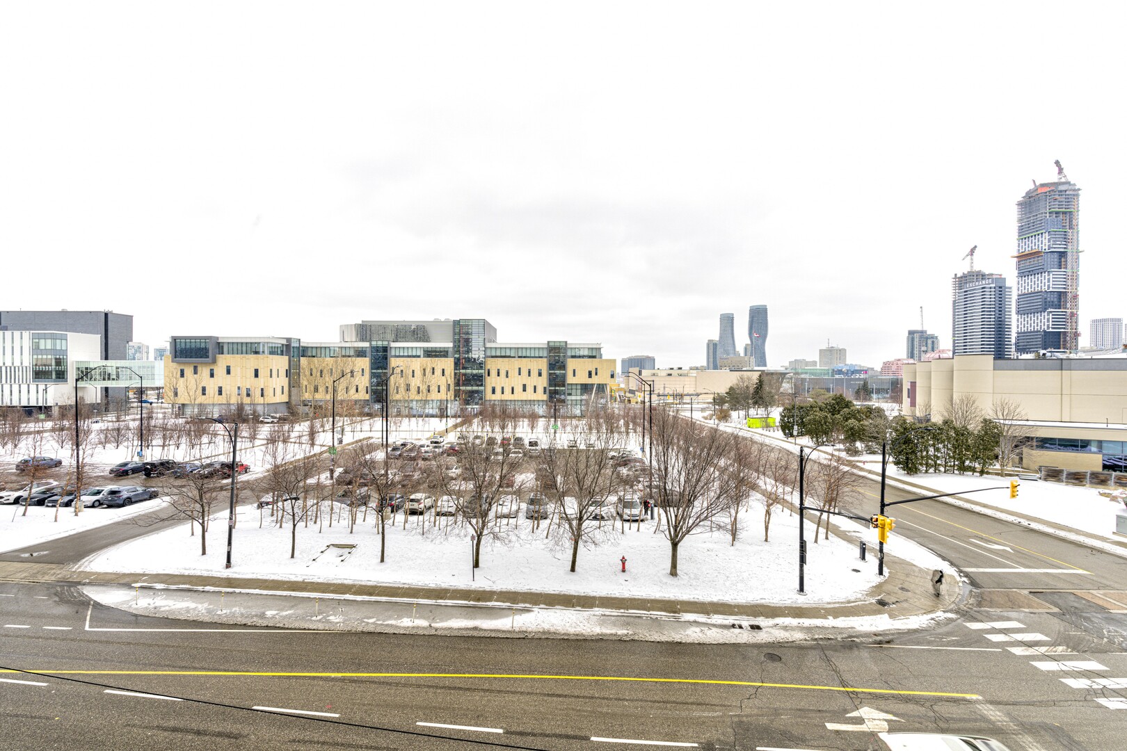 Excellent Location!!! Luxurious, Modern And Meticulously Designed Condo Unit With Brand New Hardwood Flooring Throughout! This Open Concept Unit Has 766 Sq Ft Of Living Space With Additional Square Footage From It's Terrace. Terrific Feeling Before And After Bed With The Spacious Master's Bedroom With An Awesome City View, 4pc Ensuite, Large Double Closet & Floor To Ceiling Glass Window Panel. Need A Second Room? No Problem! The Den is Huge Enough To Fit Another Bed With Full Size Washrooms Just Across! The Unit Comes With Lots Of Upgrades; Gourmet Kitchen, Granite Counters, Custom Backsplash, Dark Kitchen Cabinetry, Stainless Steel Appliances And So Much More. As You Enter The Unit, Youll Be Amazed With The 10-Foot Ceiling, Perfect Lay-Out, Floor To Ceiling Glass Panel And The Obvious Huge Space In All Areas Of The Home Plus The Many Amenities This Condo Living Offers. Open Concept Living And Dining With Walk Out To An Open Balcony With Spectacular View Of Mississauga. Dont Miss This Irresistible Home Right At The Heart Of Mississauga, Across Square One And Sheridan College, Close To Parks, Schools, Shopping Areas, Highways 401, 407, Go Station & Steps Away To The Most Awaited Hazel McCallion Light Rail Transit City Centre Station. Don't Miss!!!