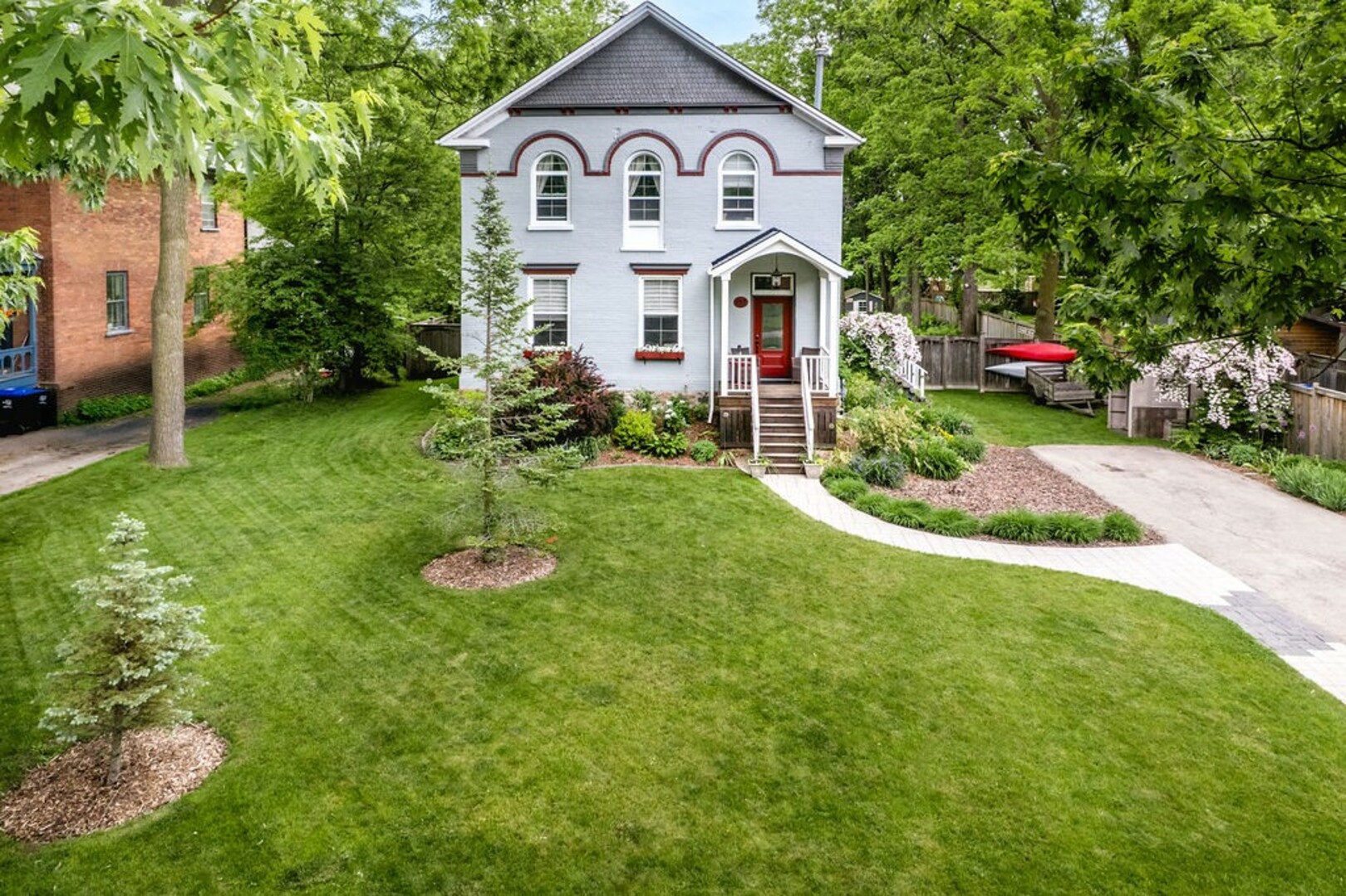 Step outside to nearly half an acre of manicured, park-like grounds with multiple walkouts—a pool-sized lot ideal for entertaining, gardening, or quiet escapes. The full-height basement with epoxy flooring offers excellent storage and untapped potential.