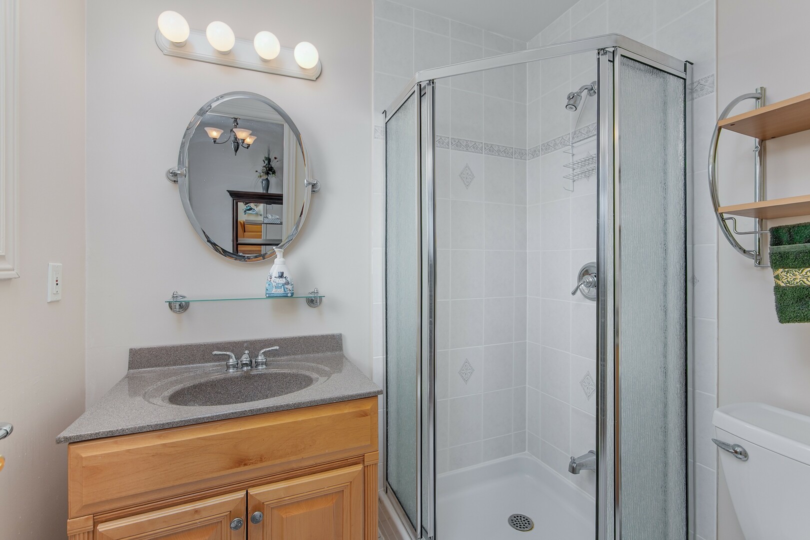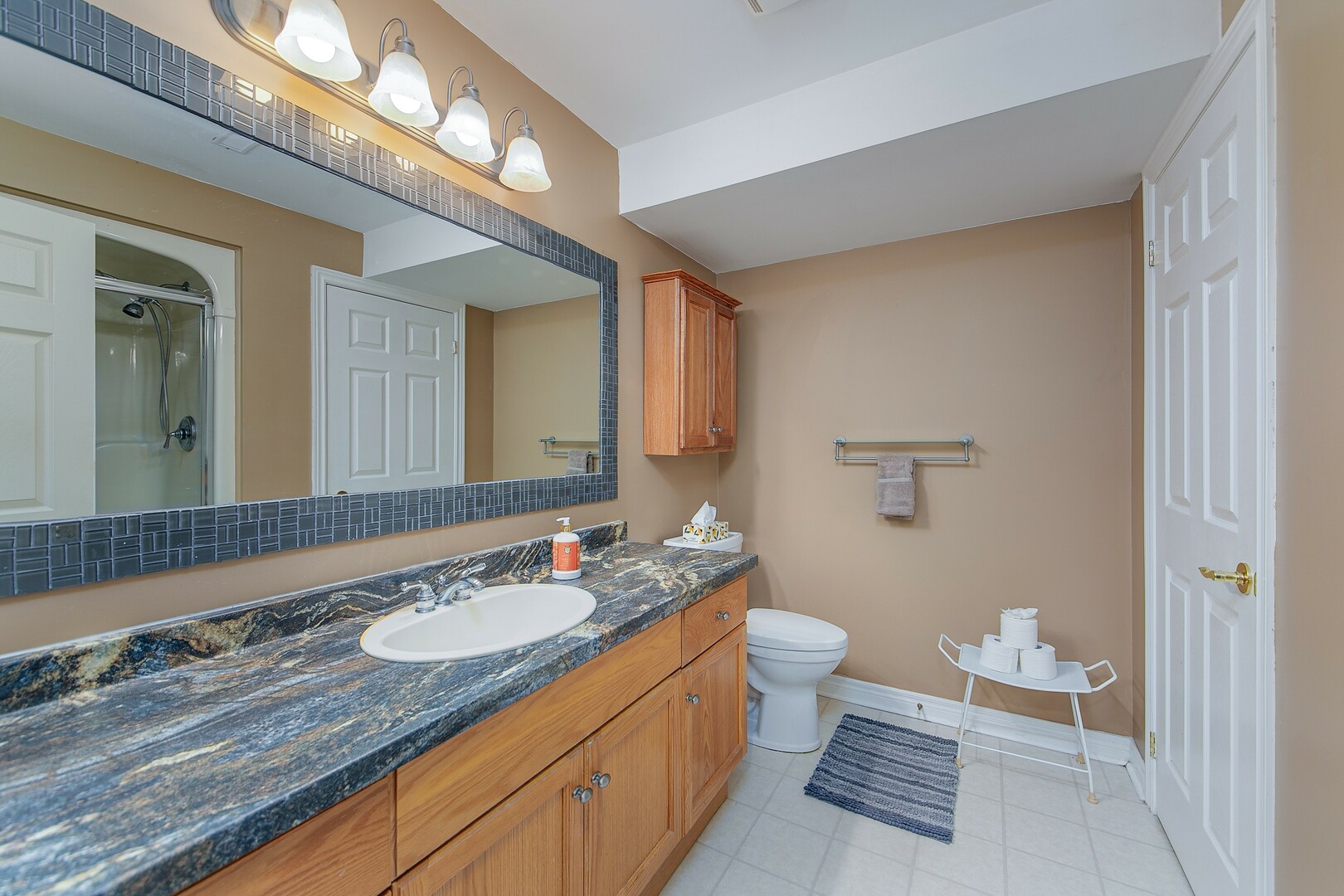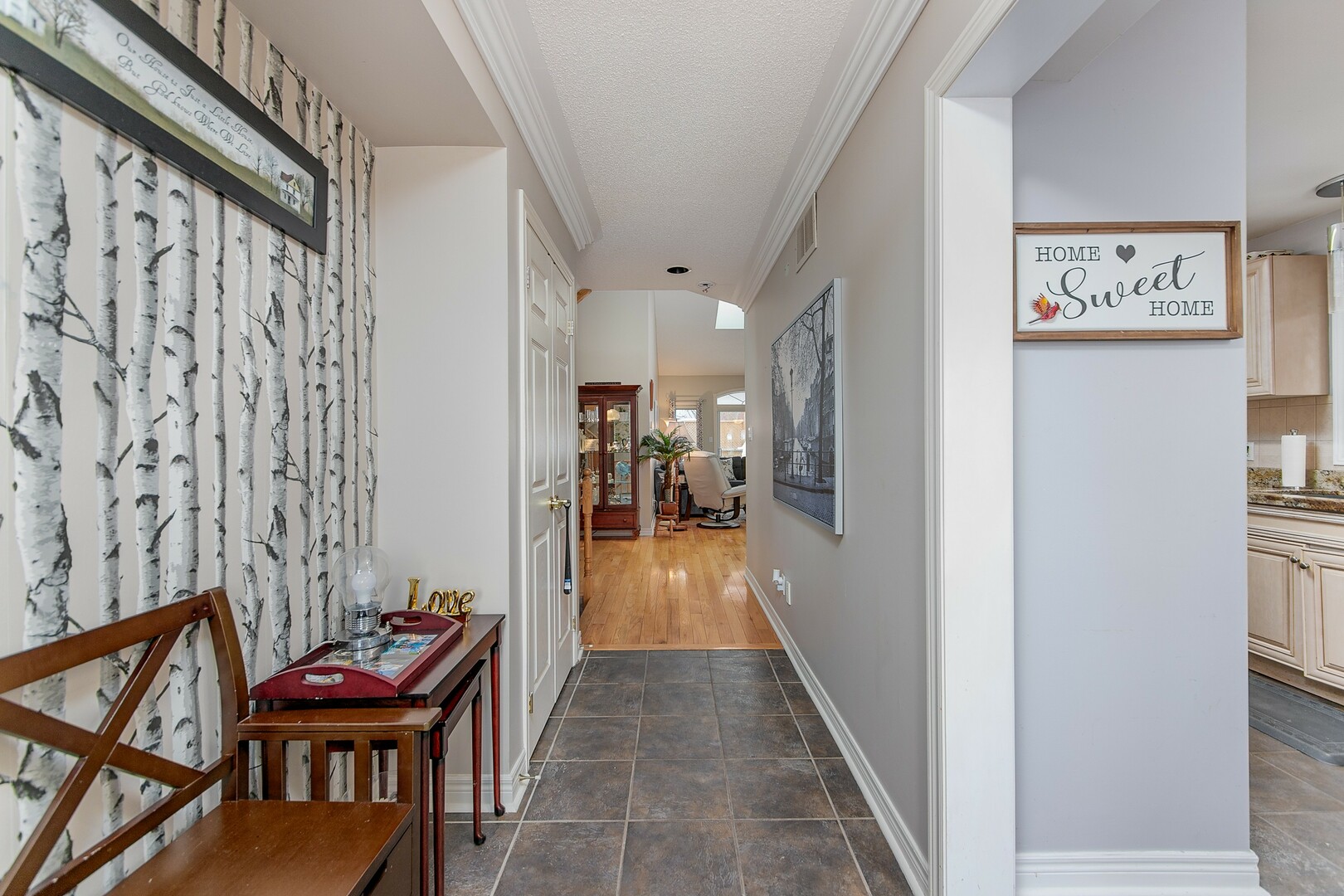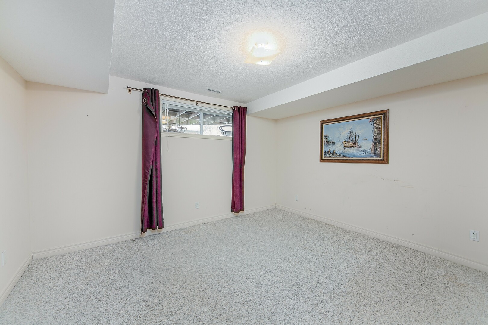 All brick, open concept 3-bedroom Bungaloft with finished basement situated in one of Ontario's premier Golf and Retirement Lifestyle Community, Briar Hill. The Primary Bedroom with a 4 pc., ensuite and walk-in closet is on the main level and boasts a large window for plenty of natural light. The kitchen has a breakfast area at one end and is open to the dining room, which is in turn, open to the Living Room. The Living Room, with cathedral ceilings and sky lights, has a natural gas brick mantel fireplace. There is access to the rear deck, with protected privacy fence by a sliding patio door. The Laundry room is between levels and has cupboards and a laundry sink. The stairs to the Loft have an open mid level landing suitable for a couple of easy-chairs and table or an ideal spot for a computer desk. The loft which has hardwood flooring, closet and an open view of the main level has potential as a 3rd bedroom with a 3pc ensuite bathroom or office/study. The carpeted fully finished lower level adds living space to the home. There is a family room with large above grade windows, natural gas brick mantel fireplace and built in bookshelves. The large bedroom has above grade windows and a large closet. Also, there is 3 piece full bathroom, an office/bonus room with French doors, a utility room with plenty of storage, a cold room and an under the stair case storage room. The driveway and front step are paver stone constructed.