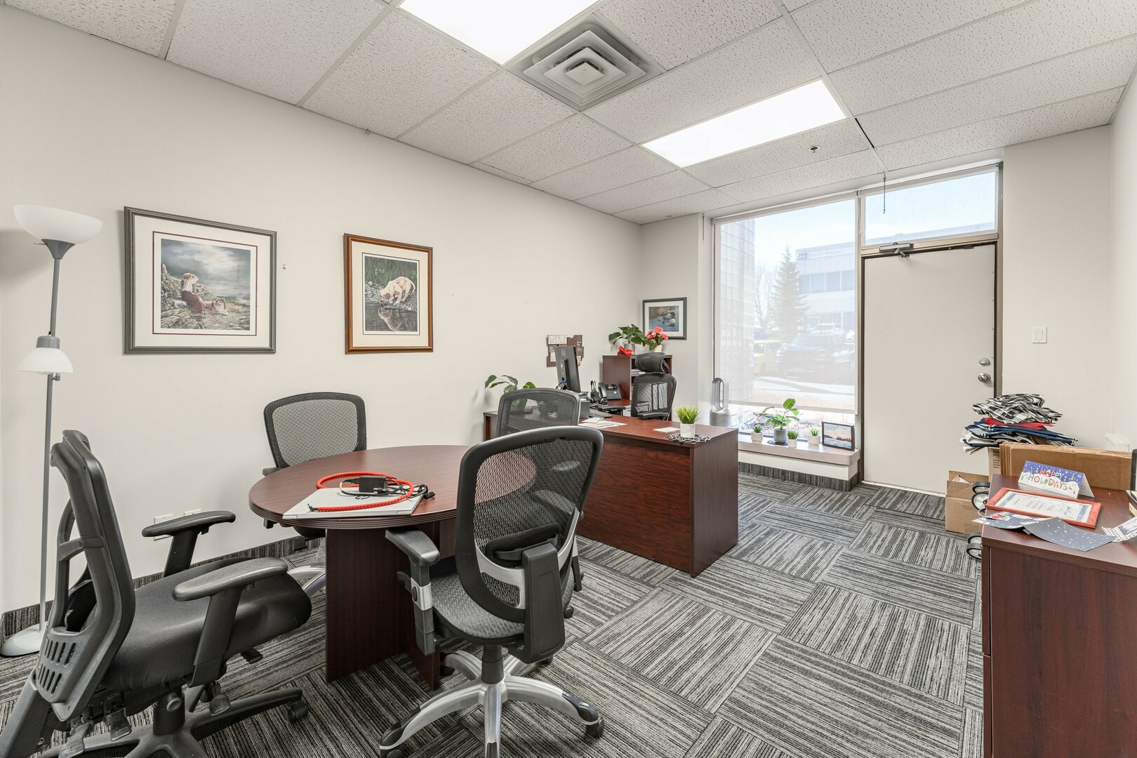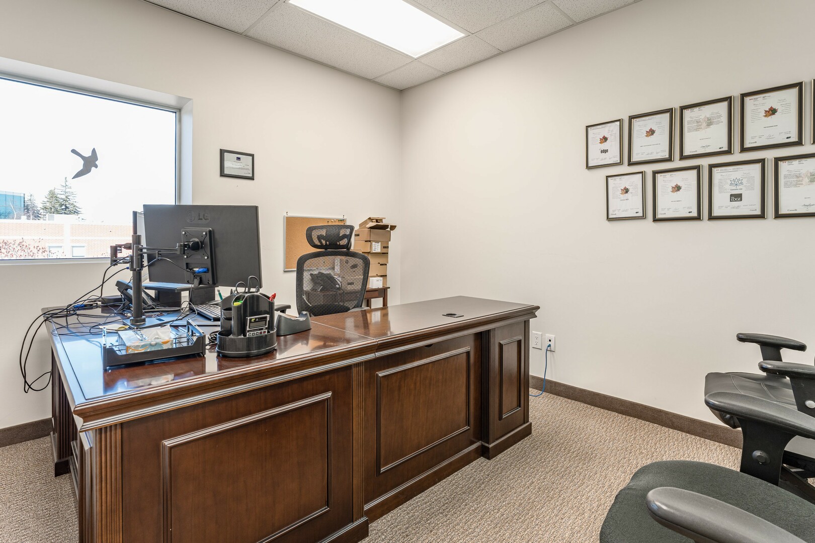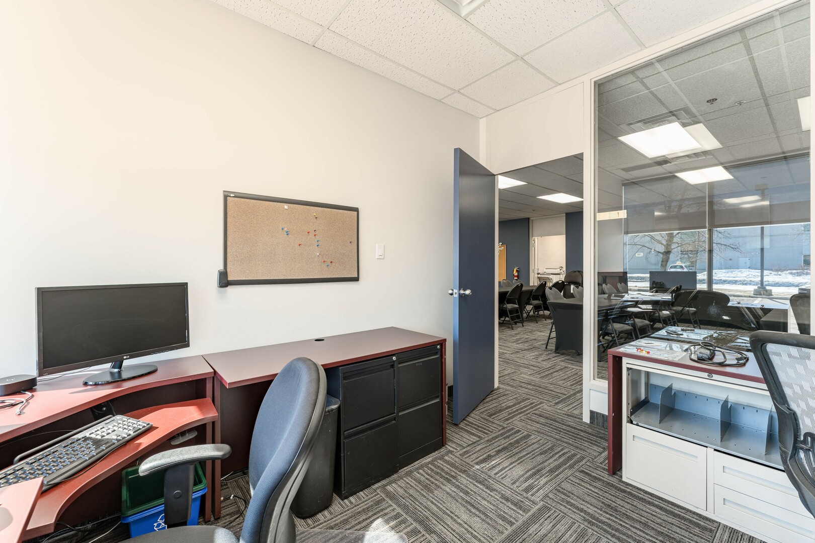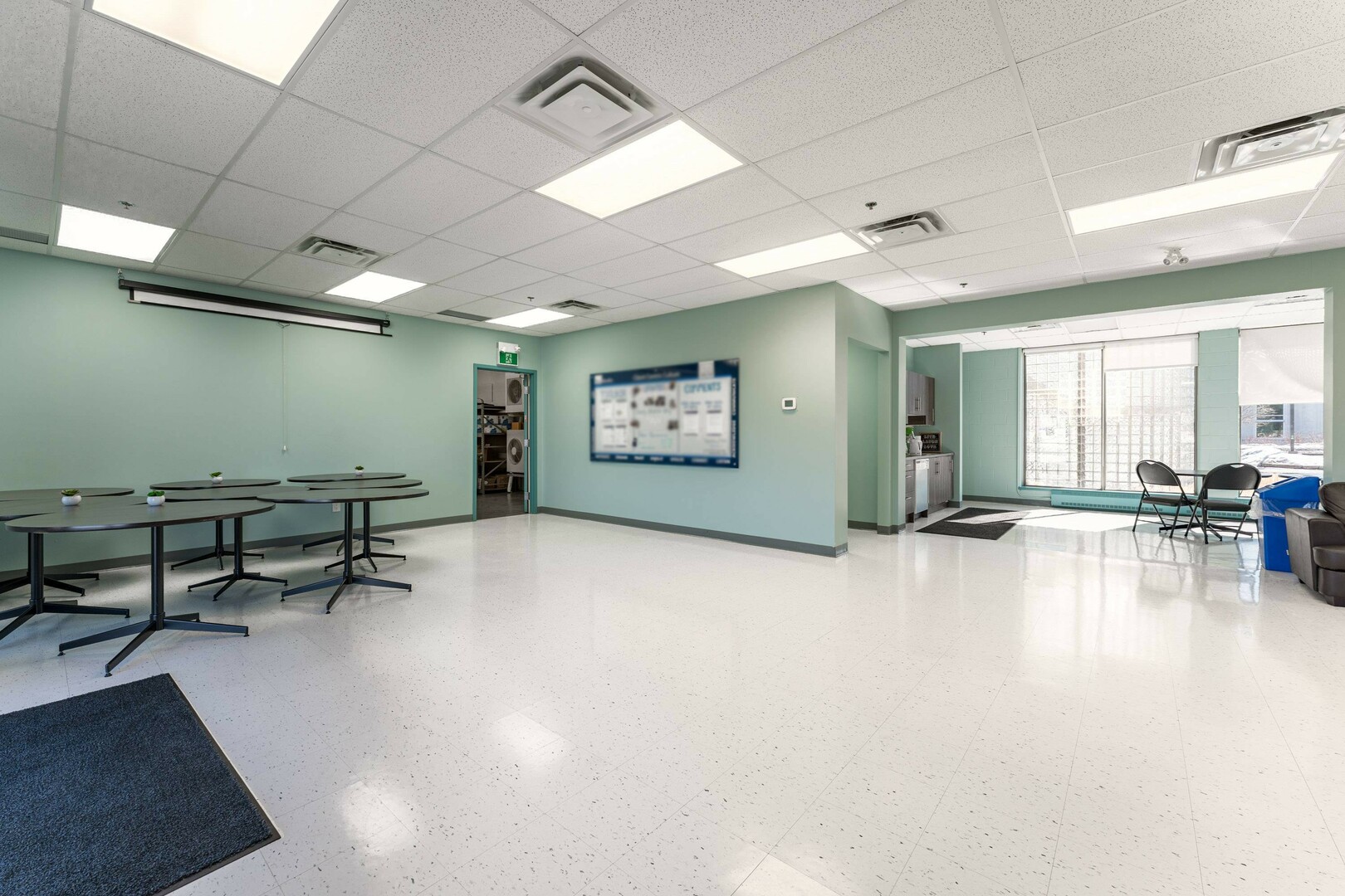 Available for Sublease: Entire Building! 14,652 sq.ft Move-In Ready! This modern, bright office space offers a professional environment with ample amenities. The main floor features a welcoming reception area, seven private offices, a spacious open office or meeting area, a file room, 1,915 sqft of warehouse/storage space, a cafeteria area and men's, women's, and accessible washrooms. The second floor includes six boardrooms, a lounge area, nine offices, a coffee/break station, server rooms, and a large open work area with cubicles, as well as additional men's and women's washrooms.The property offers plenty of parking and is conveniently located near Hwy 404 for easy access. A perfect space for any growing business!