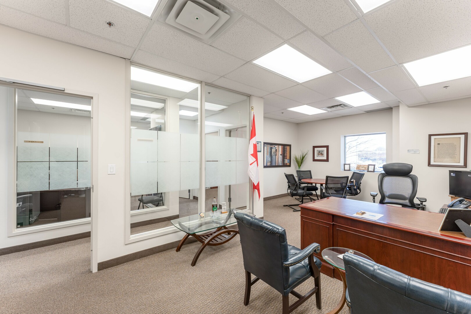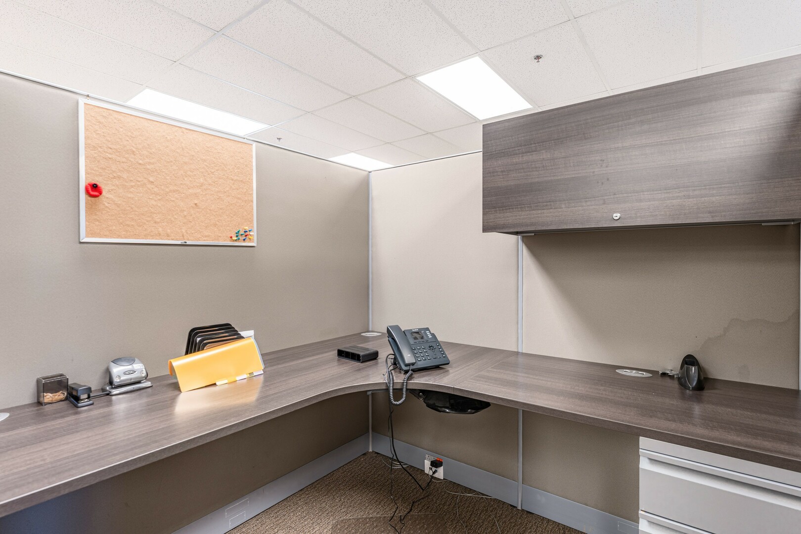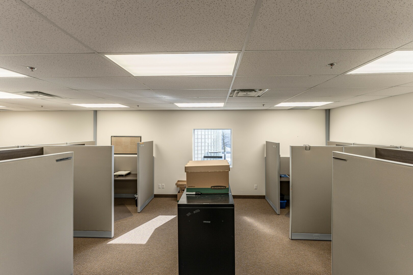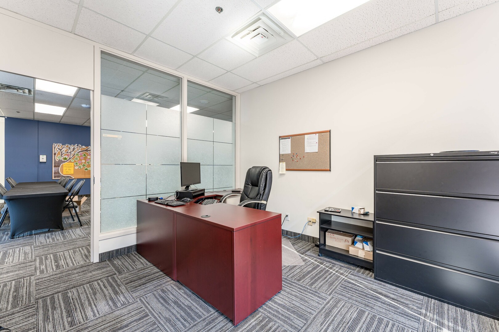 Available for Sublease: Entire Building! 14,652 sq.ft Move-In Ready! This modern, bright office space offers a professional environment with ample amenities. The main floor features a welcoming reception area, seven private offices, a spacious open office or meeting area, a file room, 1,915 sqft of warehouse/storage space, a cafeteria area and men's, women's, and accessible washrooms. The second floor includes six boardrooms, a lounge area, nine offices, a coffee/break station, server rooms, and a large open work area with cubicles, as well as additional men's and women's washrooms.The property offers plenty of parking and is conveniently located near Hwy 404 for easy access. A perfect space for any growing business!