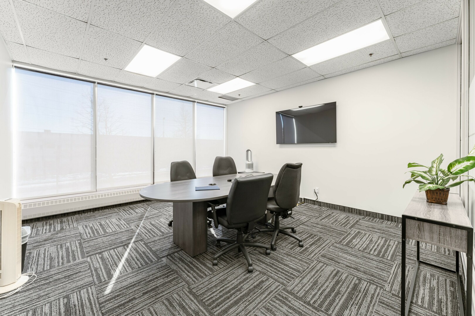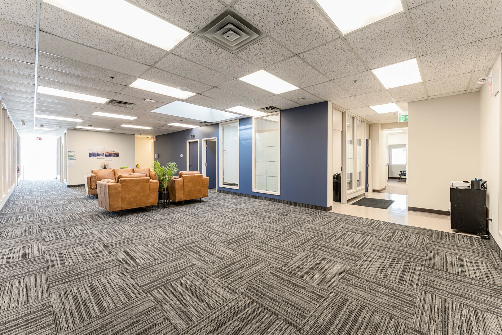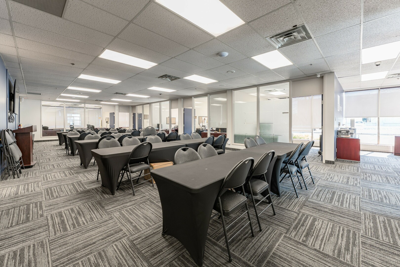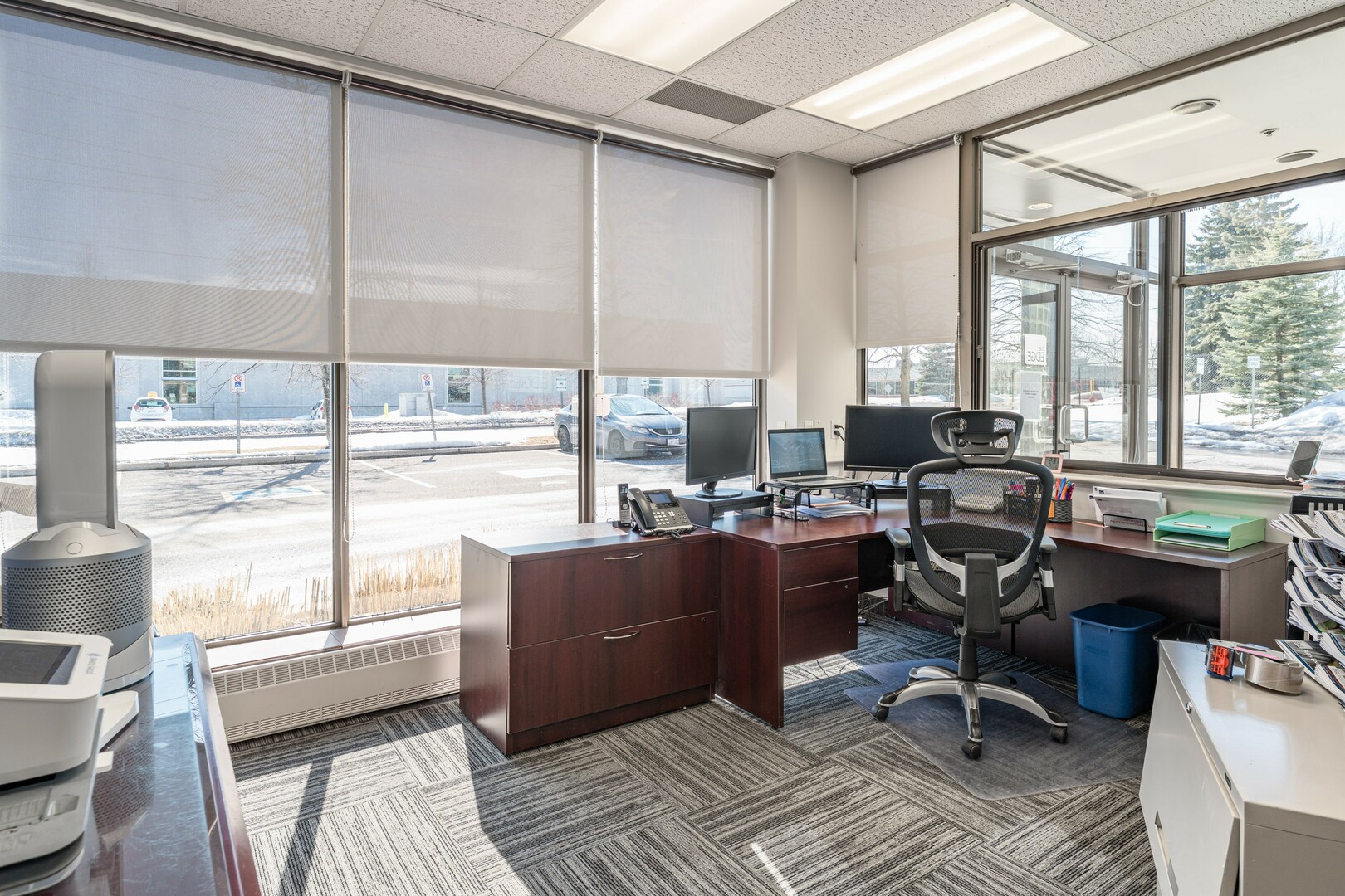Available for Sublease: Entire Building! 14,652 sq.ft Move-In Ready! This modern, bright office space offers a professional environment with ample amenities. The main floor features a welcoming reception area, seven private offices, a spacious open office or meeting area, a file room, 1,915 sqft of warehouse/storage space, a cafeteria area and men's, women's, and accessible washrooms. The second floor includes six boardrooms, a lounge area, nine offices, a coffee/break station, server rooms, and a large open work area with cubicles, as well as additional men's and women's washrooms.The property offers plenty of parking and is conveniently located near Hwy 404 for easy access. A perfect space for any growing business!