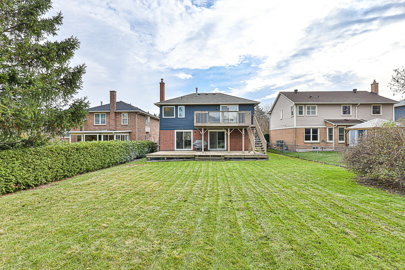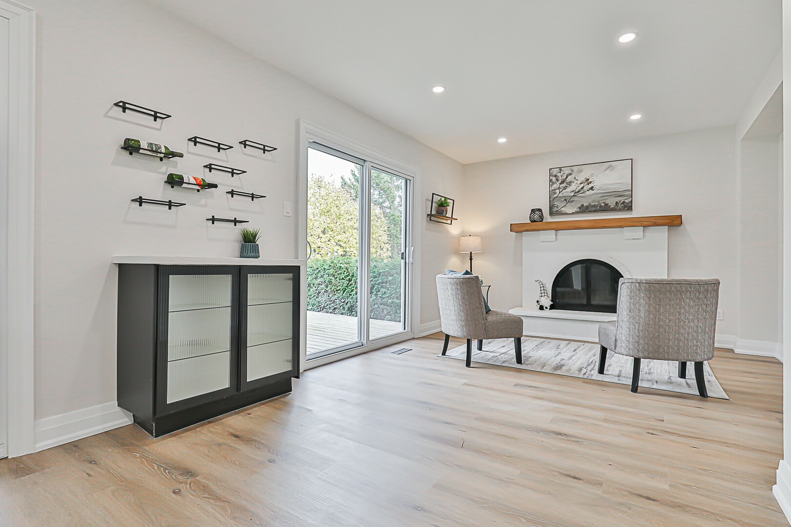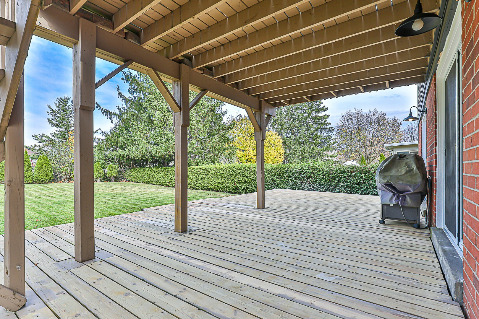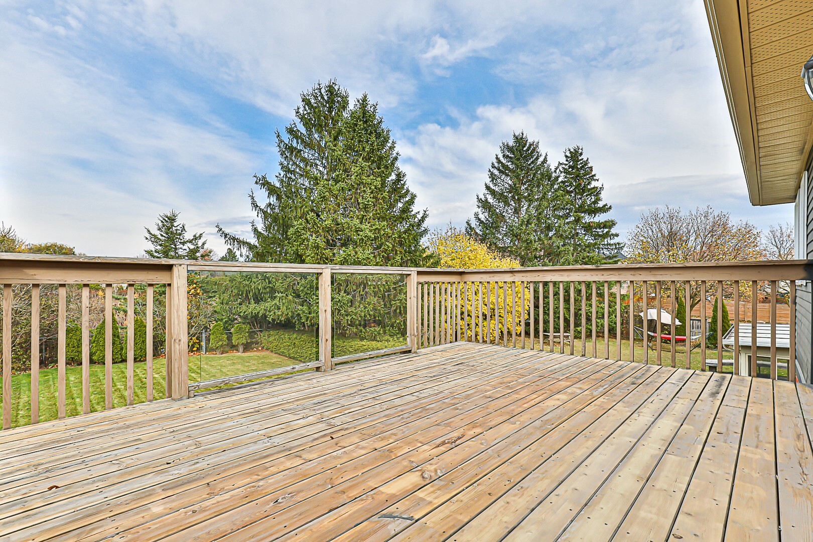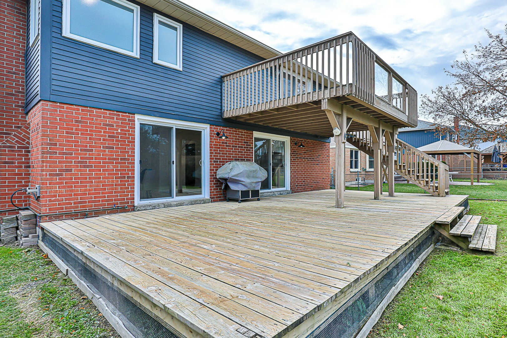 This 4 bedroom family home has been extensively renovated. A pattern concrete walkway leads to the front door. Great open concept layout. The formal Living & Dining Rms are perfect for entertaining. The Family Rm features a fireplace & a walk out to the back deck. The spacious kitchen boasts quartz countertops, custom backsplash, stainless steel appliances, & plenty of cabinets & counter space including an island with a breakfast bar. Primary bedroom has a walk in closet & a luxurious ensuite with a free standing tub & a glass shower. There is another spacious bedroom with a roomy closet & a walk out to the upper deck overlooking the backyard, as well as two additional bedrooms -Plenty of room for a growing family. The finished basement has a fifth bedroom, a 3pc bathroom with a glass shower, an open concept area that could be used as an office or playroom and a generous rec room. The private backyard has a 2 tiered deck & backs onto greenspace with a pond and walking trails.