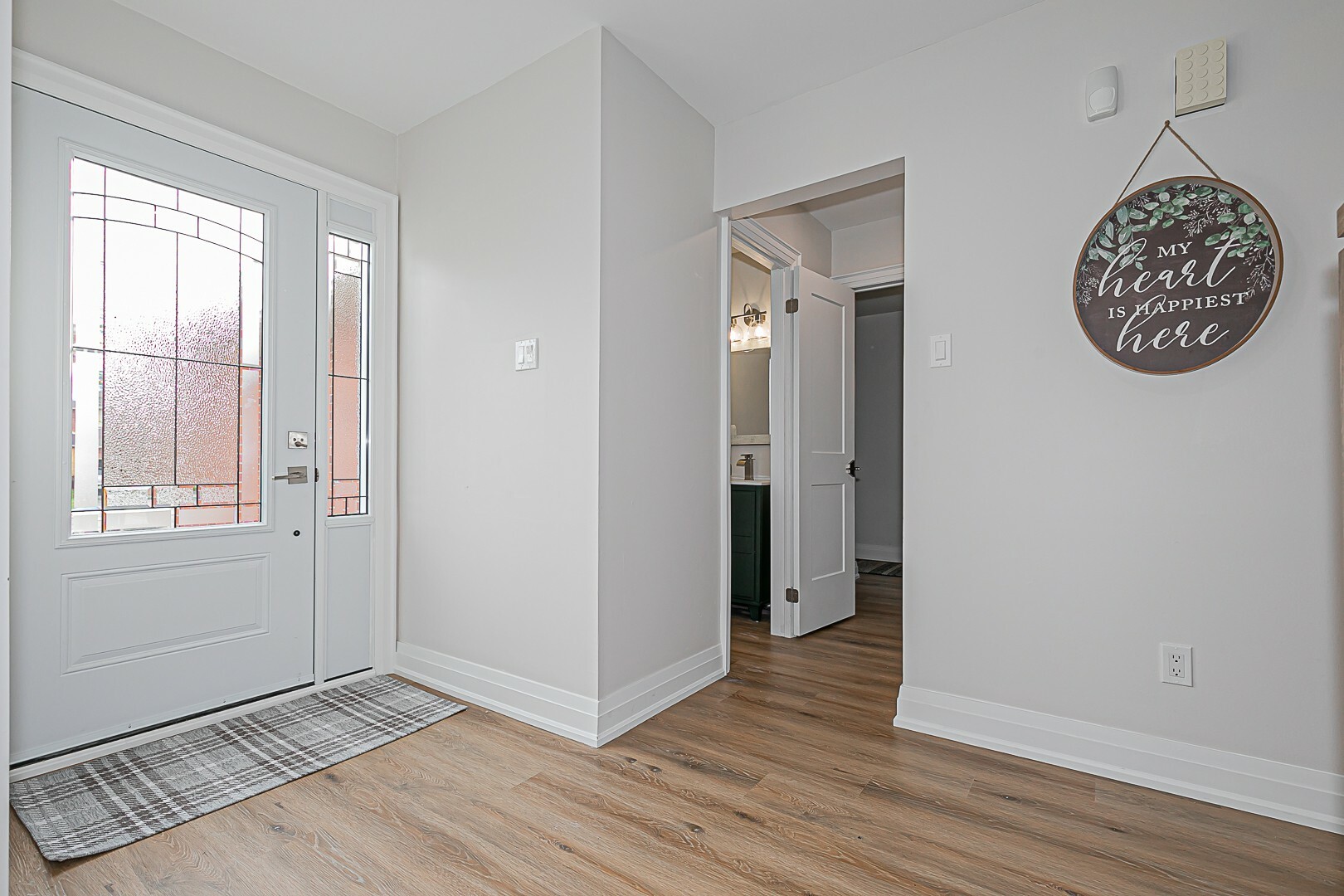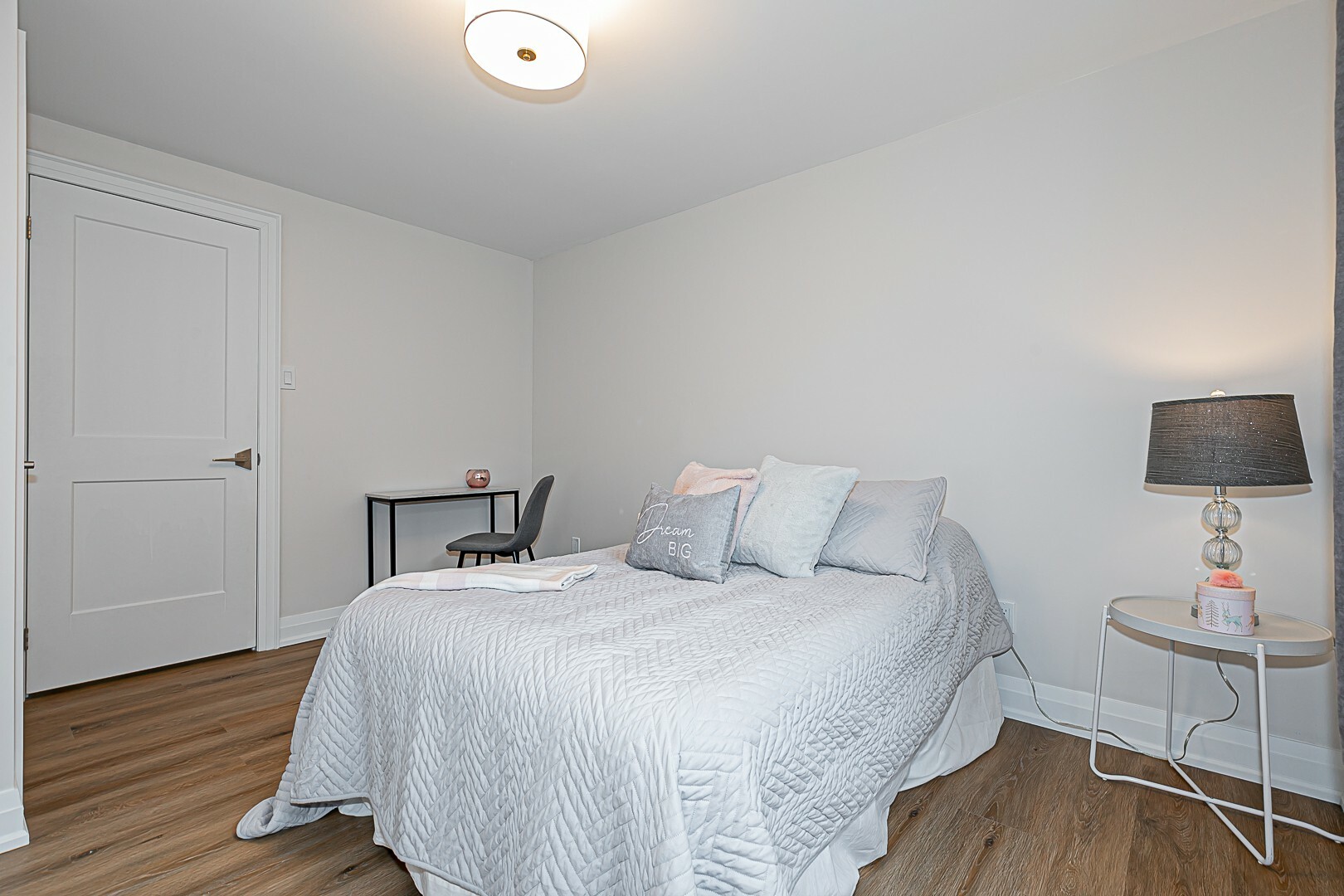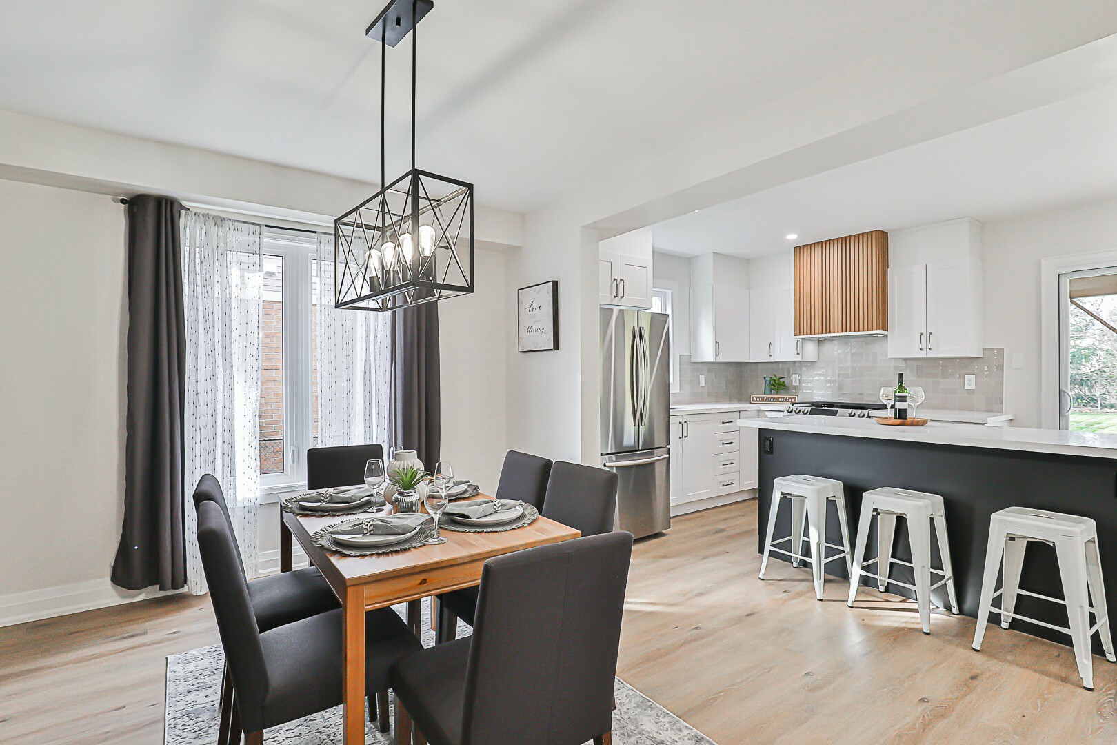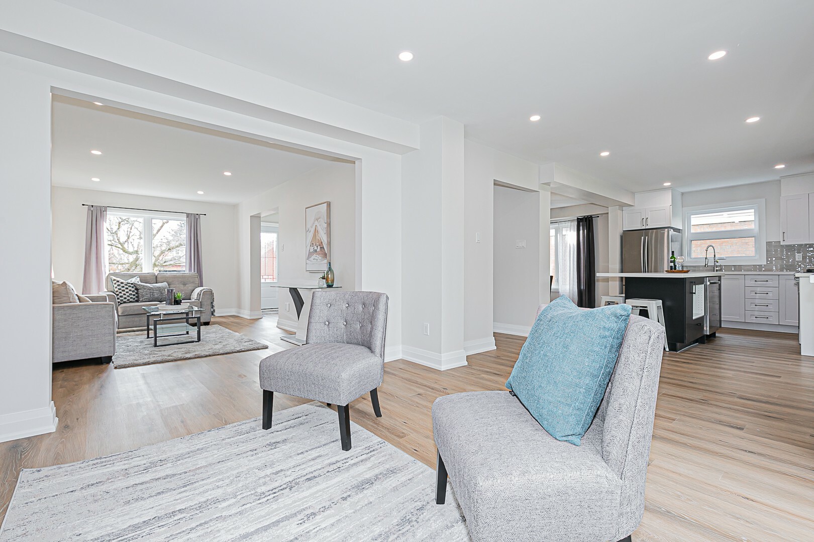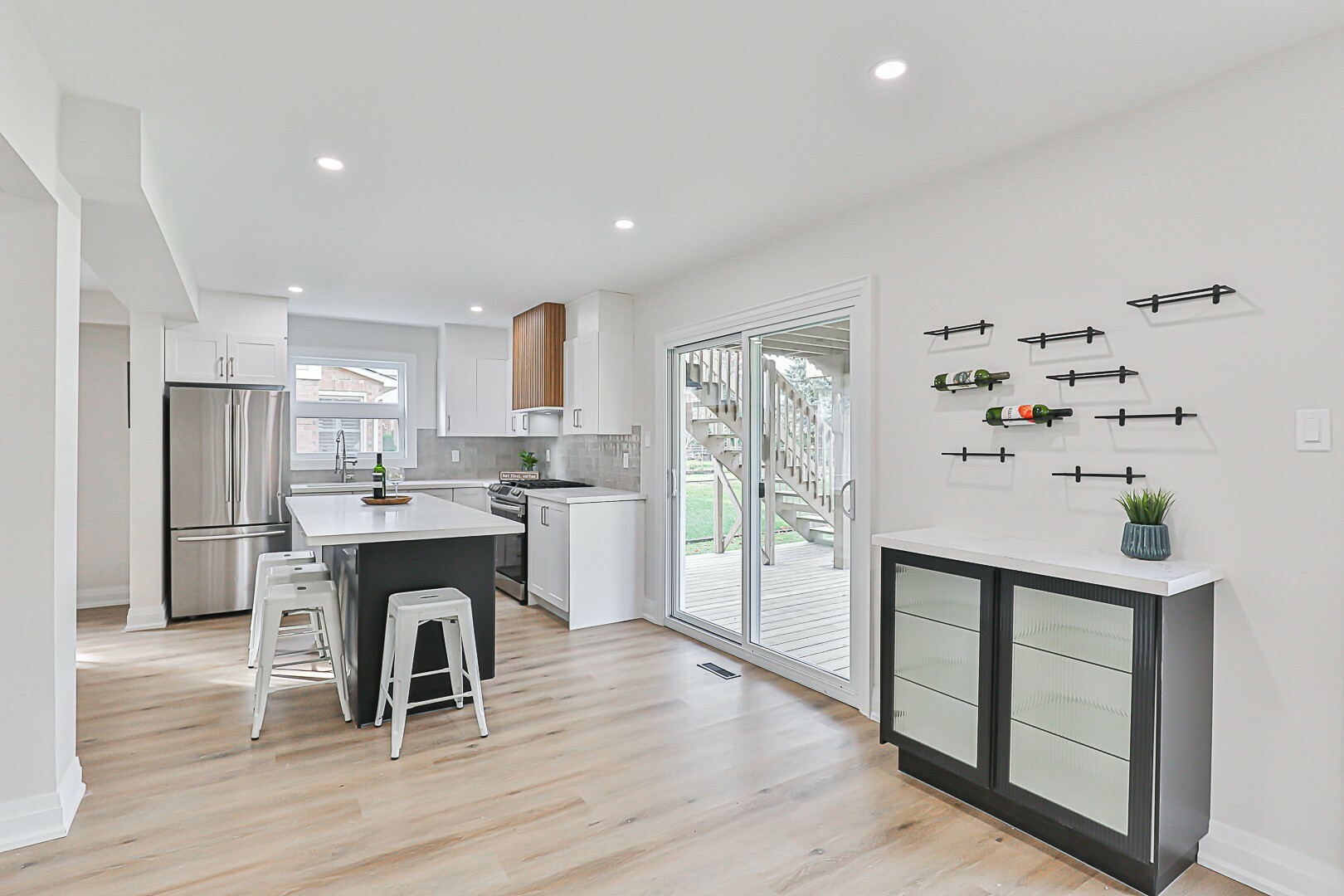 This 4 bedroom family home has been extensively renovated. A pattern concrete walkway leads to the front door. Great open concept layout. The formal Living & Dining Rms are perfect for entertaining. The Family Rm features a fireplace & a walk out to the back deck. The spacious kitchen boasts quartz countertops, custom backsplash, stainless steel appliances, & plenty of cabinets & counter space including an island with a breakfast bar. Primary bedroom has a walk in closet & a luxurious ensuite with a free standing tub & a glass shower. There is another spacious bedroom with a roomy closet & a walk out to the upper deck overlooking the backyard, as well as two additional bedrooms -Plenty of room for a growing family. The finished basement has a fifth bedroom, a 3pc bathroom with a glass shower, an open concept area that could be used as an office or playroom and a generous rec room. The private backyard has a 2 tiered deck & backs onto greenspace with a pond and walking trails.