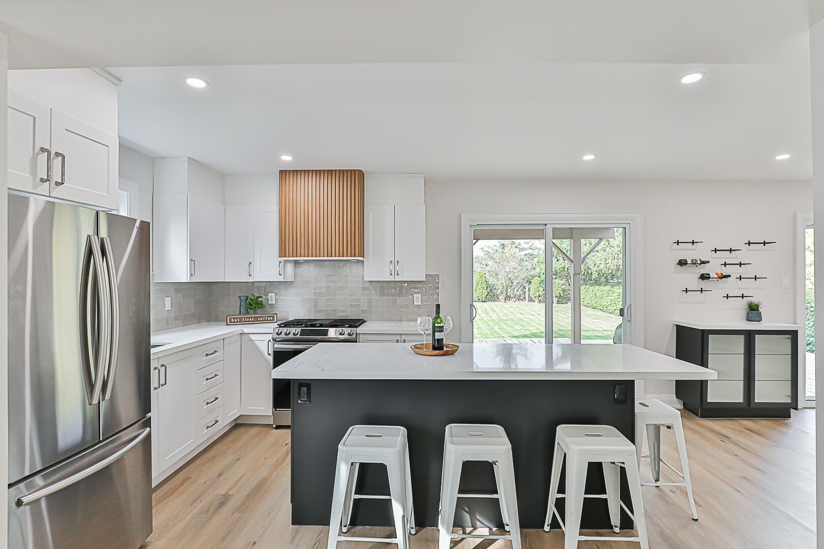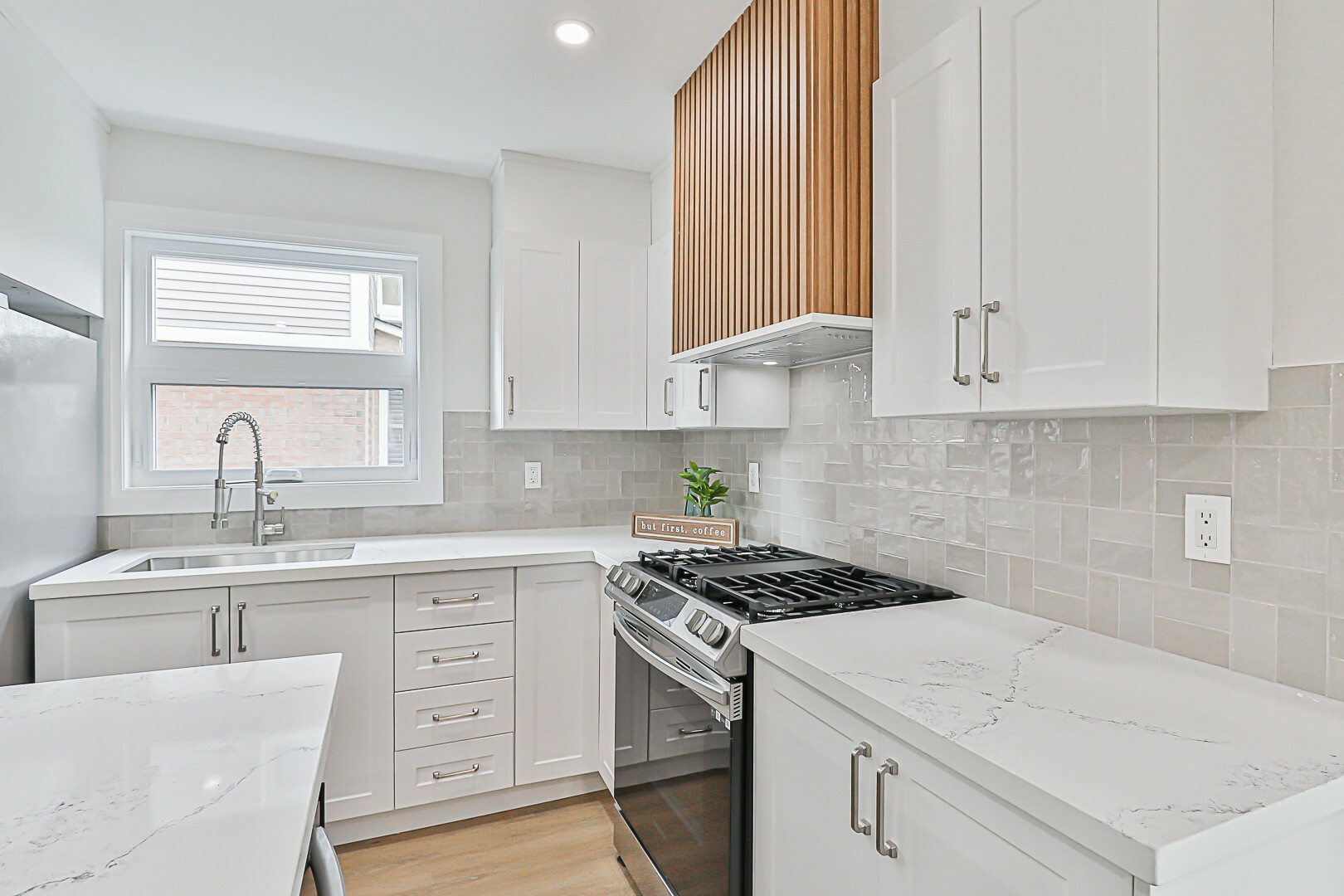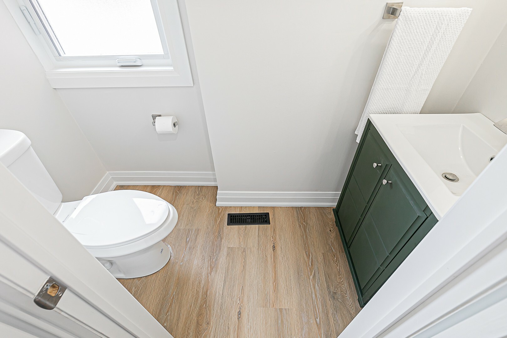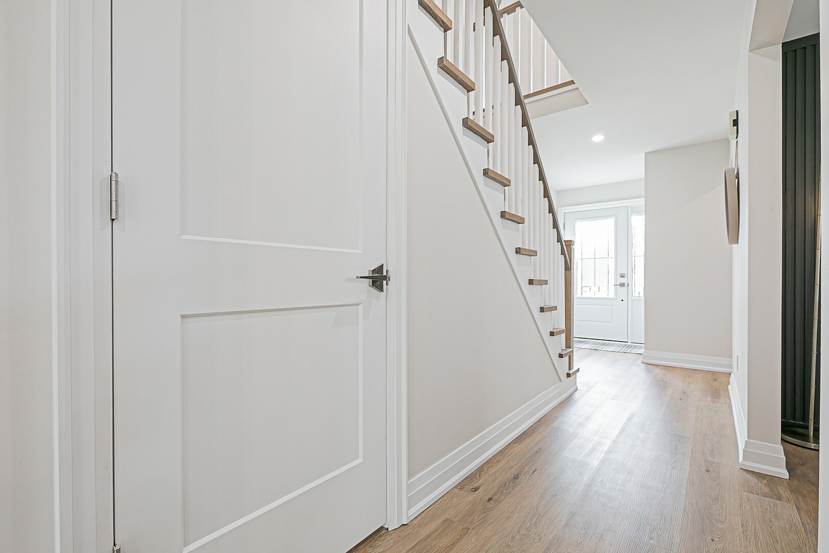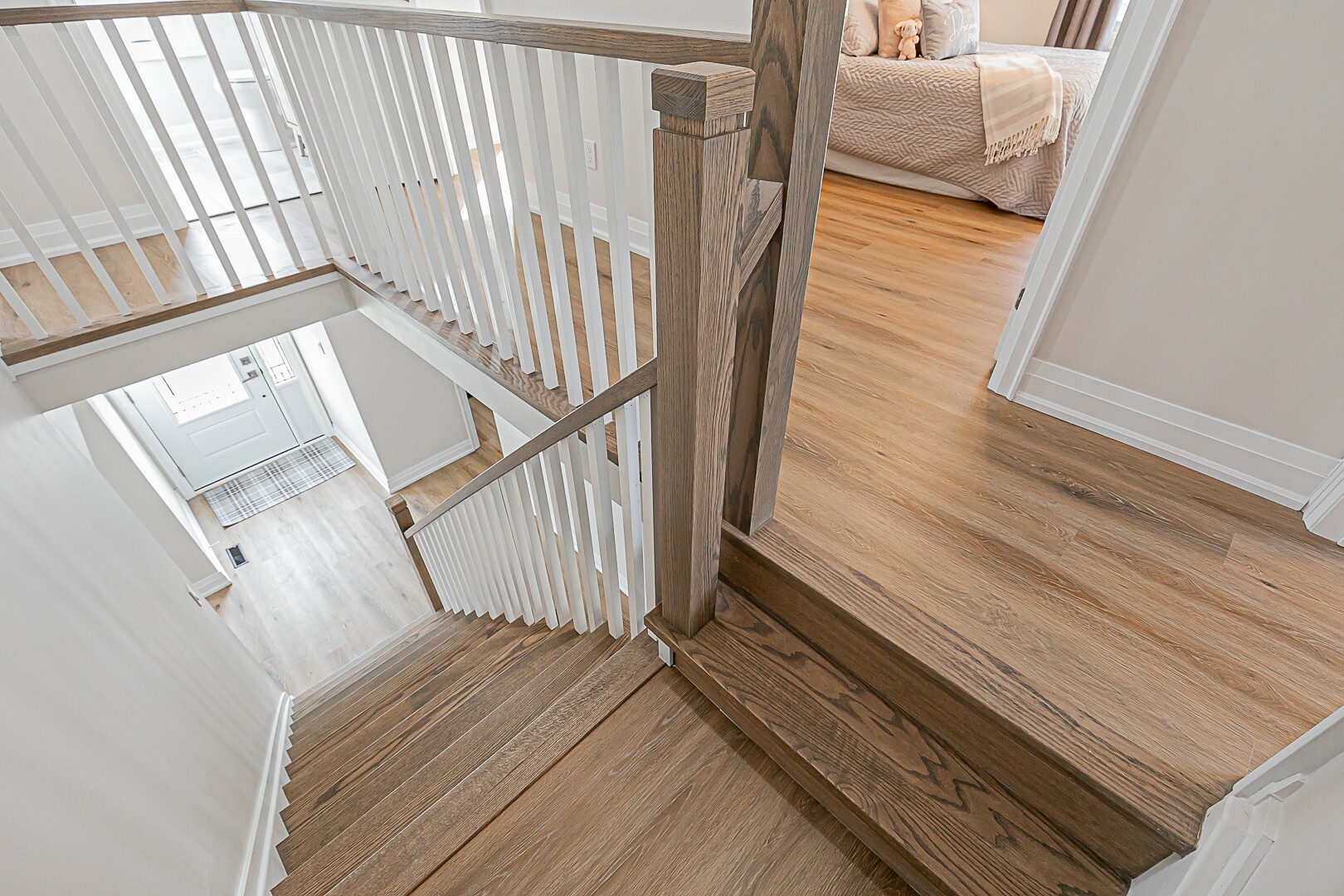 Ascend the staircase to the second floor. The primary bedroom has a walk-in closet and a luxurious ensuite with a double sink vanity, a free standing tub and a glass shower with a rain showerhead and handheld. There is another spacious bedroom with a roomy closet and a walk out to the upper deck overlooking the backyard, as well as two additional bedrooms – Plenty of room for a growing family. A four piece bathroom completes the upper level. Large windows adorn this lovely home.