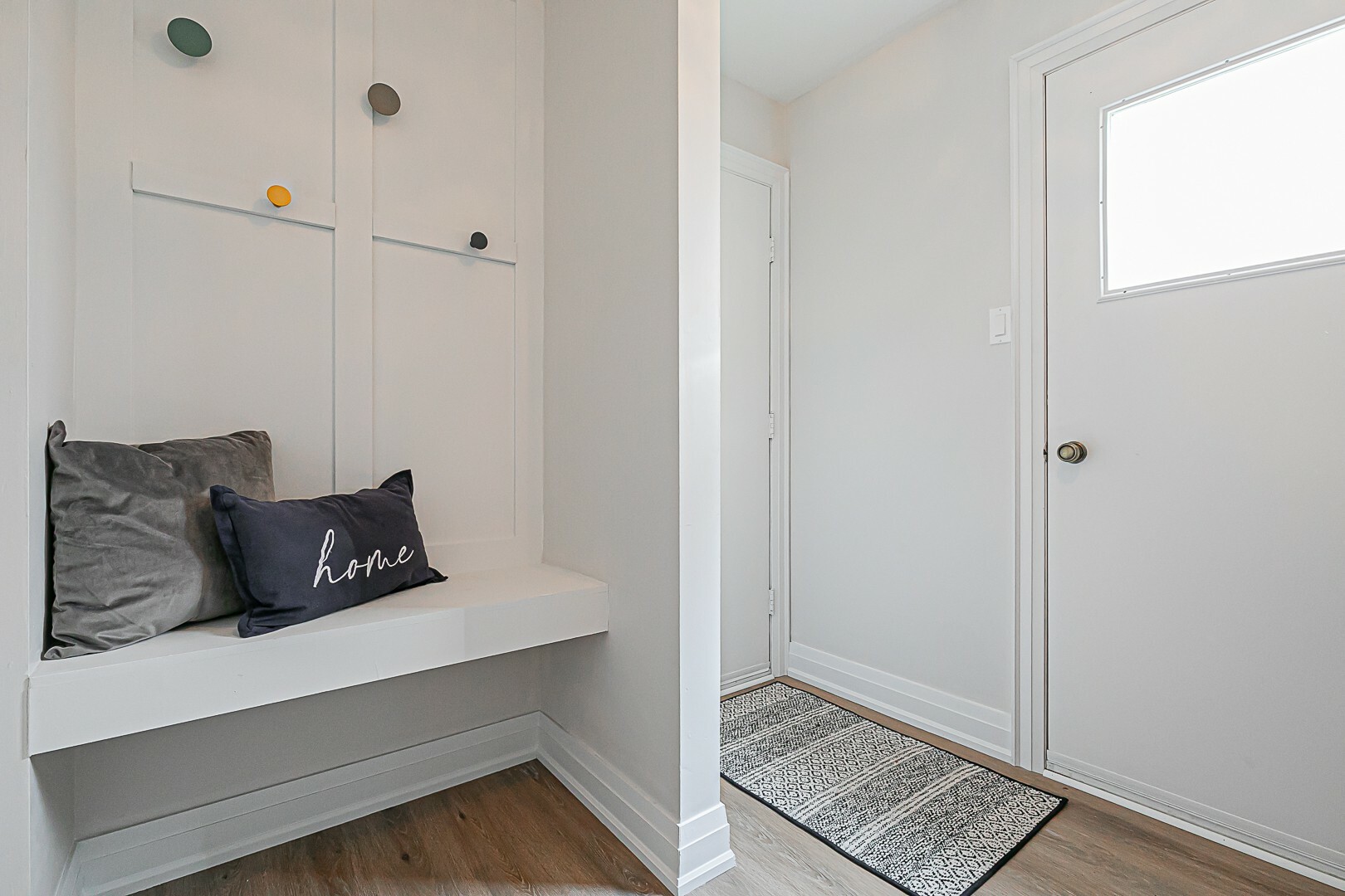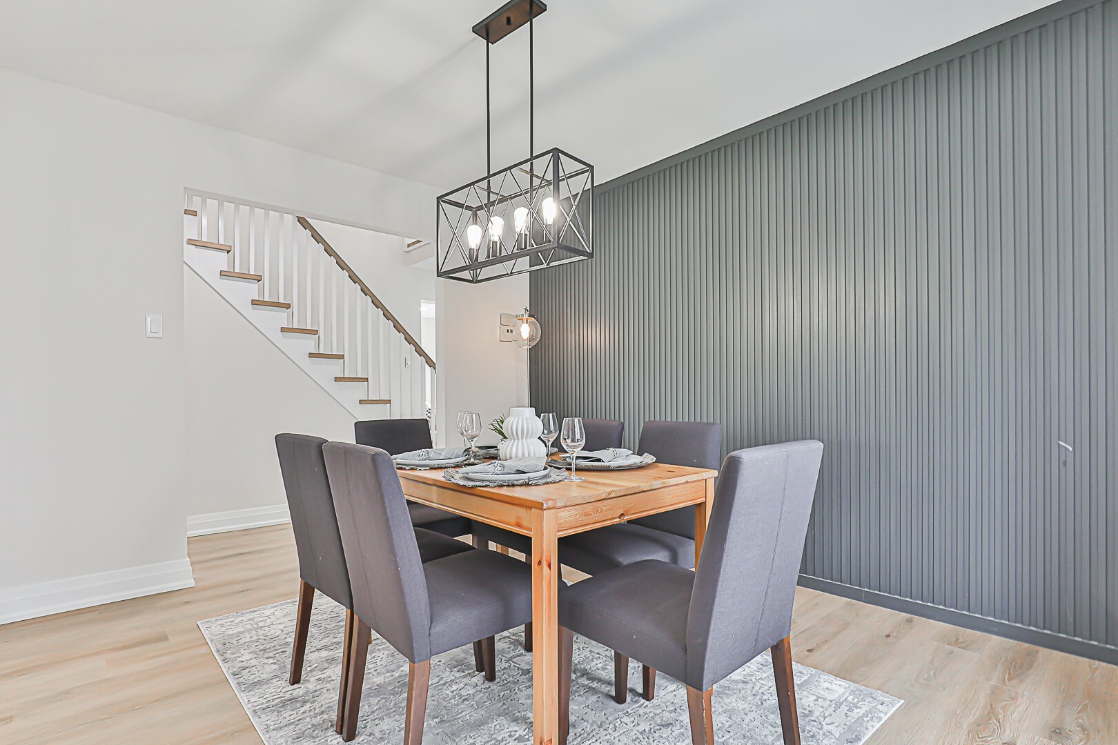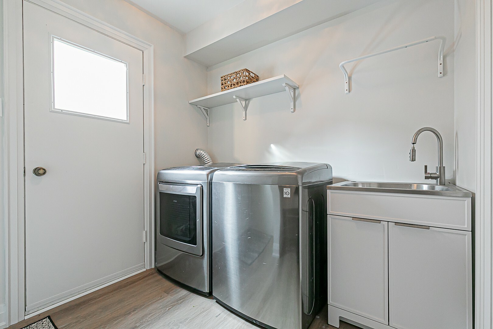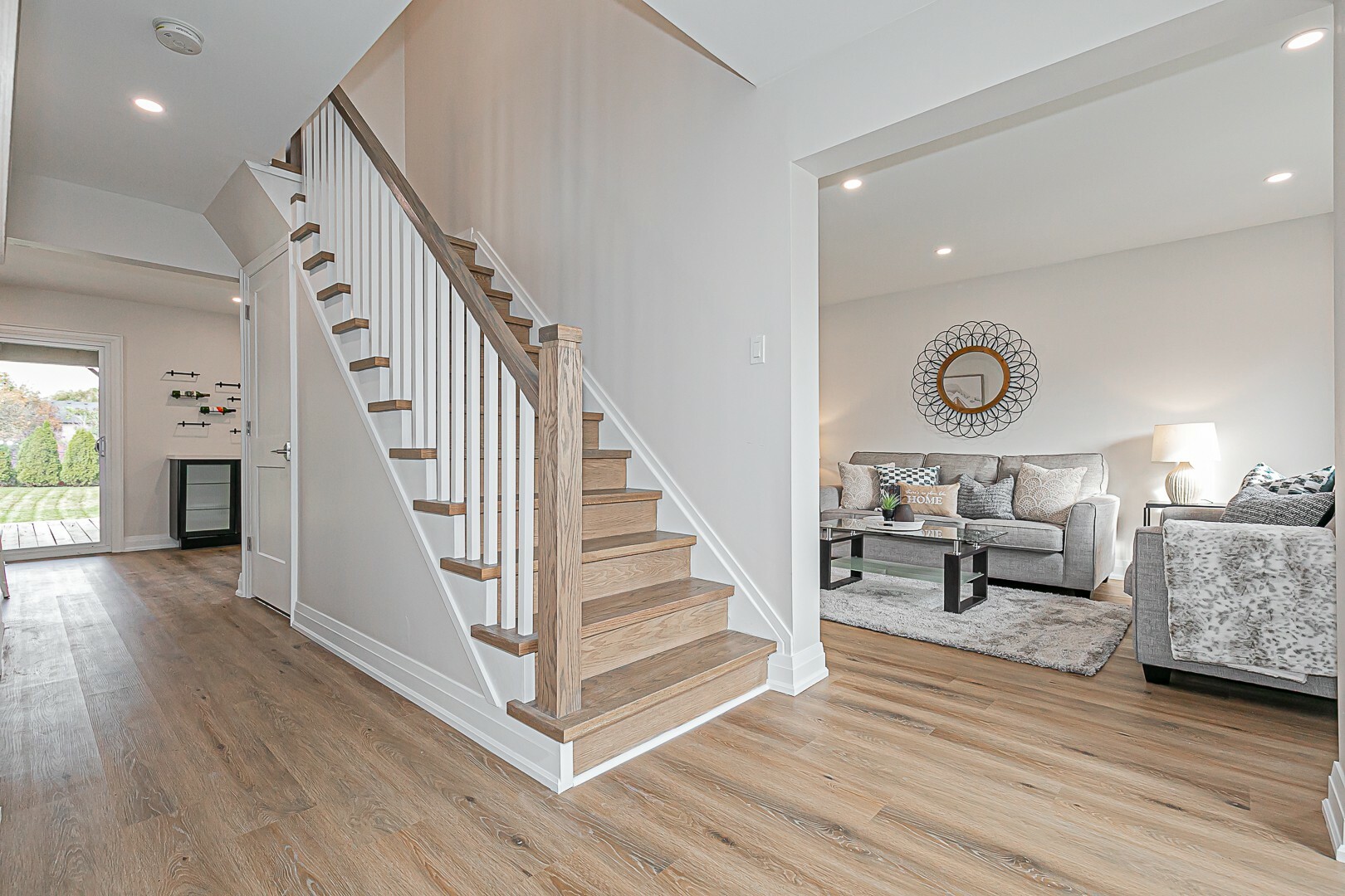Enjoy cooking in the spacious kitchen which boasts quartz countertops, custom backsplash, stainless steel appliances, pot lighting and plenty of cabinets and counter space including an island with a breakfast bar. Between the kitchen and family room is an area that could be used as a breakfast area or an extension of the kitchen or family room and features a built-in dry bar and a walk out to the back deck. The formal dining room is perfect for entertaining or enjoying meals with the family. Finishing off the main floor is a two piece washroom and the laundry room which has a built-in bench and walkouts to the garage and the side yard.