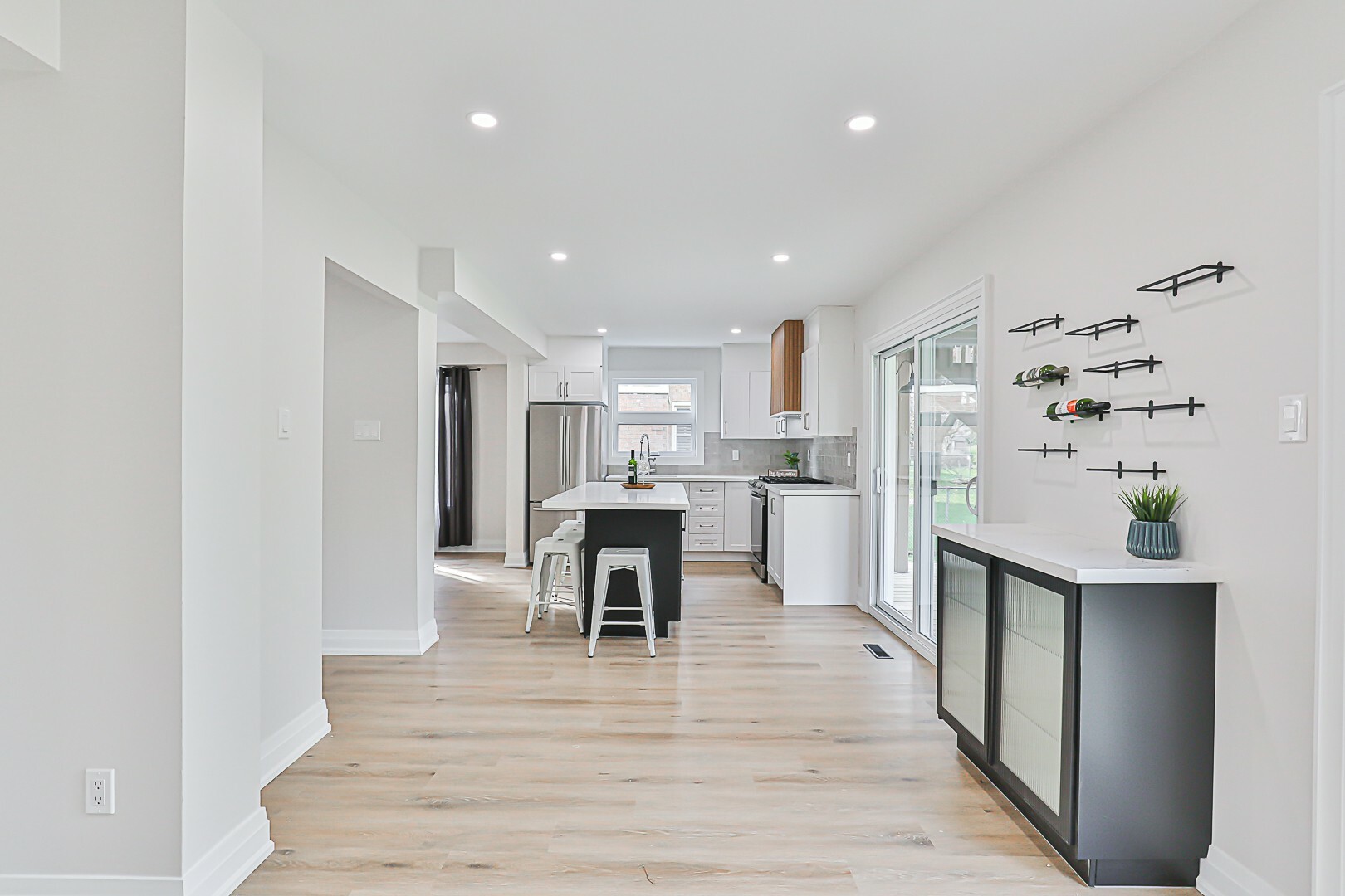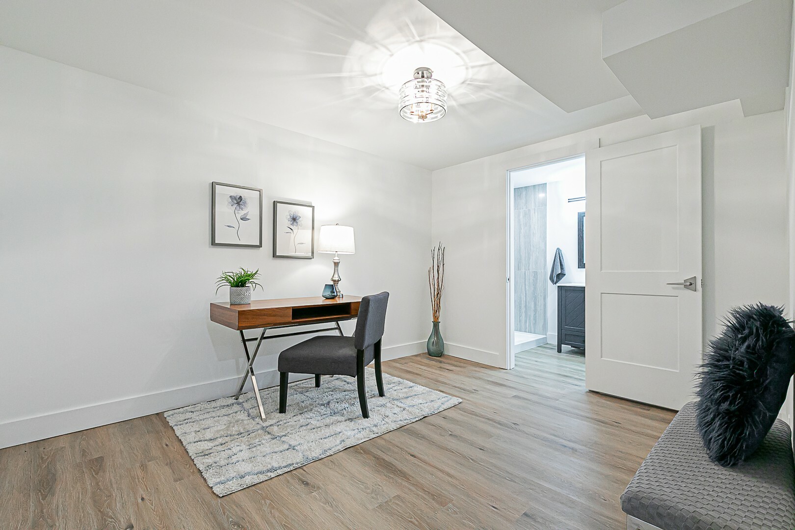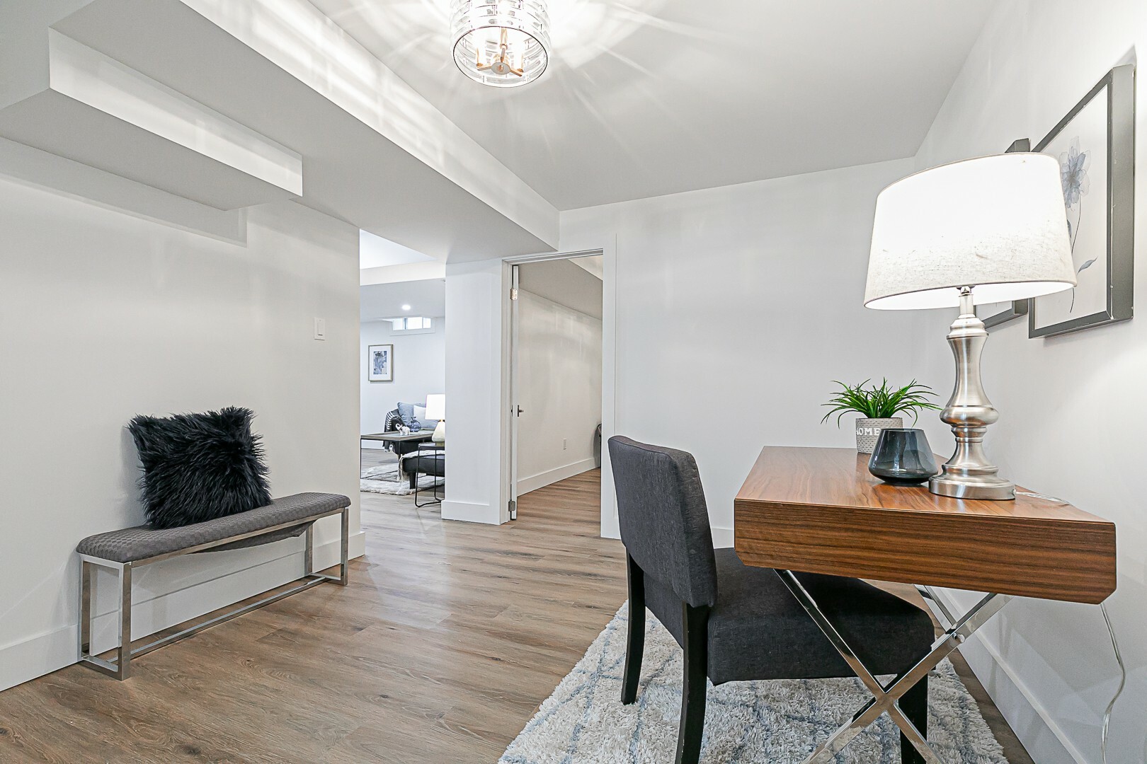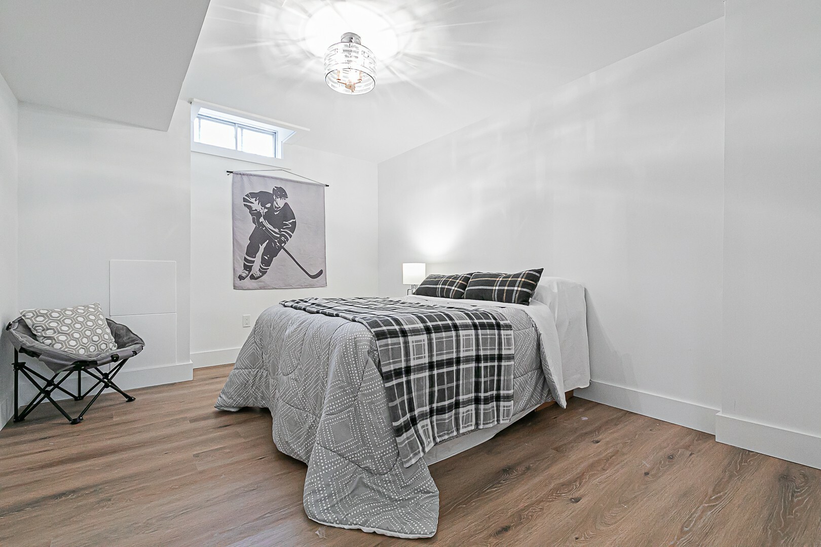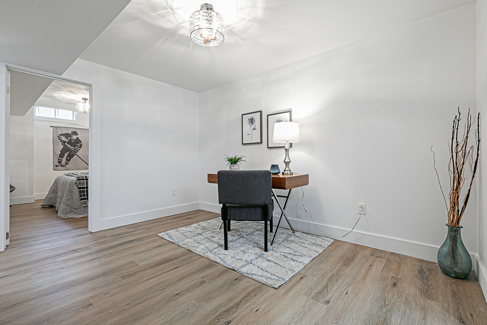 For additional living space, the basement is finished with a fifth bedroom, a three piece bathroom with a glass shower, an open concept area that could be used as an office or playroom and a generous rec room. Beautiful vinyl plank flooring runs throughout this home.
