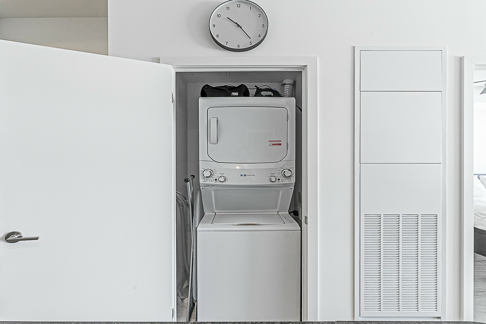 Included: All Window Coverings, All Electrical Light Fixtures, Stove, Microwave Range Hood, Fridge, Built in Dishwasher, Stackable Clothes Washer and Dryer, All Washroom Mirrors, 1 Car Underground Parking, 1 Storage Locker, and All other fixtures attached to the real property.