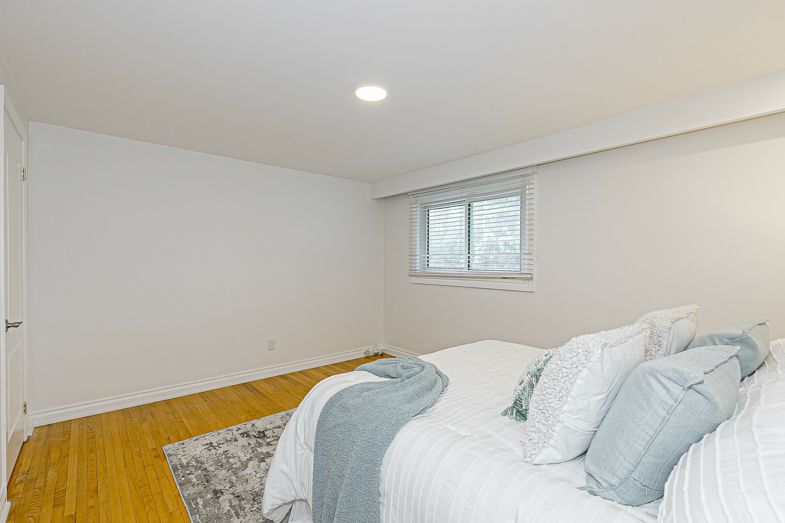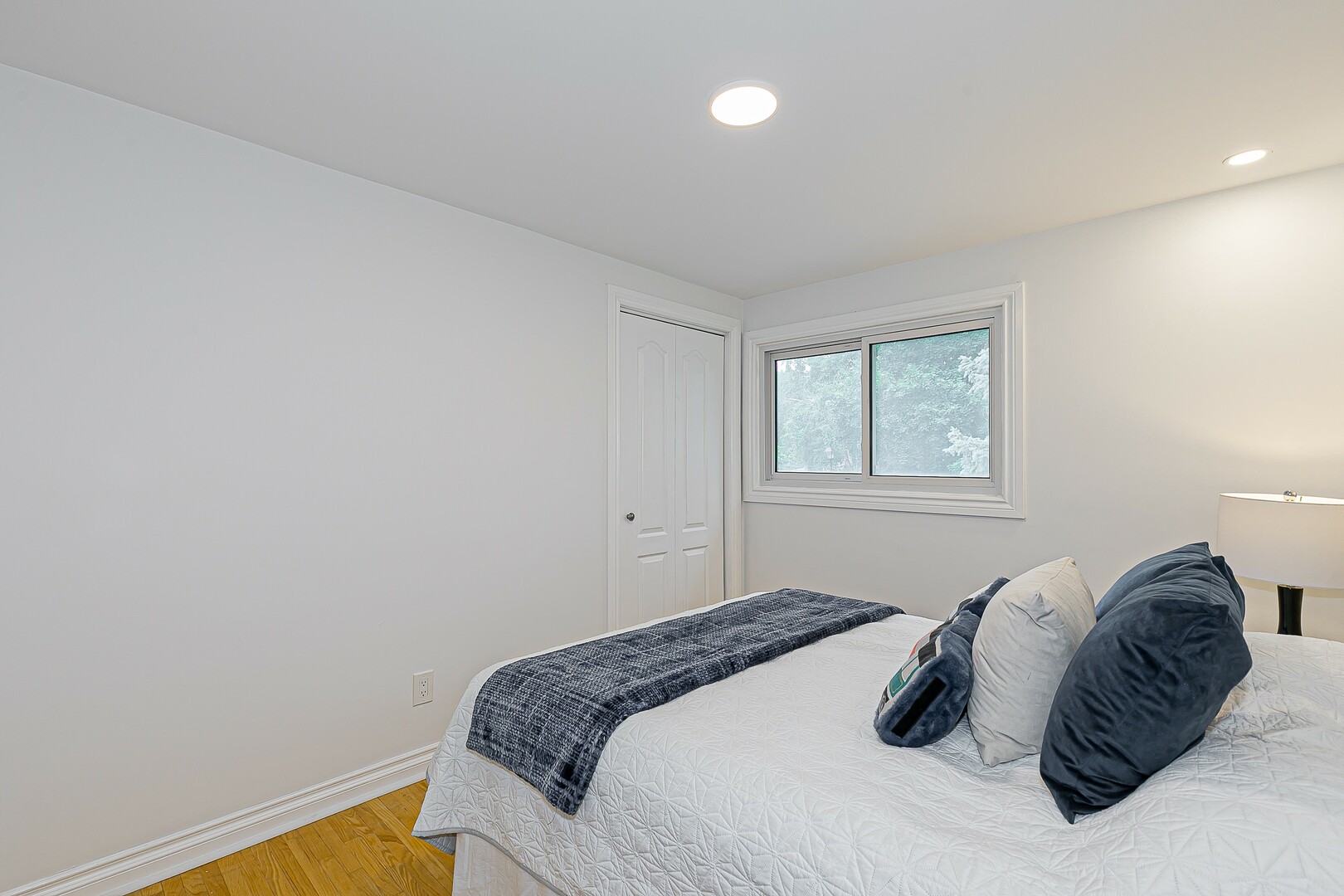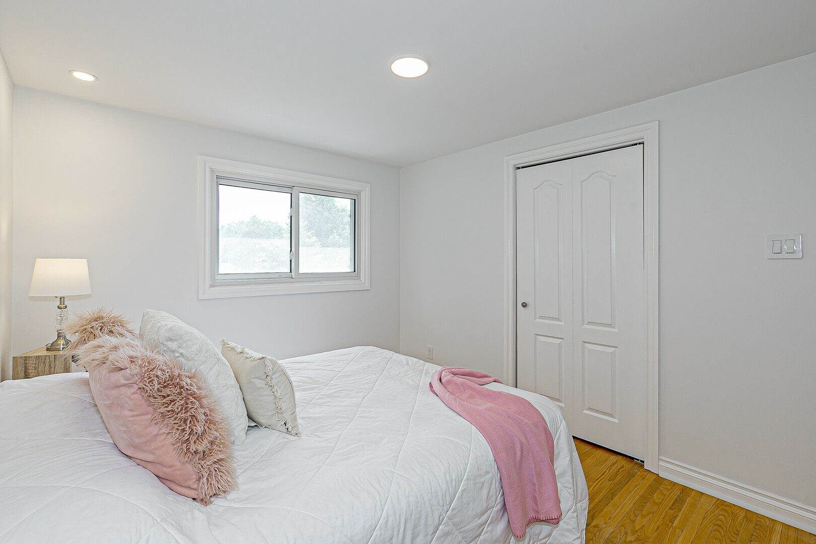 Welcome to this beautifully maintained and thoughtfully updated 4+1 bedroom home, nestled on a quiet court in the heart of Central Newmarket. Perfect for families, multi-generational living, or buyers seeking rental income potential, this home offers almost 2000 square feet of finished living space that is the perfect blend of space, style, and functionality. As you approach, you are welcomed by a fully enclosed front porch ideal for relaxing or keeping the elements out during winter. Inside, the spacious family room features rich hardwood floors and a cozy gas fireplace, making it the perfect spot to gather with loved ones. The main floor also boasts a fully renovated kitchen complete with quartz countertops, a custom backsplash, and brand-new stainless steel appliances. An updated two-piece bathroom completes the level. Upstairs, you'll find four generously sized bedrooms, each with ample closet space and natural light. The updated four-piece bathroom adds modern charm and convenience to the second floor. The fully finished basement offers fantastic flexibility. With its own separate entrance, a large bedroom, walk-in closet, and a modern three-piece bathroom, its perfect for in-laws or easily converted back into a rental apartment for extra income. Step outside to a large deck and fully fenced backyard ideal for outdoor entertaining, gardening, or simply relaxing in a private setting. This home is ideally located close to top-rated schools, Fairy Lake, parks, shops, public transit, and major highways, offering both tranquility and accessibility. With countless upgrades and income potential, this is a rare opportunity in one of Newmarket's most desirable neighborhoods. Don't miss your chance view this property! (id:9346)