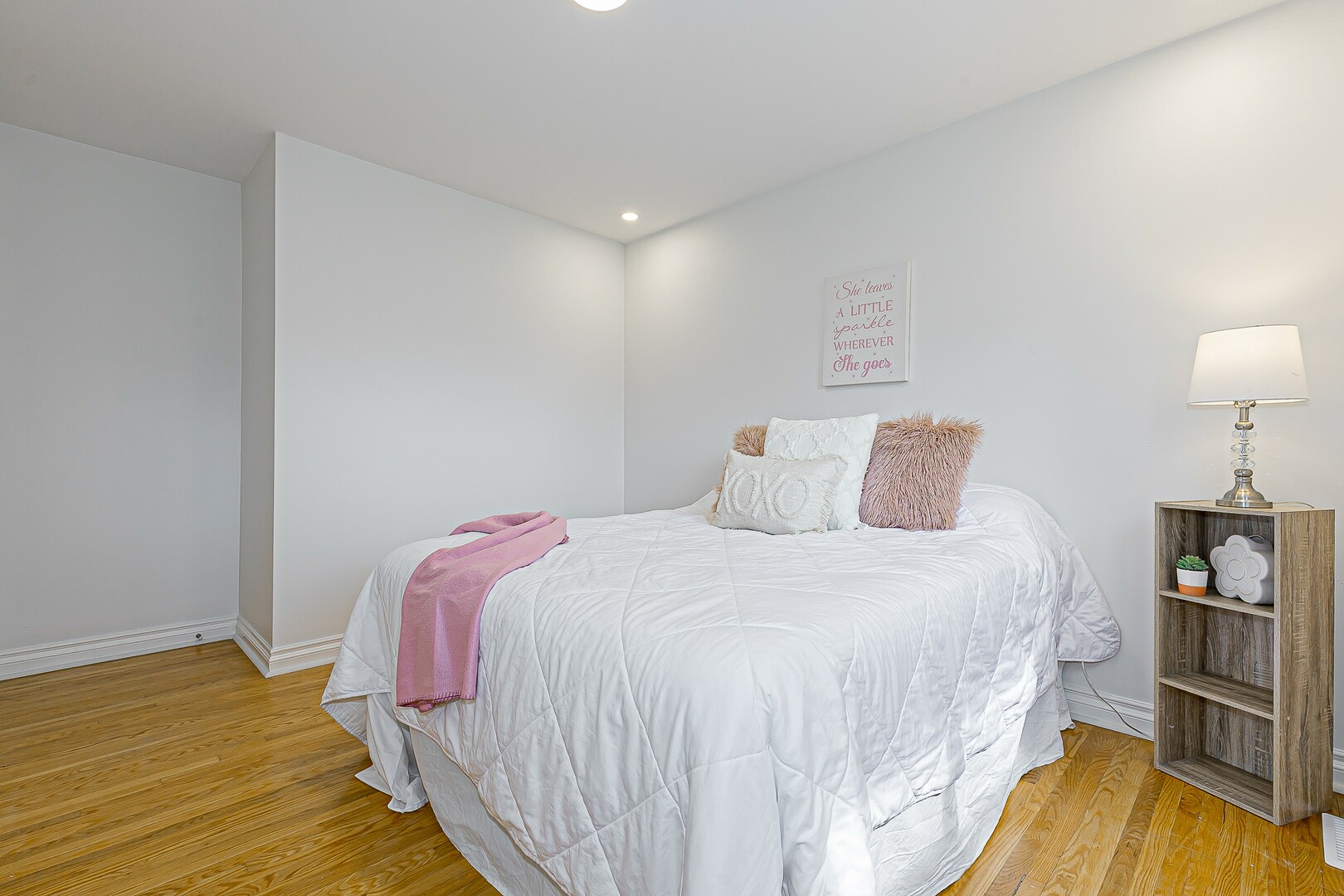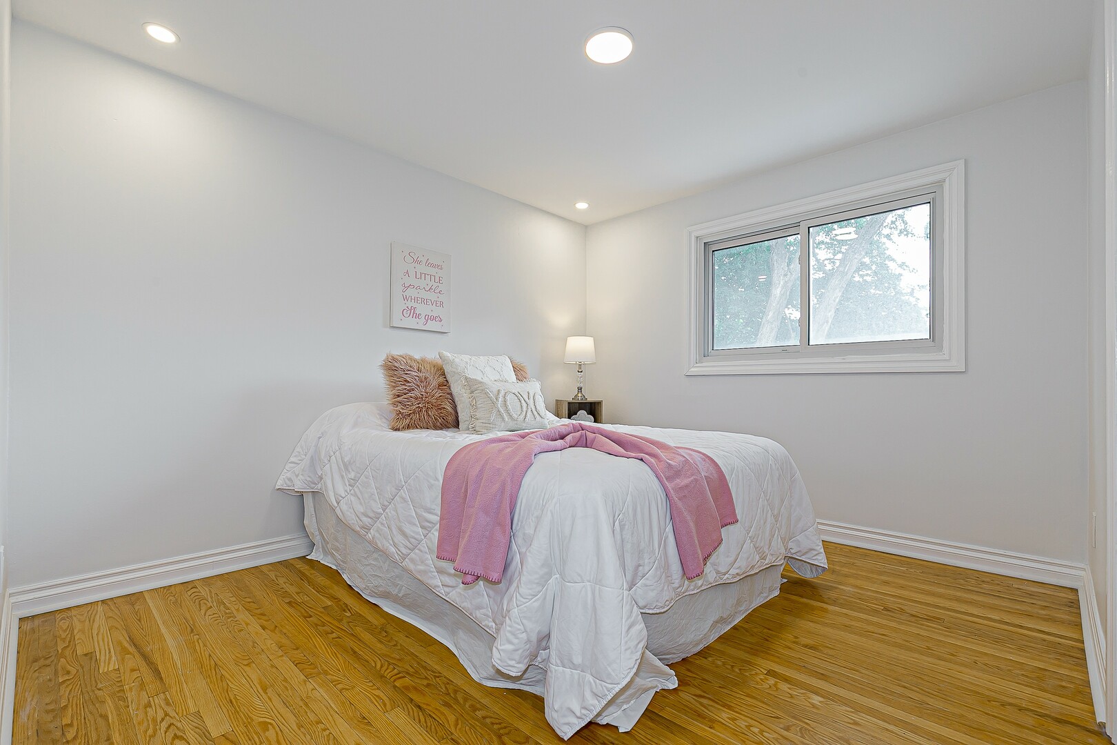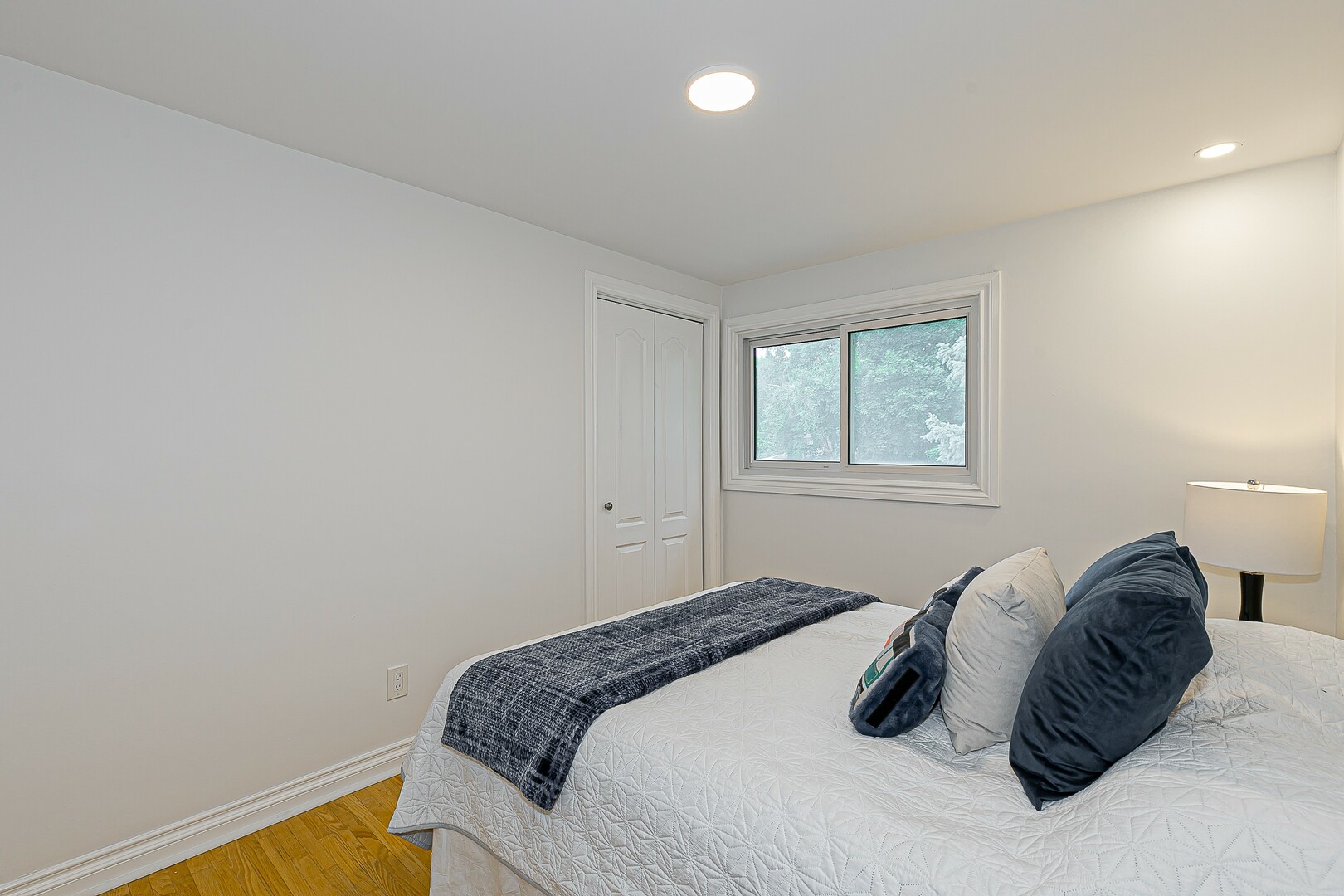 Welcome to this beautifully maintained and thoughtfully updated 4+1 bedroom home, nestled on a quiet court in the heart of Central Newmarket. Perfect for families, multi-generational living, or buyers seeking rental income potential, this home offers almost 2000 square feet of finished living space that is the perfect blend of space, style, and functionality. As you approach, you are welcomed by a fully enclosed front porch ideal for relaxing or keeping the elements out during winter. Inside, the spacious family room features rich hardwood floors and a cozy gas fireplace, making it the perfect spot to gather with loved ones. The main floor also boasts a fully renovated kitchen complete with quartz countertops, a custom backsplash, and brand-new stainless steel appliances. An updated two-piece bathroom completes the level. Upstairs, you'll find four generously sized bedrooms, each with ample closet space and natural light. The updated four-piece bathroom adds modern charm and convenience to the second floor. The fully finished basement offers fantastic flexibility. With its own separate entrance, a large bedroom, walk-in closet, and a modern three-piece bathroom, its perfect for in-laws or easily converted back into a rental apartment for extra income. Step outside to a large deck and fully fenced backyard ideal for outdoor entertaining, gardening, or simply relaxing in a private setting. This home is ideally located close to top-rated schools, Fairy Lake, parks, shops, public transit, and major highways, offering both tranquility and accessibility. With countless upgrades and income potential, this is a rare opportunity in one of Newmarket's most desirable neighborhoods. Don't miss your chance view this property! (id:9346)