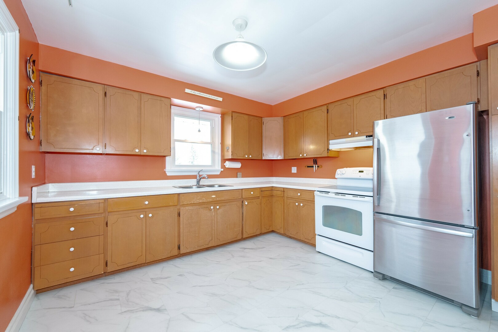 Welcome to 562 Haines Rd., Newmarket. This brick bungalow is located at the end of a child friendly cul-de-sac just east of Main St. The location is superb and is convenient to nearly everything you need in life. There is an abundance of boutique & box store shopping for clothes and/or groceries, plus Upper canada Mall. Public transportation in town and out. Or choose a 4 minute commute to one of two, local GoTrain stops. This home is situated on a large lot, with a fenced rear yard, perfect for the dog, that backs a park! AND the home has an on-grade finished basement with a walk-out to a patio, and access to the garage. It wouldn't take much to renovate this space into an in-law suite as there is already a bedroom, sitting area with fireplace, plus a 3pc bathroom (shower) and laundry. The main floor has a bright kitchen with a lovely view of the back yard and park plus a side door exit to a small deck. There is a formal dining room, and a living room that overlooks the rear yard with its own walk-out to a deck. There are 3 bedrooms on the main floor and a renovated bathroom. Windows have been upgraded to vinyl casement. Plenty of parking with the double wide driveway.