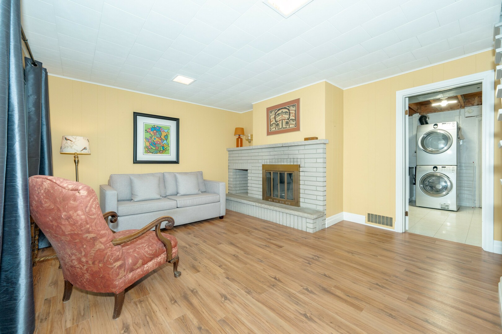 Welcome to 562 Haines Rd., Newmarket. This brick bungalow with DOUBLE car garage, is located at the end of a child friendly cul-de-sac just east of Main St. The location is superb and is convenient to nearly everything you need in life. There is an abundance of boutique & box store shopping for clothes and/or groceries, plus Upper Canada Mall. Public transportation in town and out. Or choose a 4 minute commute to one of two, local GoTrain stops. This home is situated on a large lot, with a fenced rear yard, perfect for the dog, that backs a park! AND the home has an on-grade finished basement with a walk-out to a patio, and access to the garage. It wouldn't take much to renovate this space into an in-law suite as there is already a bedroom, sitting area with fireplace, plus a 3pc bathroom (shower) and laundry. The main floor has a bright kitchen with a lovely view of the back yard and park, plus a side door exit to a small deck. There is a formal dining room, and a living room that overlooks the rear yard with its own walk-out to a deck. There are 3 bedrooms on the main floor and a renovated bathroom. Windows have been upgraded to vinyl casement. Plenty of parking with the double wide driveway. Basement is suitable with some modification for an in-law suite.