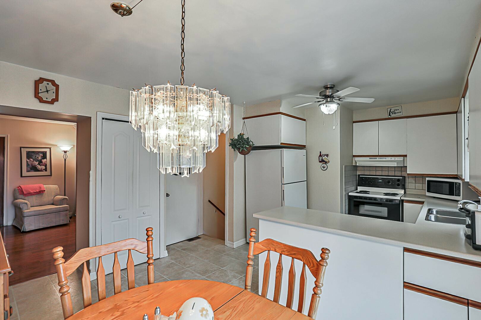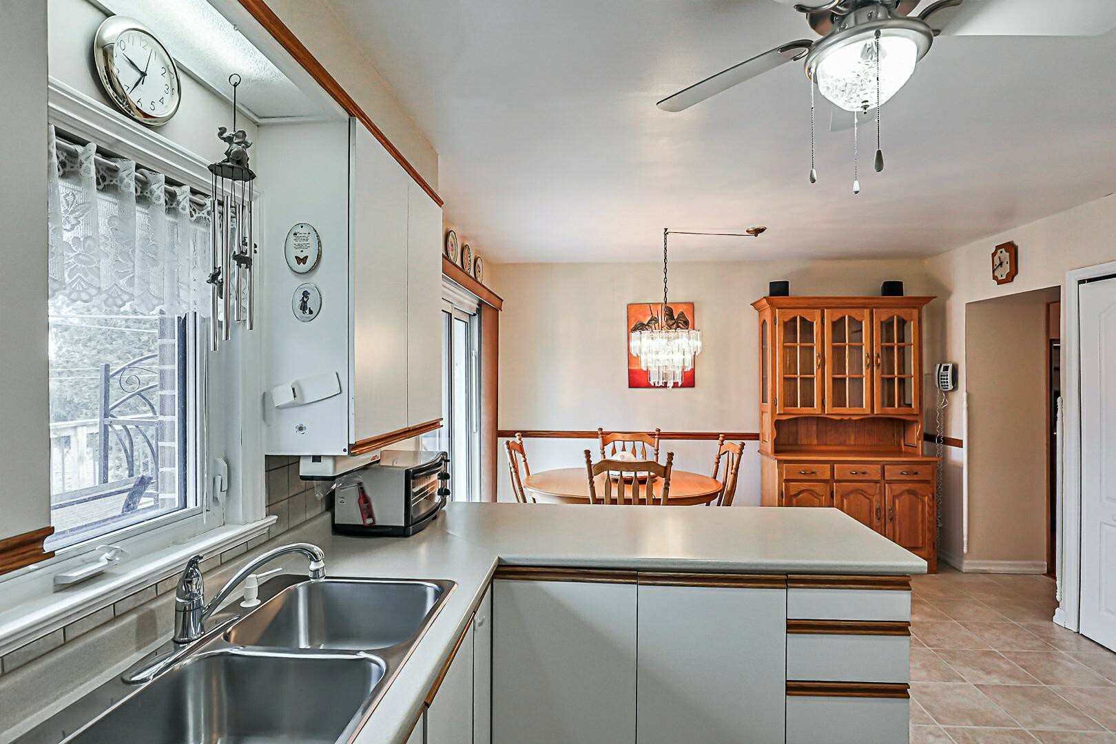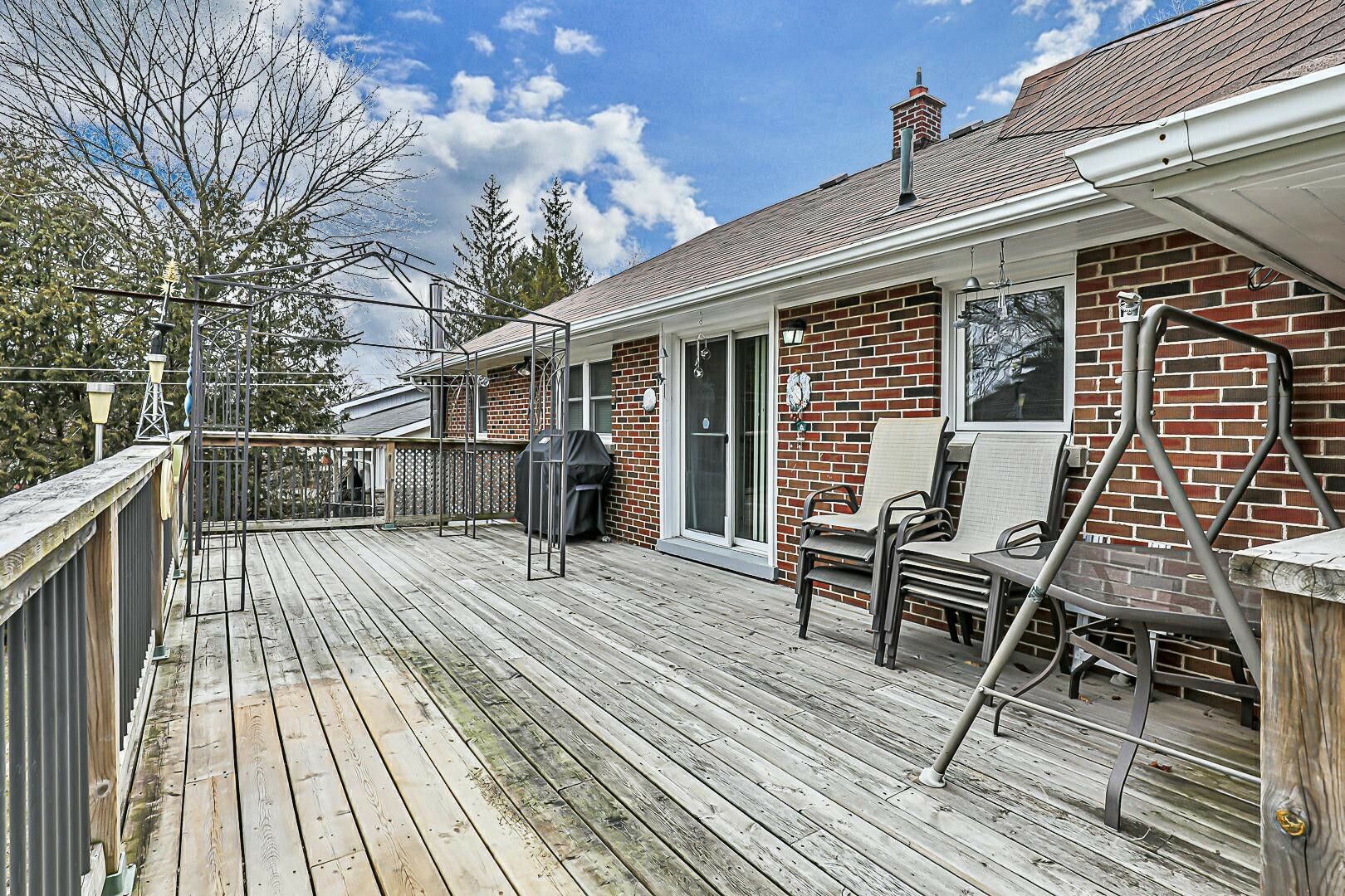 Offering 3 bedrooms, kitchen with walk out to large deck overlooking beautiful backyard. Finished basement with sep entrance through large two car garage. Hardwood on main floor.