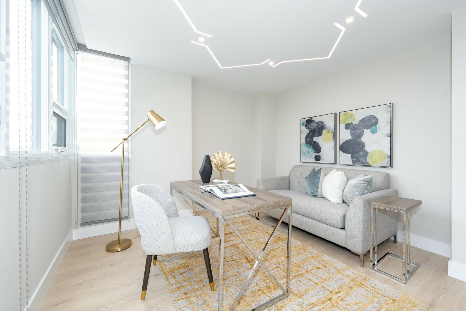 Stunning, Bright, Fully Renovated and Remodelled W/Impeccable Quality 2 Brm + Office Residence (Can Be Converted To 3rd Bedroom)!! The Layout You Dream Of, Custom Kitchen W/ Centre Island, Open L/Rm W/Fire Place, Unique Decorative Lighting, TV Unit & B/I Shelves. Specious Sun Filled Open Concept Office. Luxurious Finishes Incl: Quartz Counter Tops, Splash, Pot Lights, Hidden Decorative Lighting, Top Laminate Flrs, Custom Blinds, Mirror/Glass Sliding Drs. Come, See And Compare - Just Spacious And Beautiful!! Five Stars Amenities Include Tennis Courts, Fitness Centre, Indoor/Outdoor Pools And More. 24-Hour Security. Steps To Parks, Shopping&Transit.
