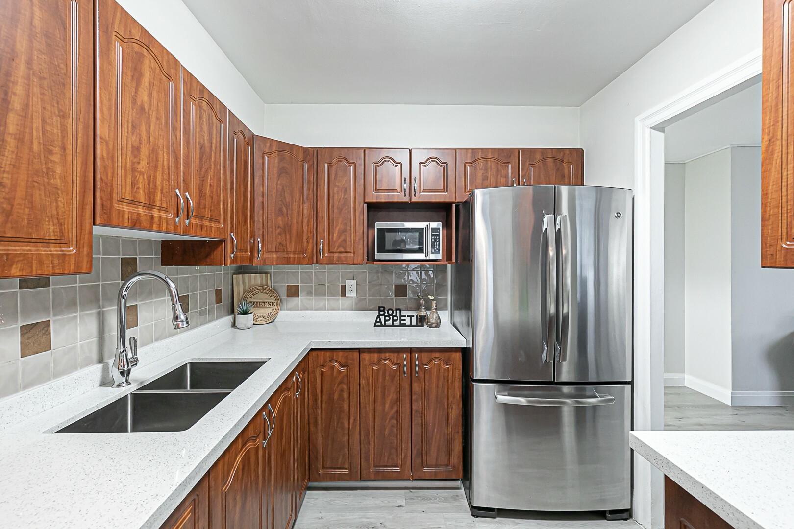 Welcome Home! This bright and spacious 3 bed, 2 bath condo has been tastefully renovated in 2020 with new vinyl flooring, new doors, baseboards and trim, new light fixtures, upgraded electrical panel, quartz countertops in kitchen and bathrooms and a fresh coat of paint throughout.