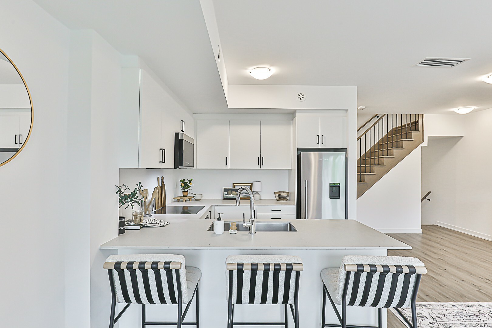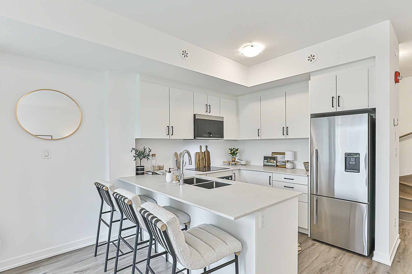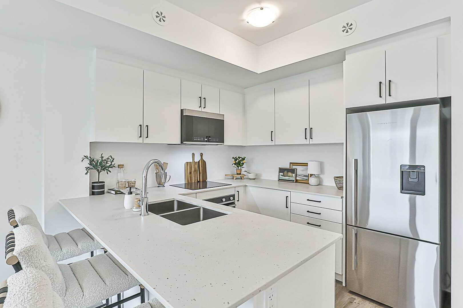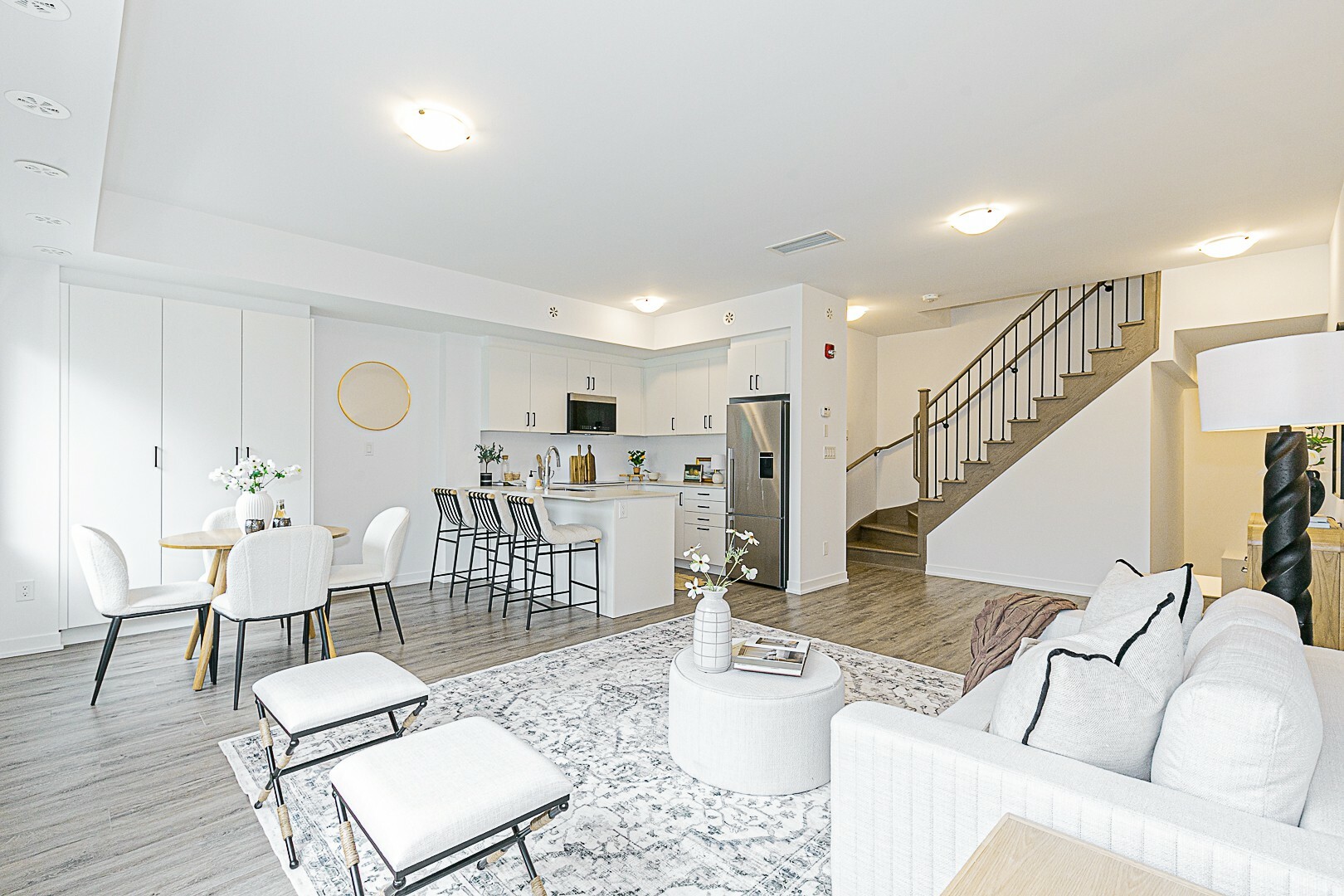 Stylish Marquette Urban Townhouse | 2 Bed + Den | $62K in Upgrades. Experience elevated urban living in this move-in ready Marquette townhouse offering 1,344 sq ft of thoughtfully designed space. This modern home features 2 spacious bedrooms, a versatile den, and 2 full bathrooms perfect for professionals, small families, or those seeking a smart investment. Soaring 9-foot ceilings and over $62,000 in premium upgrades set this home apart. Enjoy a chef-inspired kitchen complete with high-end Fisher & Paykel stainless steel appliances, Fridge and Built-in oven, cooktop, Bosch Built-in Dishwasher With Caesarstone Countertop. Oak Staircases with Wrought Iron Pickets and Engineered Vinyl Flooring Throughout. Owned - One Underground Parking Spot and One Locker. Step outside to your expansive 419 sq ft private terrace ideal for entertaining or relaxing in style. Conveniently located in a quiet court setting, you're just minutes from transit, shops, schools, parks, restaurants, and major highways - combining peaceful living with unbeatable access to city amenities. Move in ready. A must see!