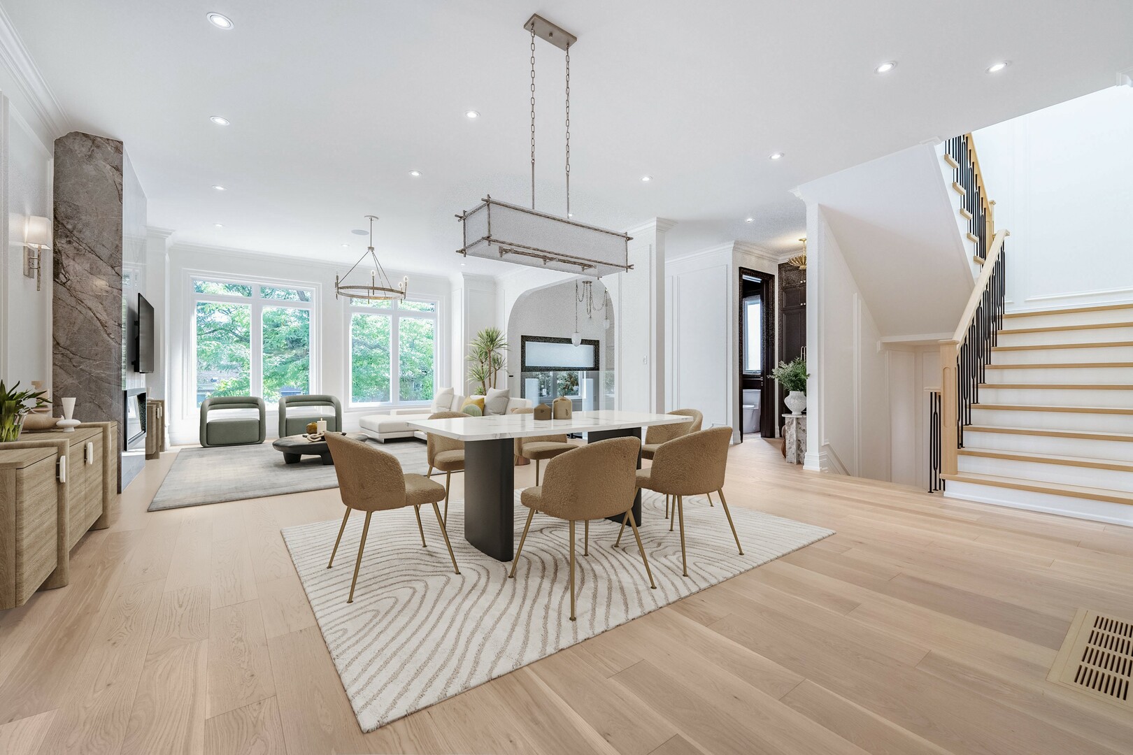 Welcome To Exquisite Newly Built Custom Home By Tan Interiors, Offering 5,500 SqFt Of Luxurious Living Space. This Stunning Property Features 4 Spacious Bedrooms, Each With Its Own Ensuite Baths, and 2 Additional Bedrooms and 2 Baths In The Fully Finished Walk-out Basement. The Main Floor Boasts 10 Ft Ceilings and Second Floors 9 Ft Ceilings While The Basement Impresses With Soaring 11 Ft Ceilings. The Gourmet Kitchen Is A Chef's Dream, Featuring TopOf-The-Line Appliances, Custom Cabinetry, 2 Laundry Rooms and Impeccable Attention To Detail. The Open-Concept Living and Dining Areas Are Perfect For Entertaining, Highlighted By Elegant Finishes and Designer Touches Throughout. The Walk-Out Basement Includes A 2nd Kitchen and A Cozy Family Room, Ideal For Guests Or Extended Family. Luxurious Finishes Adorn Every Corner Of This Home, From High-End Flooring To Premium Fixtures. The Expansive Windows Provide Abundant Natural Light, Creating A Warm and Inviting Atmosphere. This Home Combines Modern Elegance With Unparalled Comfort, Making It The Perfect Retreat For Discerning Buyers.