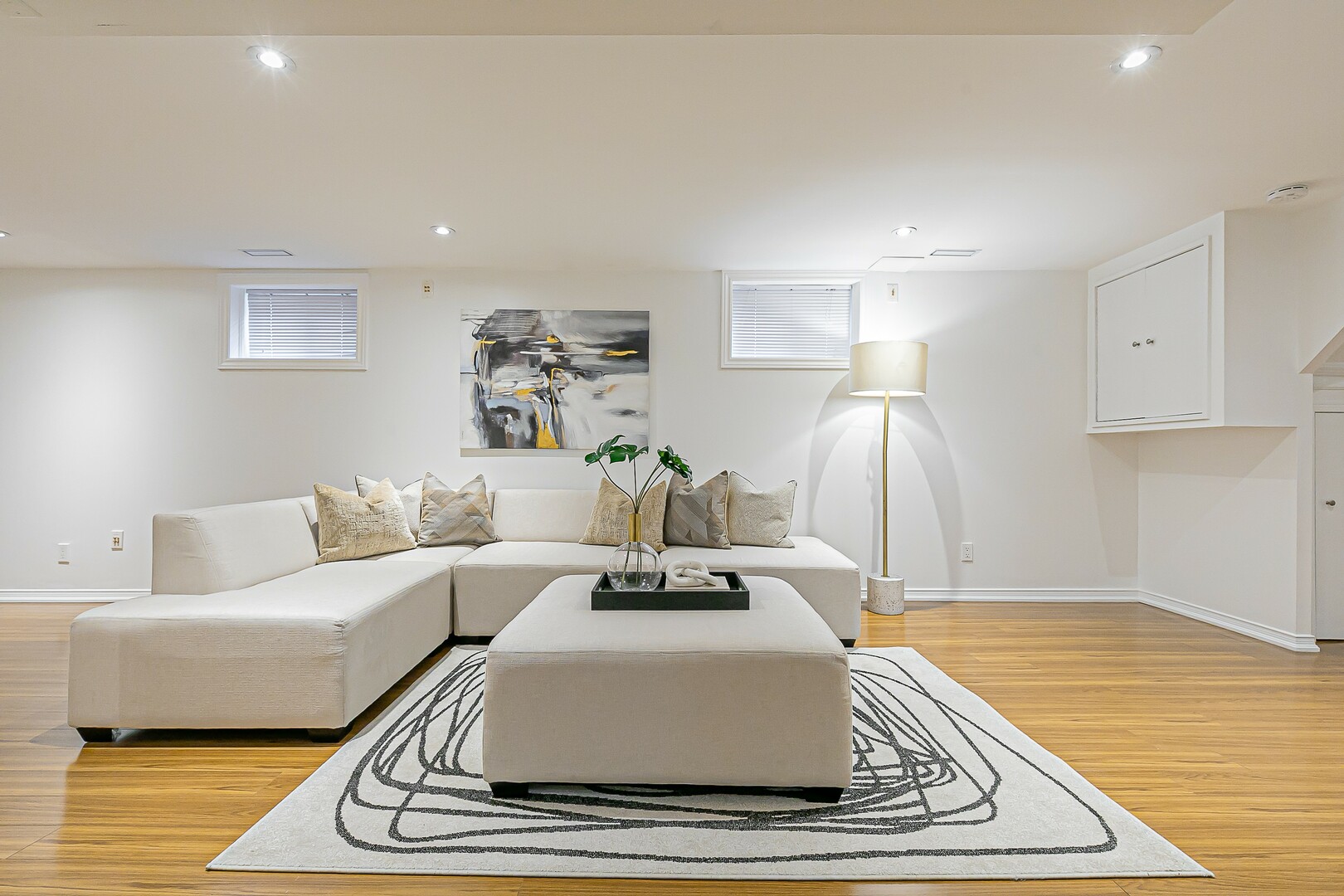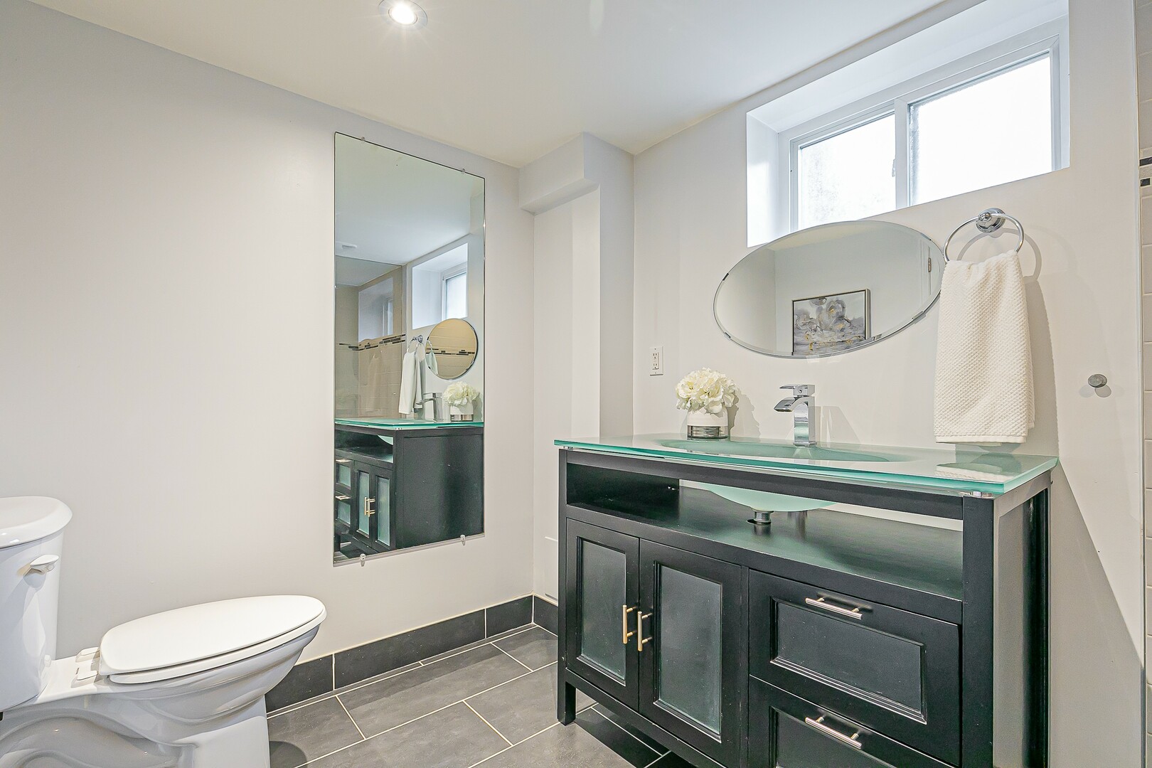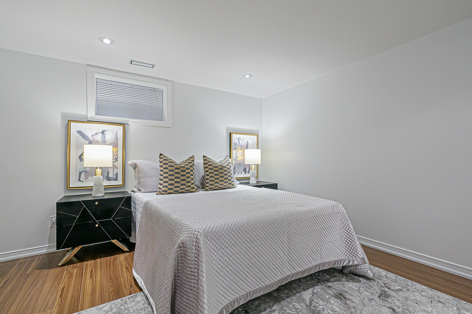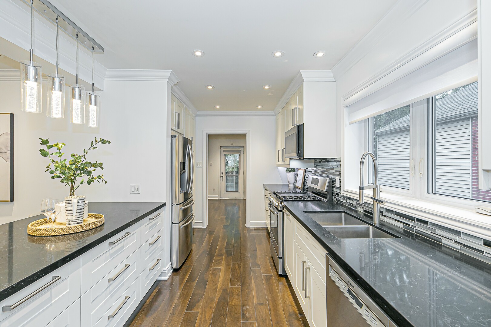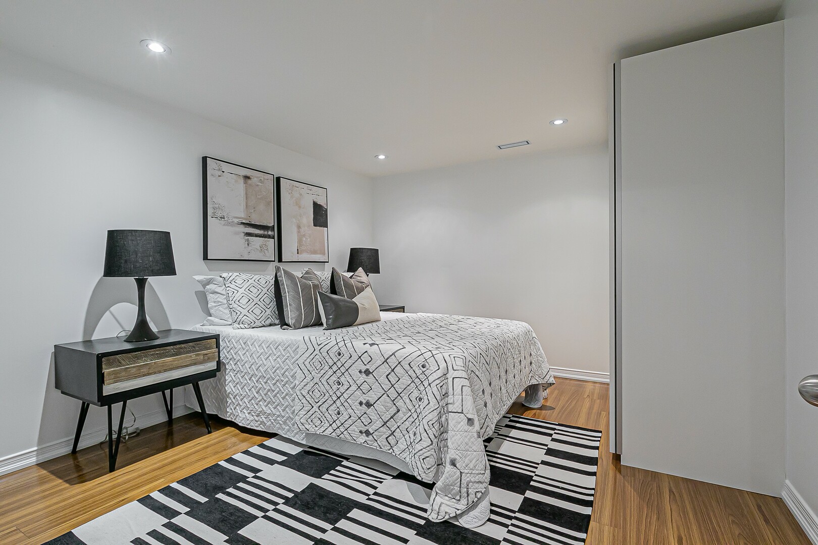 Welcome to this beautifully updated bungalow, offering the perfect blend of comfort and modern design. The main floor features a spacious primary bedroom complete with a private ensuite, ideal for relaxation and convenience. Gleaming hardwood floors flow throughout the home enhance its warmth and style. The stunning kitchen boasts a large island, perfect for entertaining and family gatherings. A convenient side entrance leads to a fully finished basement, where you'll find two additional bedrooms, a full washroom, and ample living space. With parking for up to four cars, this property is as practical as it is inviting. Step outside to enjoy a large yard with a deck, perfect for summer barbecues or quiet evenings. Close to all amenities including shopping, schools, parks, and transit, this move-in ready