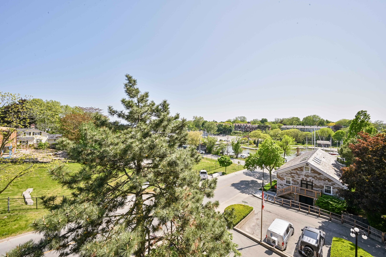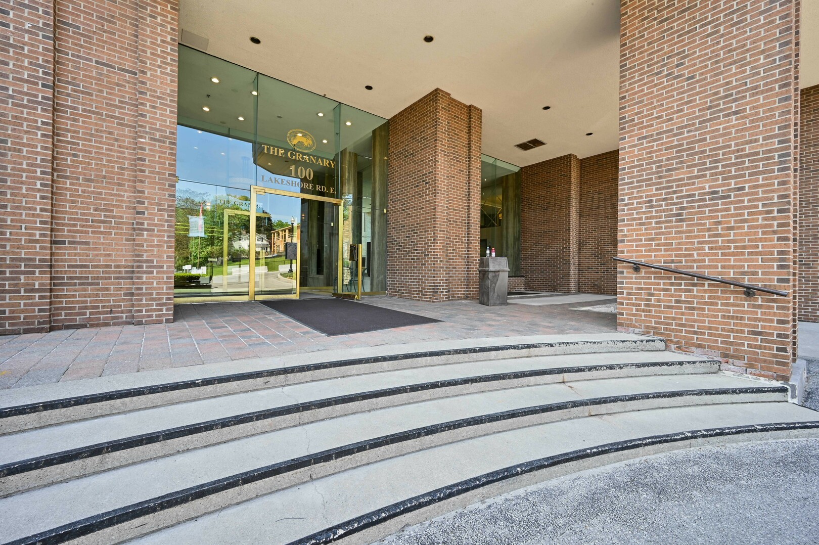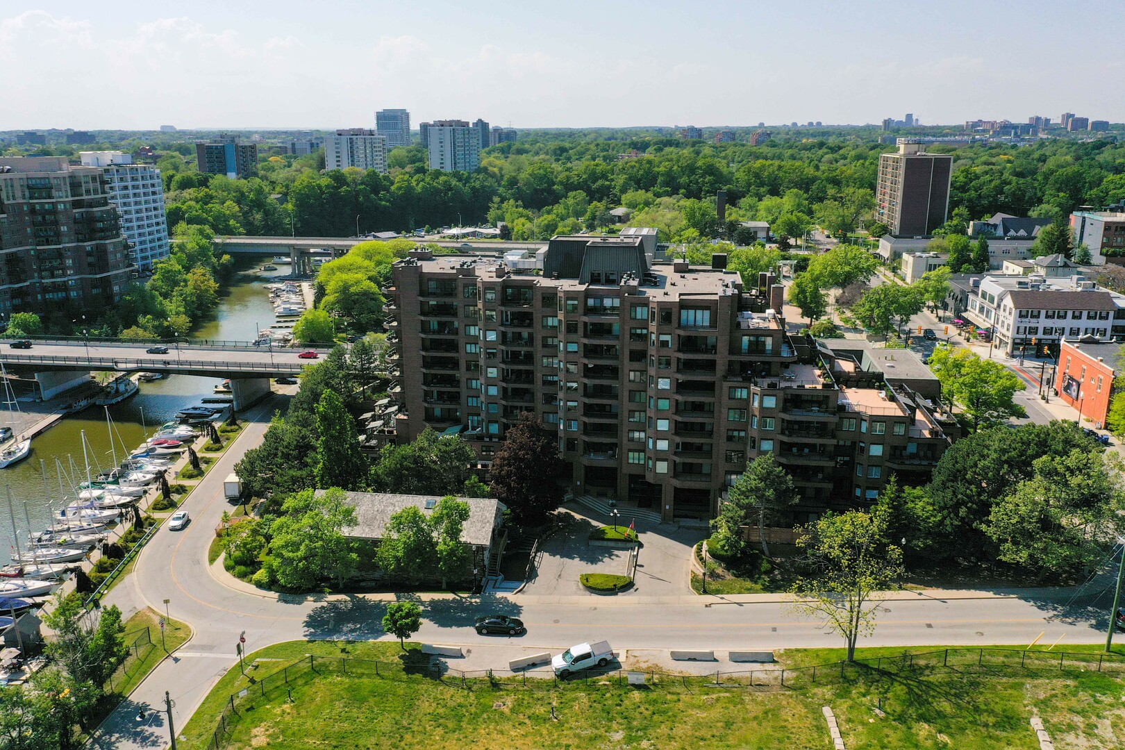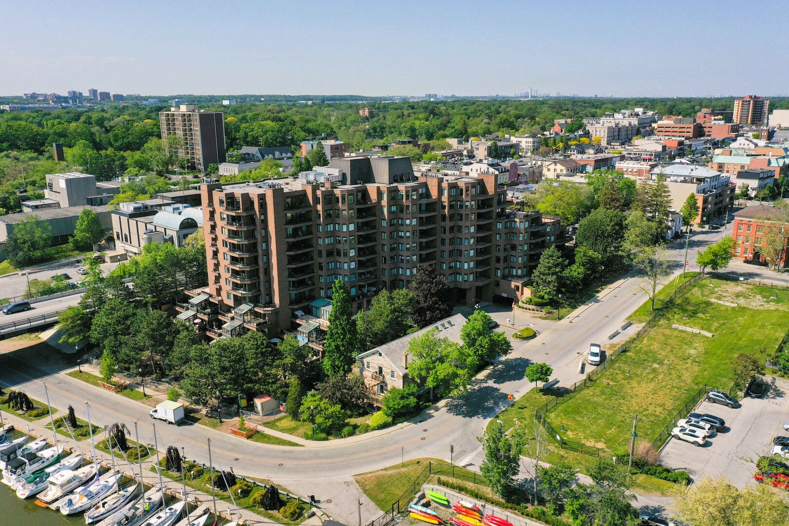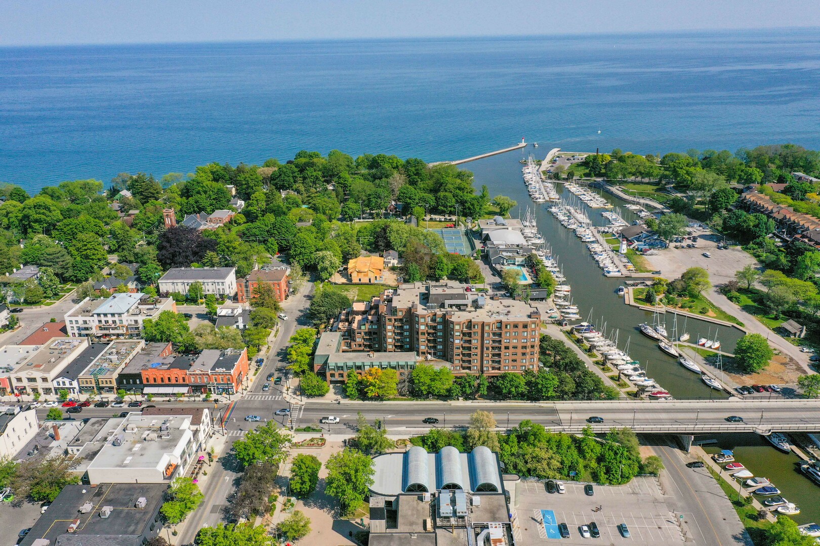 Sophisticated Lake-view suite in Downtown Oakville's ""The Granary"". A highly desirable and sought-after location, this large two bedroom, two bathroom condominium is over 1500 sq ft, spacious and bright, in an unparalleled setting. The sunroom, private balcony, and the living room all boast gorgeous South facing views over Lake Ontario, Old Oakville Heritage District and the Harbour Front. Cozy up by the fireplace in the open concept Living/Dining room. Includes a designated underground parking space, ample visitor parking, a large storage locker, indoor pool and sauna facility, exercise room, 24 hour concierge/security, guest suites, and party room. Stroll to the Lake, Library, Theatre, Museum, Oakville Club, Boutiques and Restaurants all within minutes. The vibrant atmosphere of Downtown Oakville is literally right outside your doorstep.