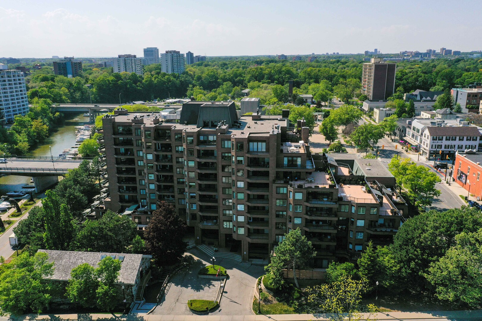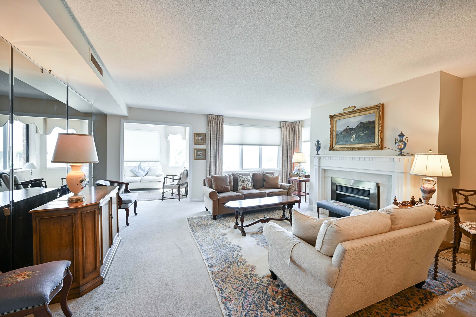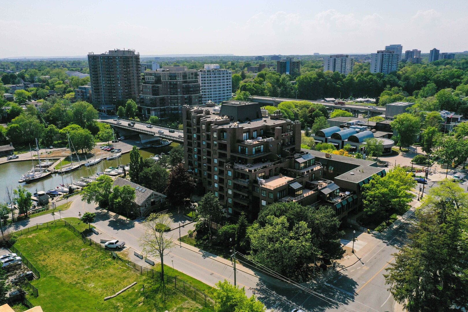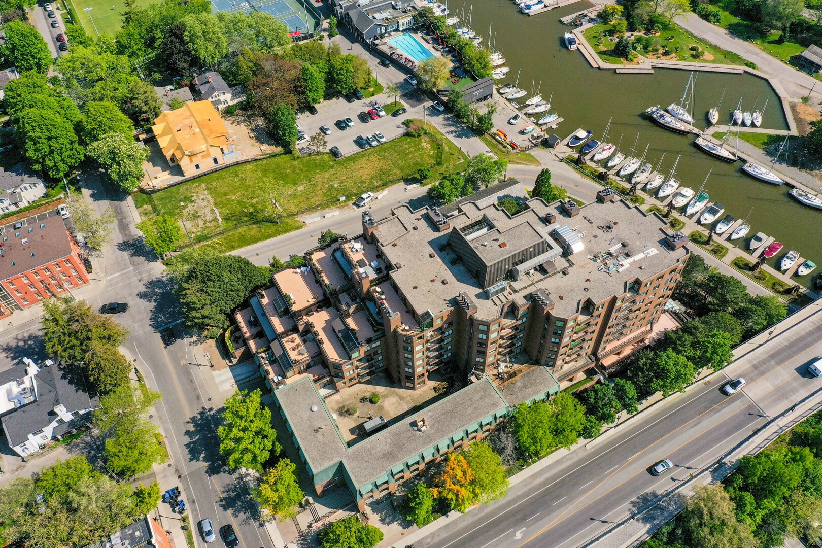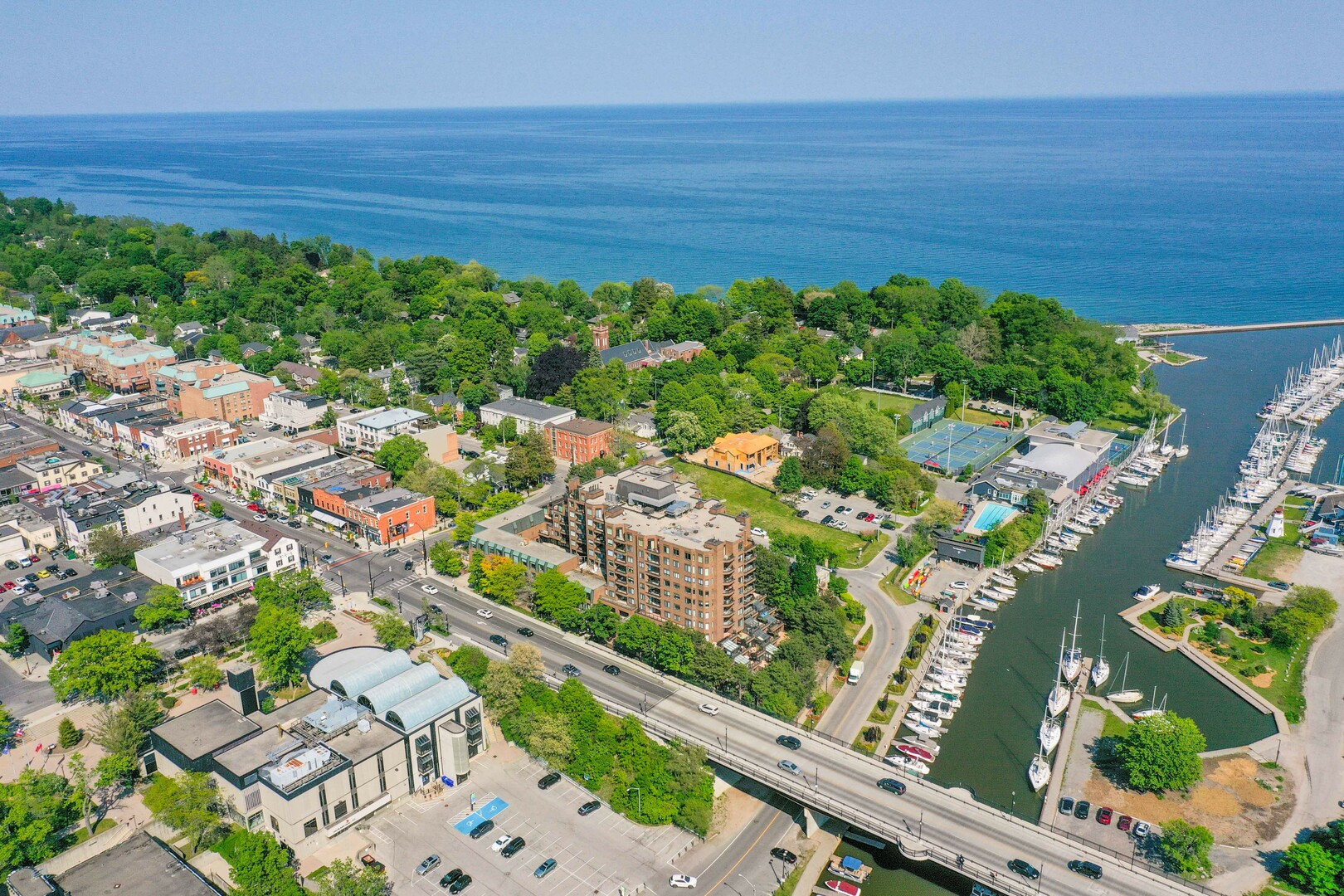 Sophisticated Lake-view suite in Downtown Oakville's ""The Granary"". A highly desirable and sought-after location, this large two bedroom, two bathroom condominium is over 1500 sq ft, spacious and bright, in an unparalleled setting. The sunroom, private balcony, and the living room all boast gorgeous South facing views over Lake Ontario, Old Oakville Heritage District and the Harbour Front. Cozy up by the fireplace in the open concept Living/Dining room. Includes a designated underground parking space, ample visitor parking, a large storage locker, indoor pool and sauna facility, exercise room, 24 hour concierge/security, guest suites, and party room. Stroll to the Lake, Library, Theatre, Museum, Oakville Club, Boutiques and Restaurants all within minutes. The vibrant atmosphere of Downtown Oakville is literally right outside your doorstep.
