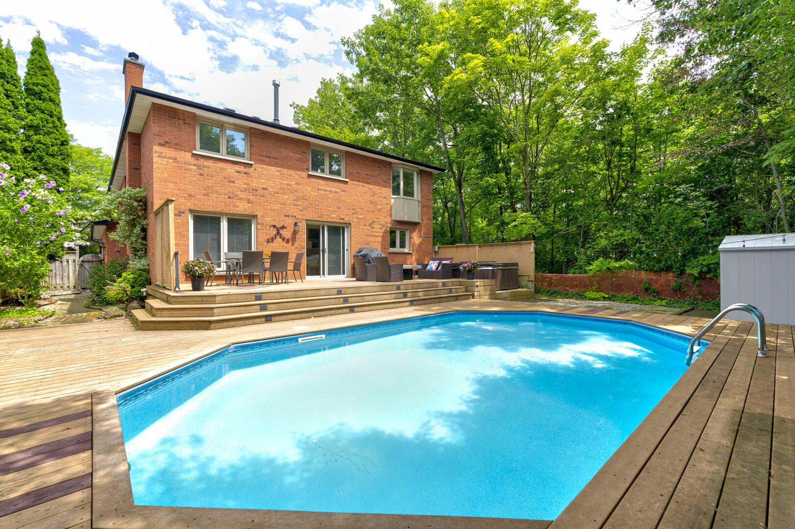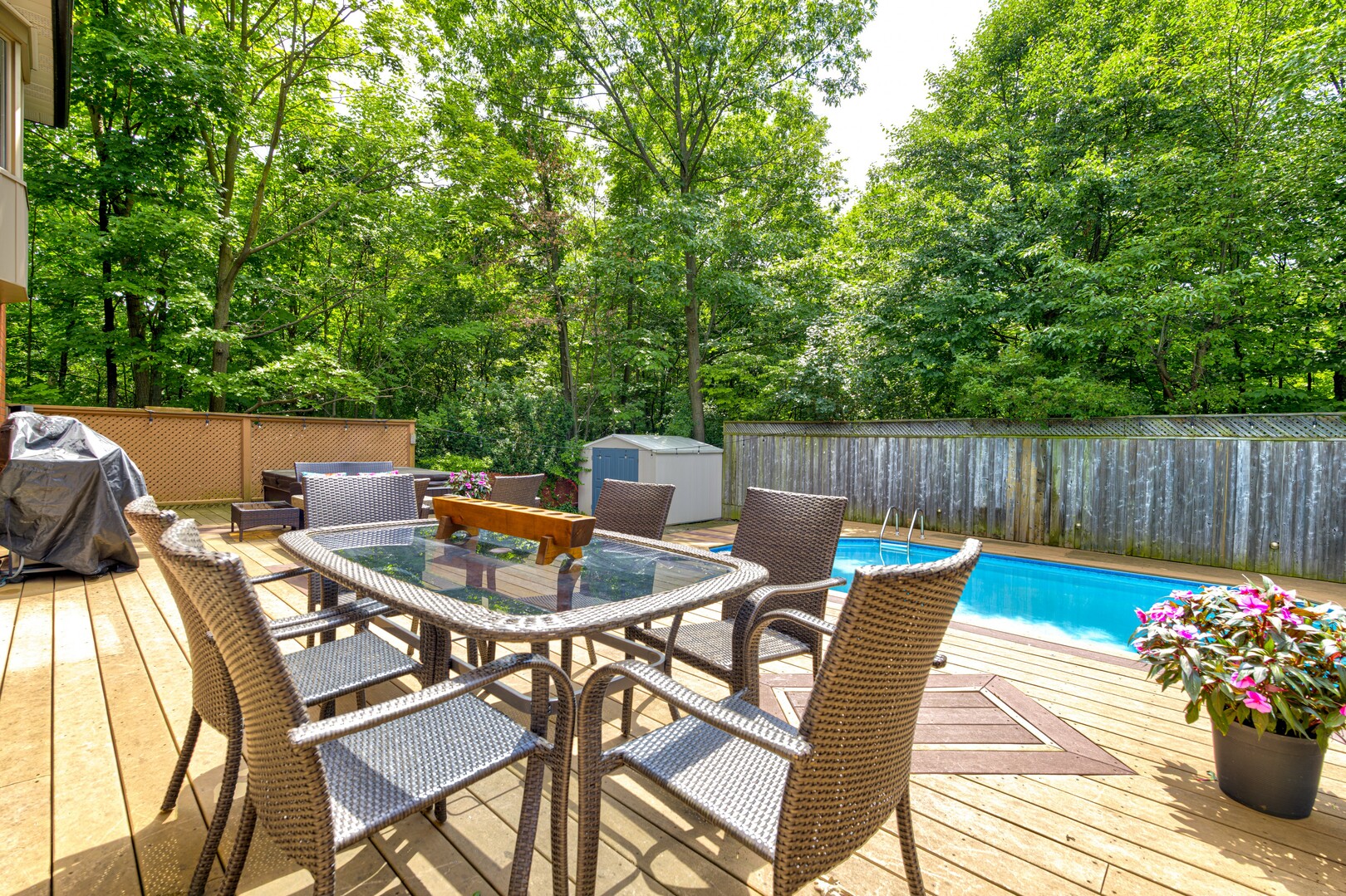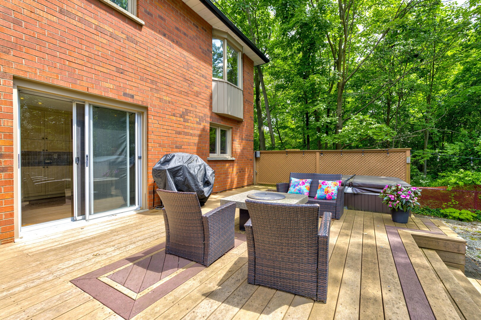 Private backyard oasis! This luxury 4 + 2 Bed, 4 +1 bath home backs on and is beside Oakridge Park with its lush forested walking trails. You will love staying home surrounded by nature. Enjoy swimming in the pool, relaxing in the hot tub or on the beautiful low maintenance composite deck. Inside you will enjoy the chef's dream kitchen with solid wood cabinets, some sparkling glass door cabinets, high-end appliances like Sub-Zero fridge, granite counters, built-in wall ovens and a massive island. Main floor has hardwood throughout, cozy living room with wood burning fireplace, large dining room, convenient main floor office, 2 piece powder room and mud/ laundry room with side door and garage access. Second floor also has hardwood throughout, huge primary bedroom with double closets, beautifully updated 5 piece bathroom with stand alone soaker tub. There are 3 other good sized bedrooms. One bedroom has updated 3 piece ensuite bathroom and there is a gorgeous updated main bathroom with double sinks and glass shower. The basement is completely finished with spacious family room with gas fireplace. There are 2 more very large bedrooms and a 3 piece bathroom.Step outside and you're right next to a forest walk, running, biking trail. Located in desirable River Oaks neighourhood with top ranked public/ private schools, easy highway access and close to shopping