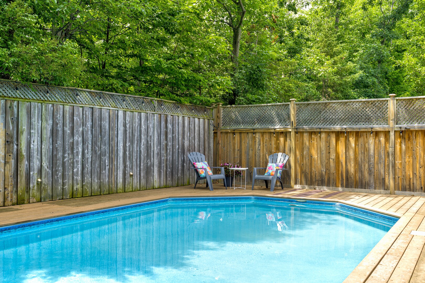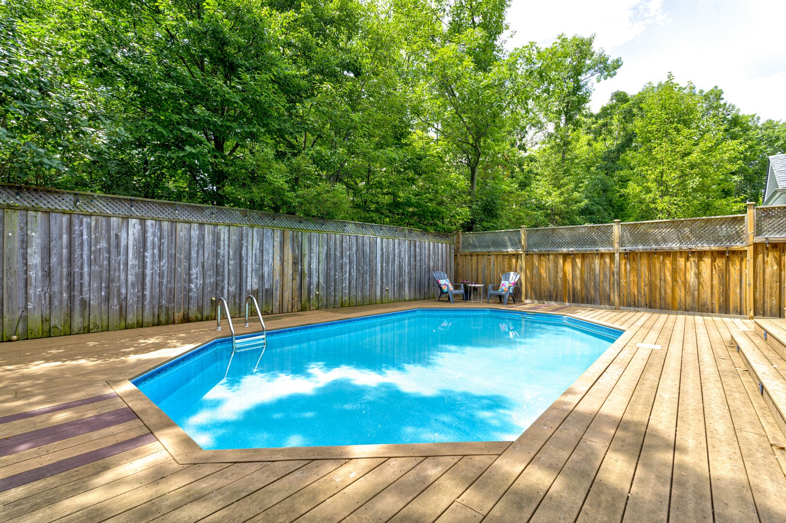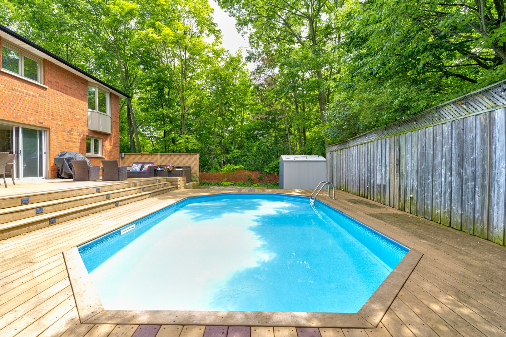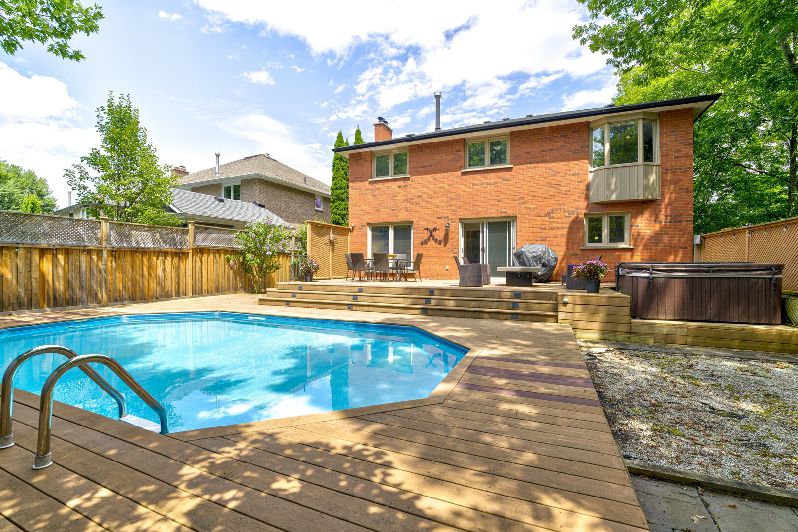 Private backyard oasis! This luxury 4 + 2 Bed, 4 +1 bath home backs on and is beside Oakridge Park with its lush forested walking trails. You will love staying home surrounded by nature. Enjoy swimming in the pool, relaxing in the hot tub or on the beautiful low maintenance composite deck. Inside you will enjoy the chef's dream kitchen with solid wood cabinets, some sparkling glass door cabinets, high-end appliances like Sub-Zero fridge, granite counters, built-in wall ovens and a massive island. Main floor has hardwood throughout, cozy living room with wood burning fireplace, large dining room, convenient main floor office, 2 piece powder room and mud/ laundry room with side door and garage access. Second floor also has hardwood throughout, huge primary bedroom with double closets, beautifully updated 5 piece bathroom with stand alone soaker tub. There are 3 other good sized bedrooms. One bedroom has updated 3 piece ensuite bathroom and there is a gorgeous updated main bathroom with double sinks and glass shower. The basement is completely finished with spacious family room with gas fireplace. There are 2 more very large bedrooms and a 3 piece bathroom.Step outside and you're right next to a forest walk, running, biking trail. Located in desirable River Oaks neighourhood with top ranked public/ private schools, easy highway access and close to shopping