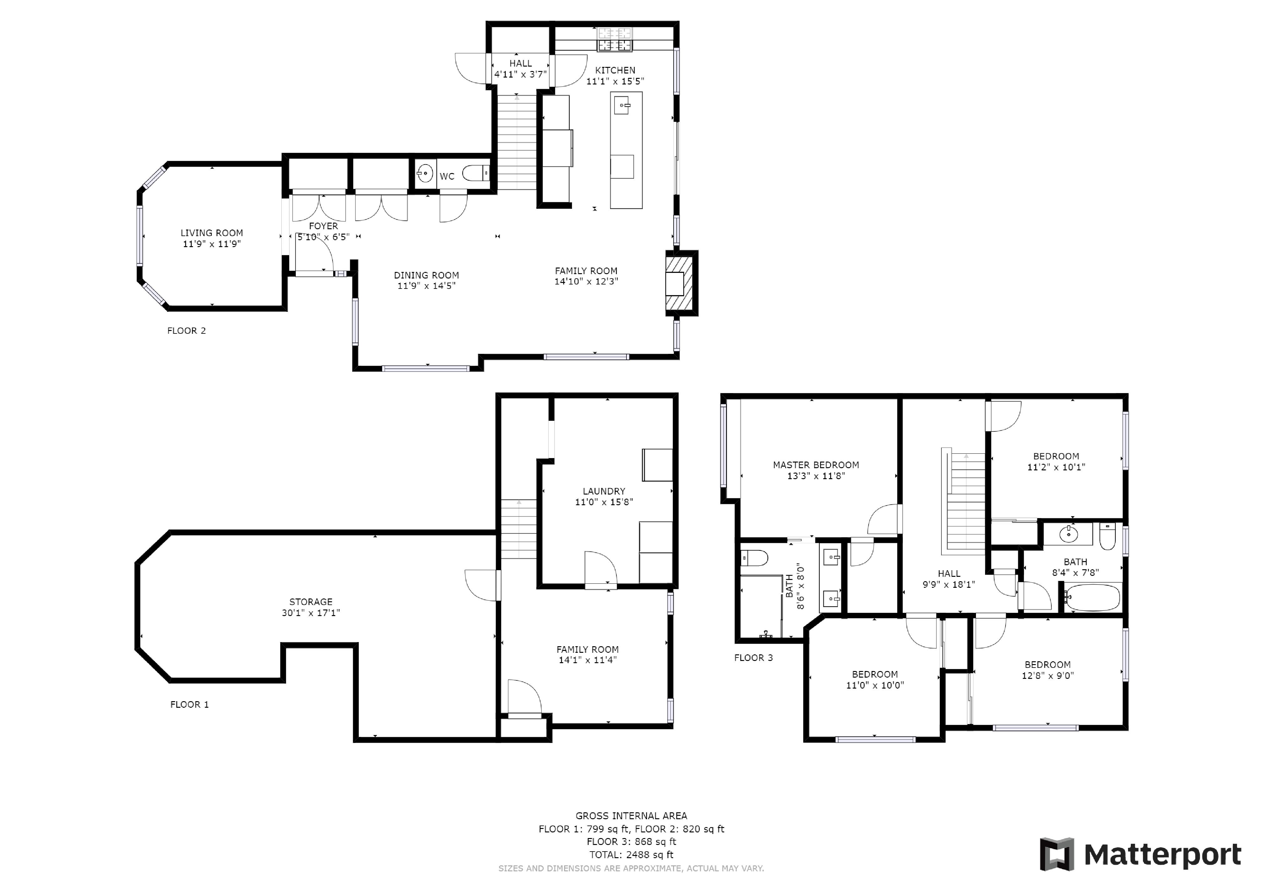 | Living room | Ground level | 11' 8'' x 11' 8'' |