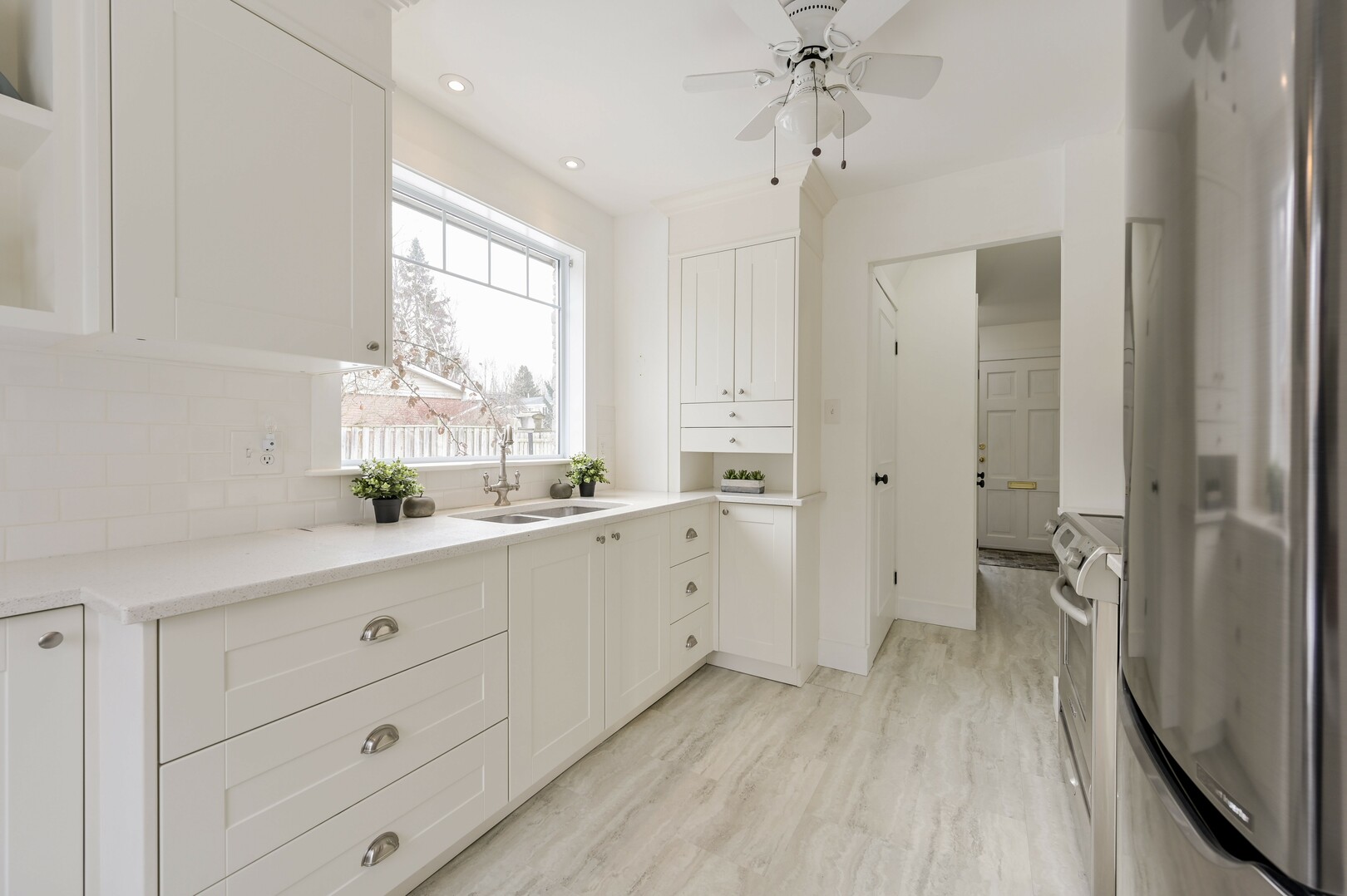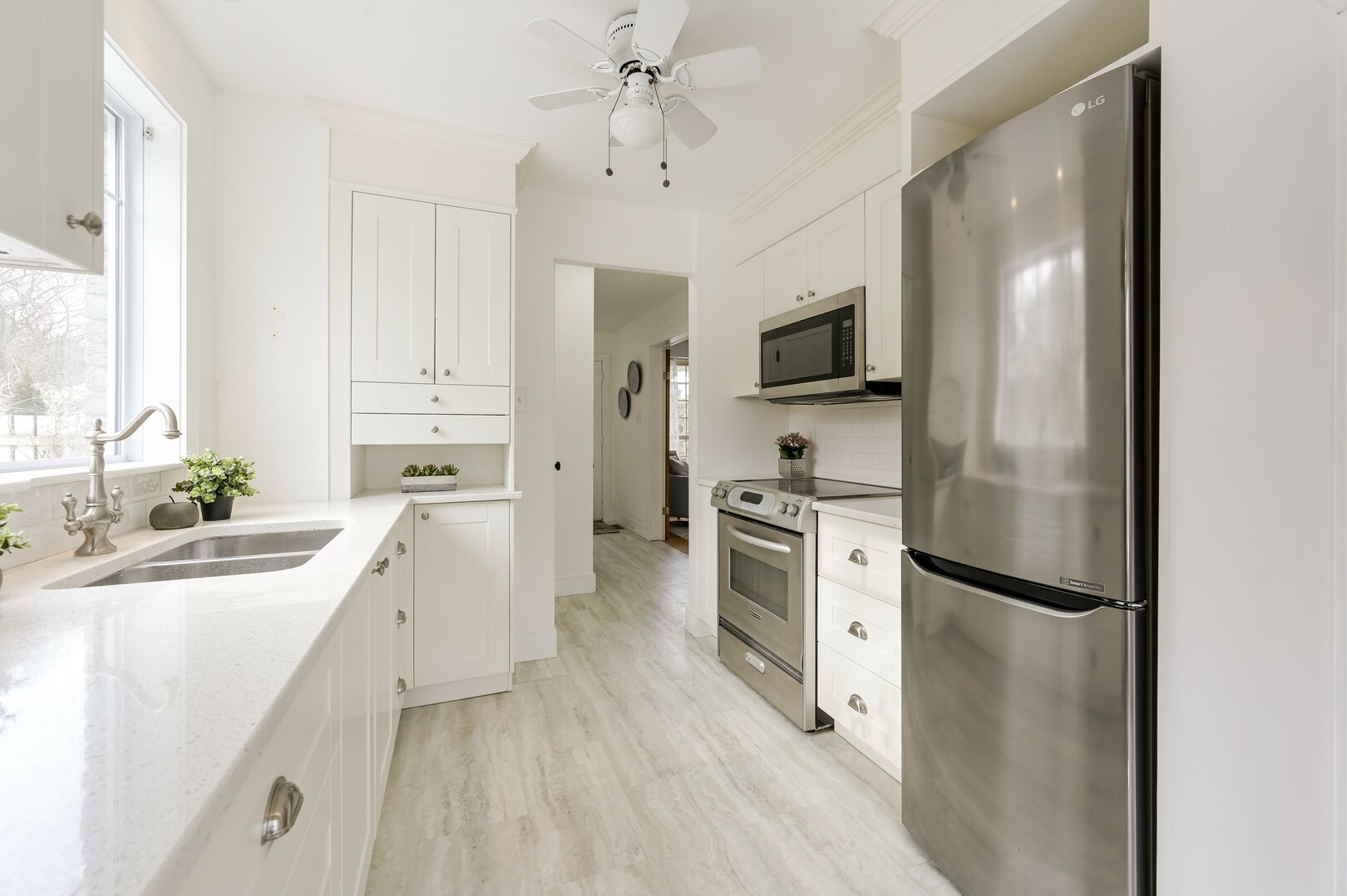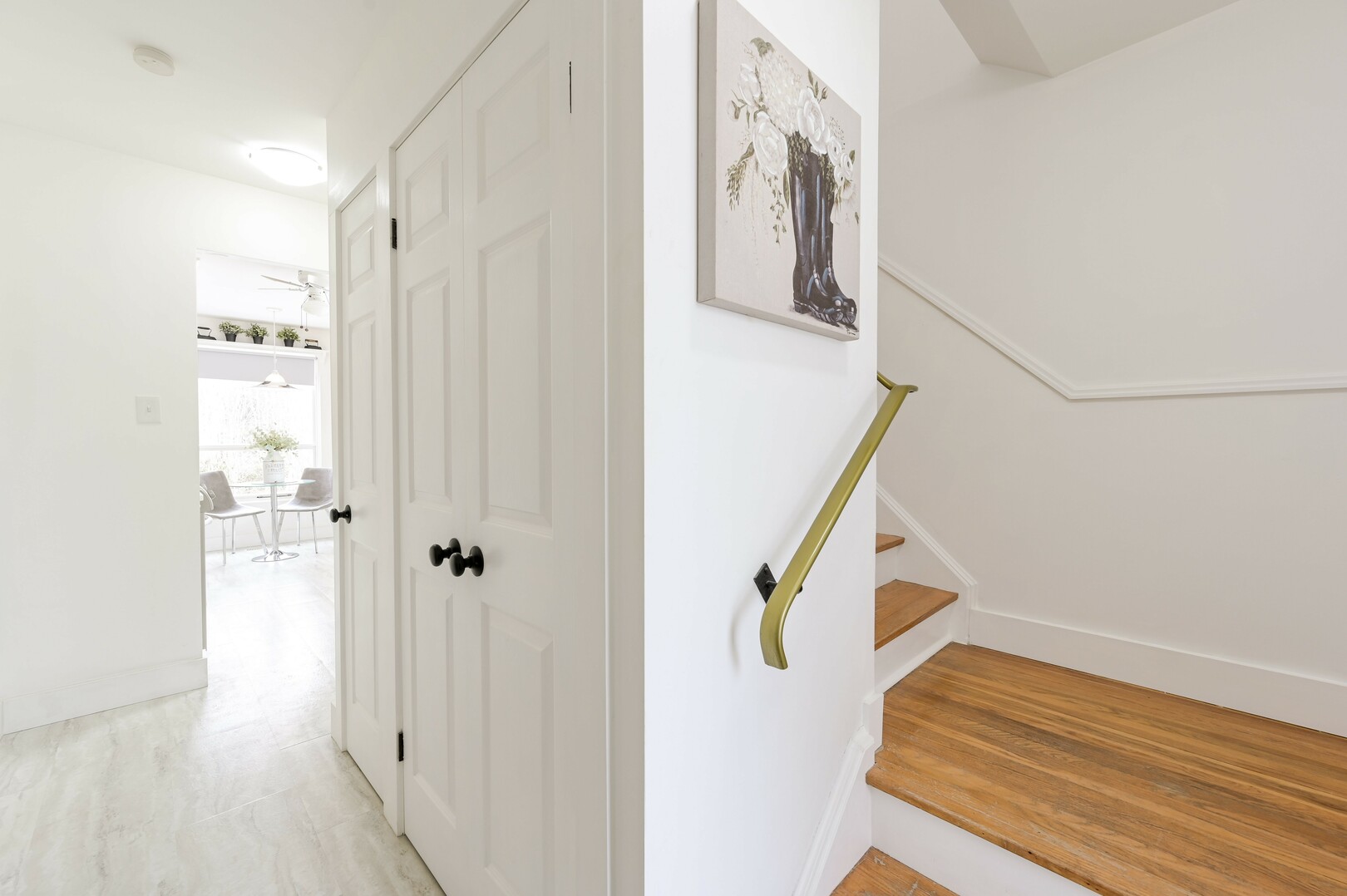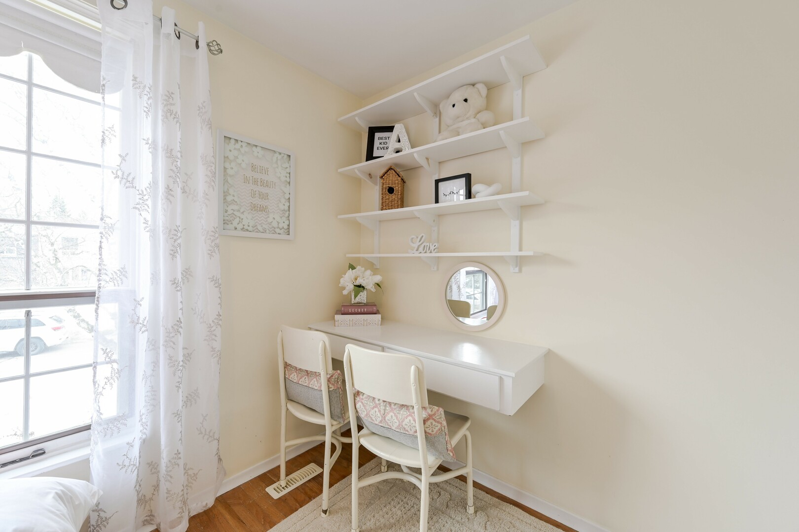 This home is a gem, it may be a semi, but it feels like a detached. Privacy from every angle, including a private driveway not connected to a neighbour. From the moment you walk in you will be amazed at all this home has...huge bright windows, and a beautiful view from every one. The entrance which has not only a coat closet but a convenient broom closet, and leads to a beautifully renovated eat in kitchen with quartz countertops and tiled backsplash. The large living room is open to the dining room and has been freshly painted and has original hardwood floors. The hardwood floors continue to the entire second floor into all 4 bedrooms. The master boasts double closets. The finished basement has the perfect layout, with a separate side entrance, a rec room with a built in shelving unit and pot lights throughout. A home office convenient 3 piece bath, extensive storage, and large laundry room with a sink completes this lower level. The Gardens in the back and side yards are an oasis, you will feel like you are away at the cottage. New roof 2023, gutters and fascia 2024. New electrical panel 2025.