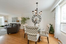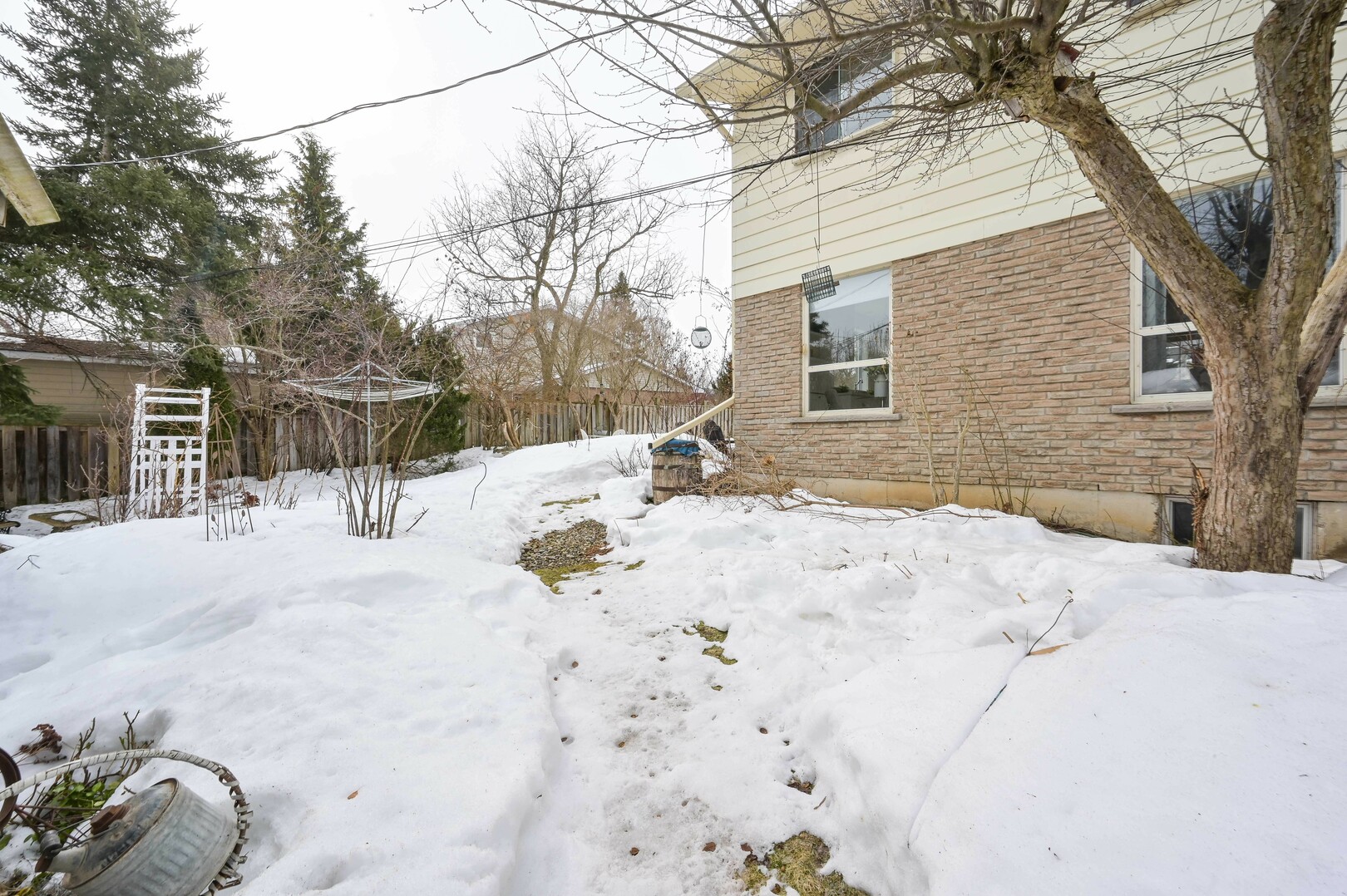 This home is a gem, it may be a semi, but it feels like a detached. Privacy from every angle, including a private driveway not connected to a neighbour. From the moment you walk in you will be amazed at all this home has...huge bright windows, and a beautiful view from every one. The entrance which has not only a coat closet but a convenient broom closet, and leads to a beautifully renovated eat in kitchen with quartz countertops and tiled backsplash. The large living room is open to the dining room and has been freshly painted and has original hardwood floors. The hardwood floors continue to the entire second floor into all 4 bedrooms. The master boasts double closets. The finished basement has the perfect layout, with a separate side entrance, a rec room with a built in shelving unit and pot lights throughout. A home office, convenient 3 piece bath, extensive storage, and large laundry room with a sink completes this lower level. The Gardens in the back and side yards are an oasis, you will feel like you are away at the cottage. Some of the upgrades are a New roof in 2023, New gutters and fascia in 2024 and a new electrical panel 2025? Make your appointment to day to see your new home!