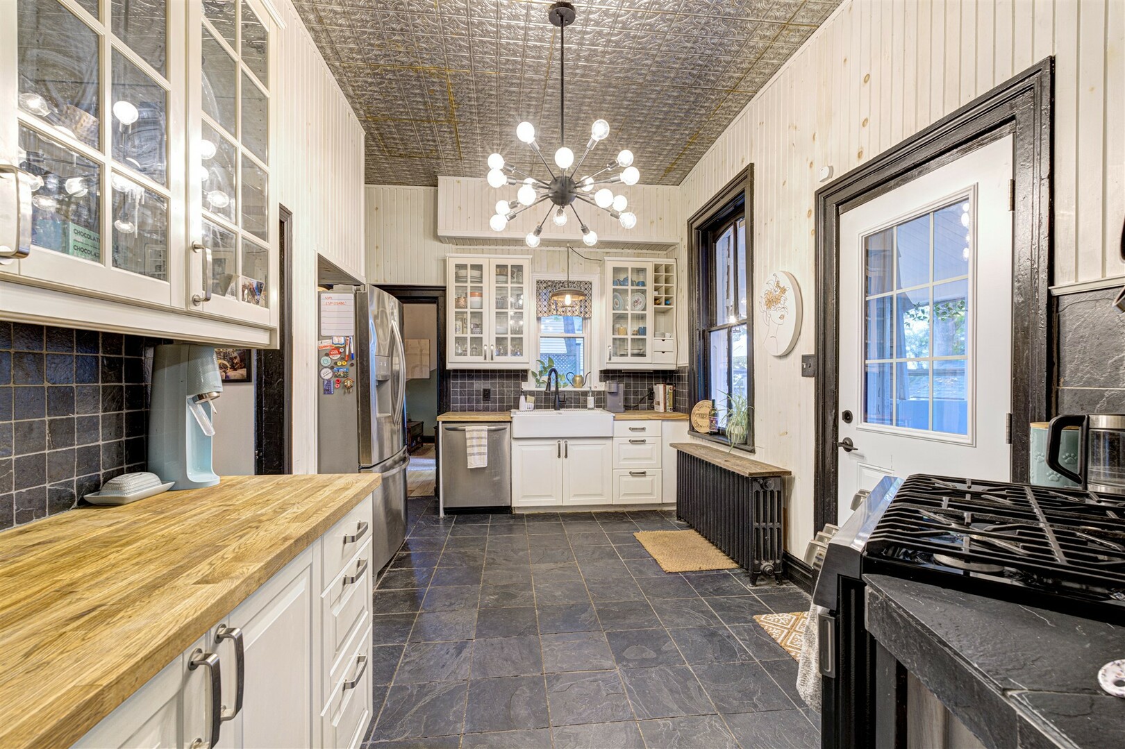 Must see charming bungalow with tons of character and curb appeal. Soaring 10 ft. ceilings with original baseboards throughout this amazing home. Cozy dining room & living room with hardwood floors & wood stove. Family addition offers plenty of space for gatherings with walk out to new large deck area and a beautiful hot tub. Walking distance to schools, shopping, and downtown.