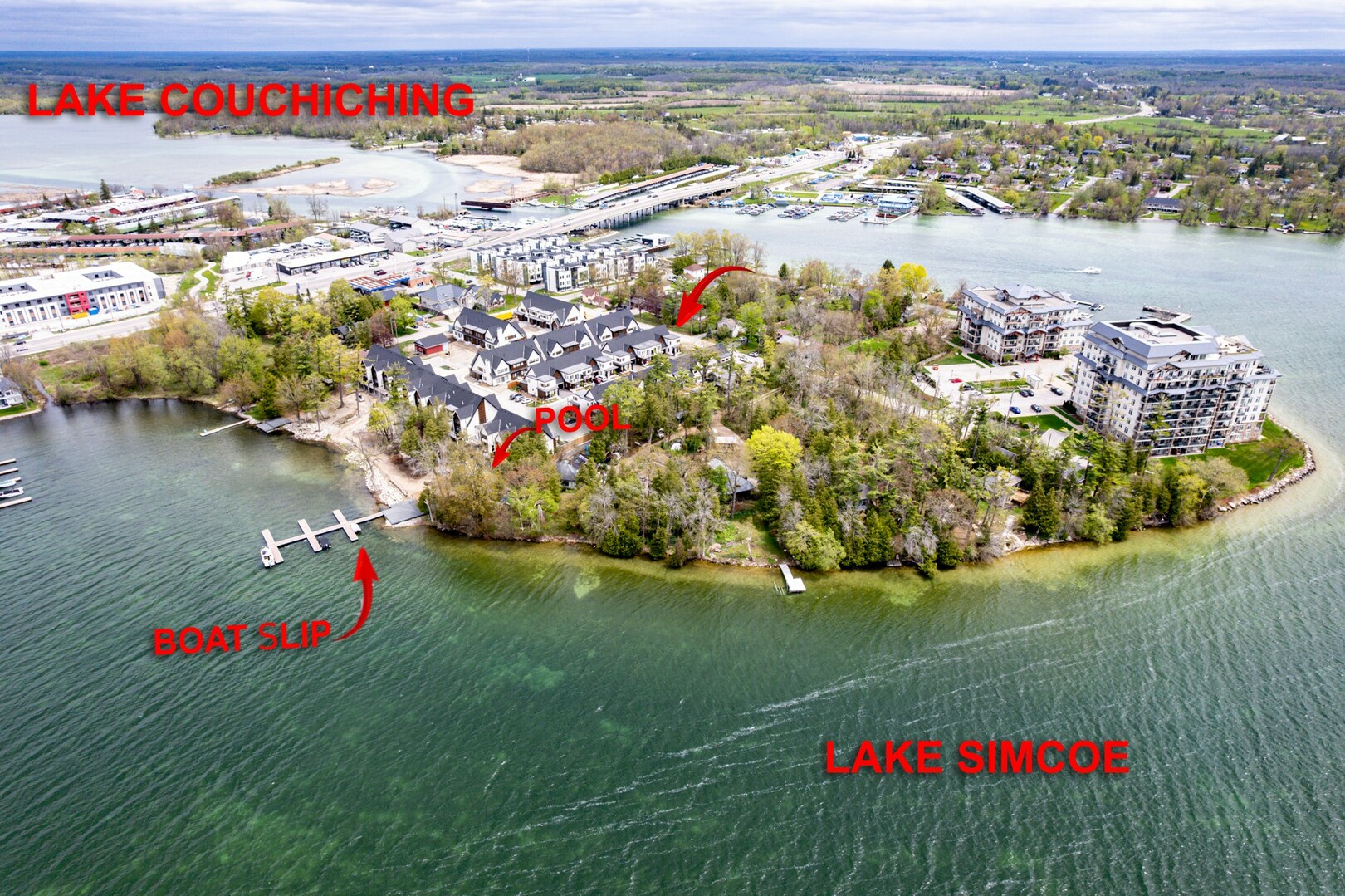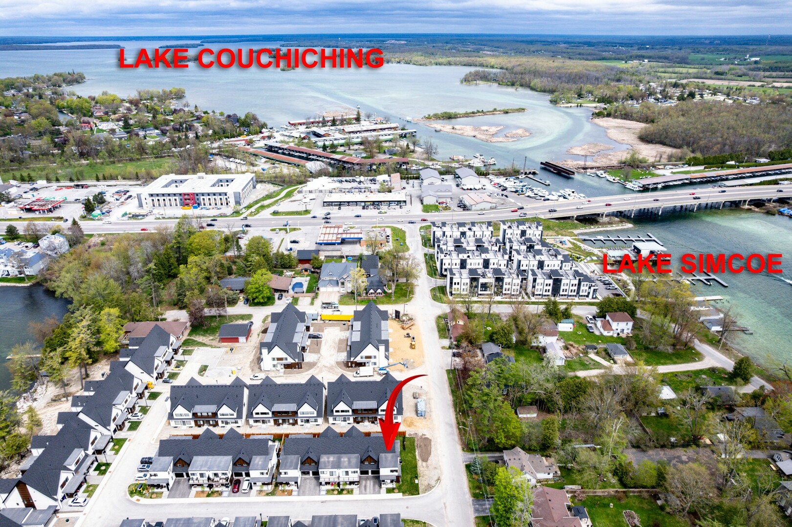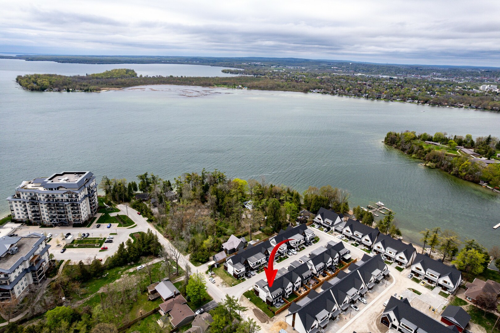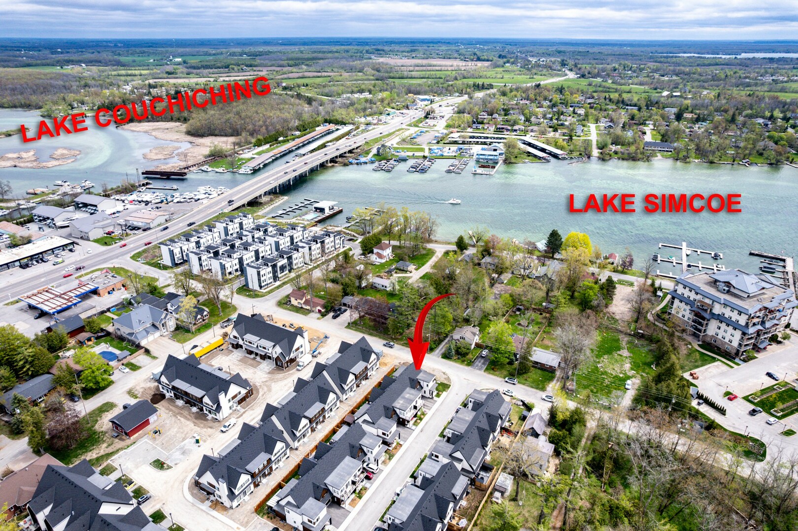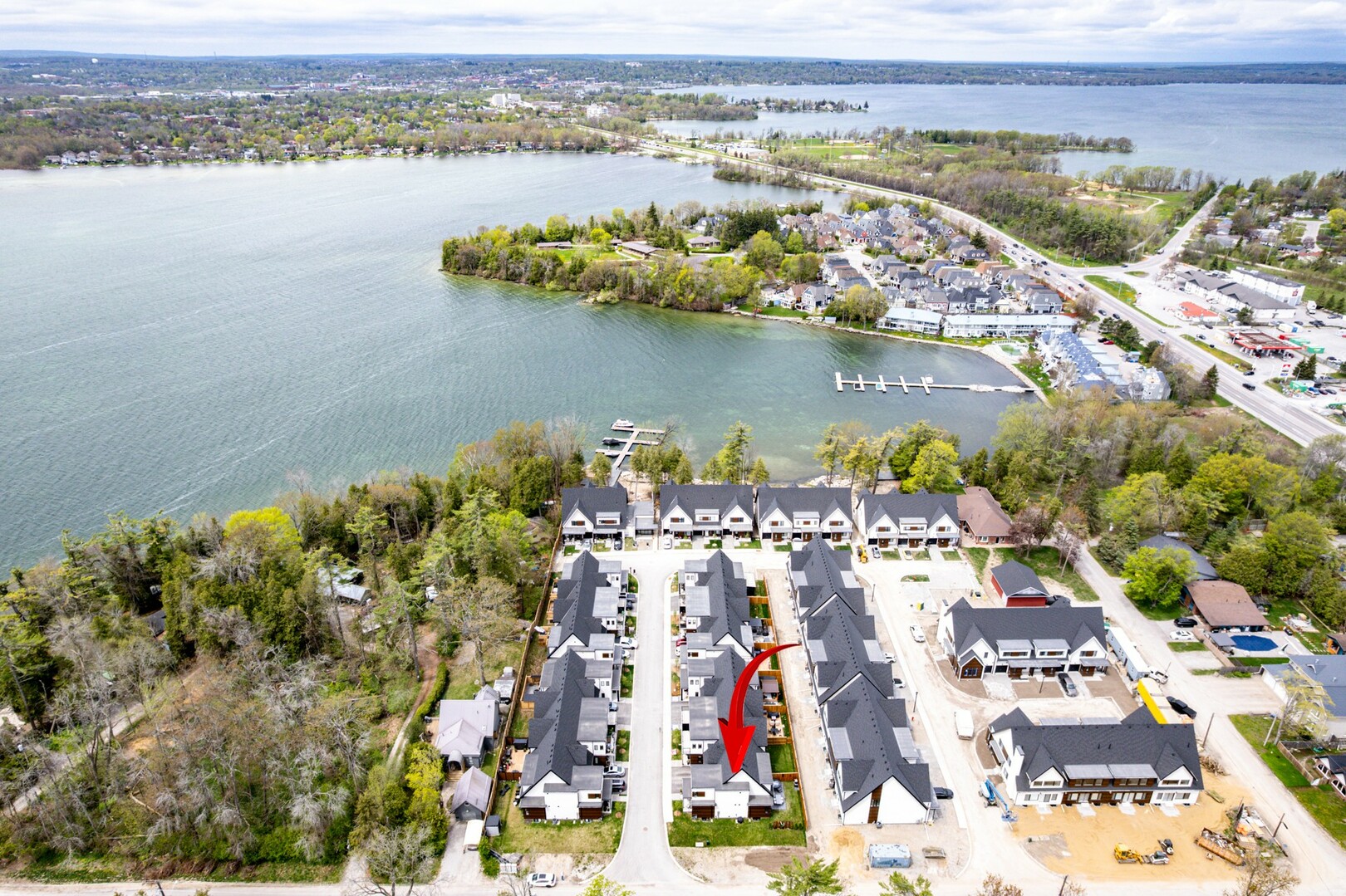 Welcome to Sophies Landing, a highly sought-after gated waterfront community nestled on the shores of Lake Simcoe in the vibrant City of Orillia. Dont miss this incredible opportunity to own in one of the areas most unique and scenic neighborhoods, now offered at a NEW PRICE! This beautifully upgraded end-unit townhouse, 3 spacious bedrooms & 2 full bathrooms, A bright, modern open-concept layout with soaring 18 ft ceilings in the living/dining area flooded with natural light, Main-floor bedroom with access to a luxurious 4-piece bathroom featuring quartz countertops and elegant Spanish tile perfect for guests or multi-generational living, Stylish vinyl cork flooring throughout main and upper levels, Upgraded kitchen with quartz countertops, stainless steel appliances, and a large functional island perfect for entertaining, Enjoy a large fenced backyard with no right-of-way easement (unlike interior units), offering privacy and security. Live the waterfront lifestyle surrounded by nature and convenience, Access to Lake Simcoe with operational boat slips and community dock, A brand-new clubhouse (under construction) with gym, party room and outdoor pool, Direct access to walking & biking trails, nearby parks, and Mara Provincial Park, Minutes to Casino Rama, downtown Orillia, shops, restaurants, and more! Experience luxury, comfort, and peace of mind in this safe, gated community. Book your private viewing today and take advantage of this rare opportunity to own Sophie's Landing before the community is fully completed and prices rise!