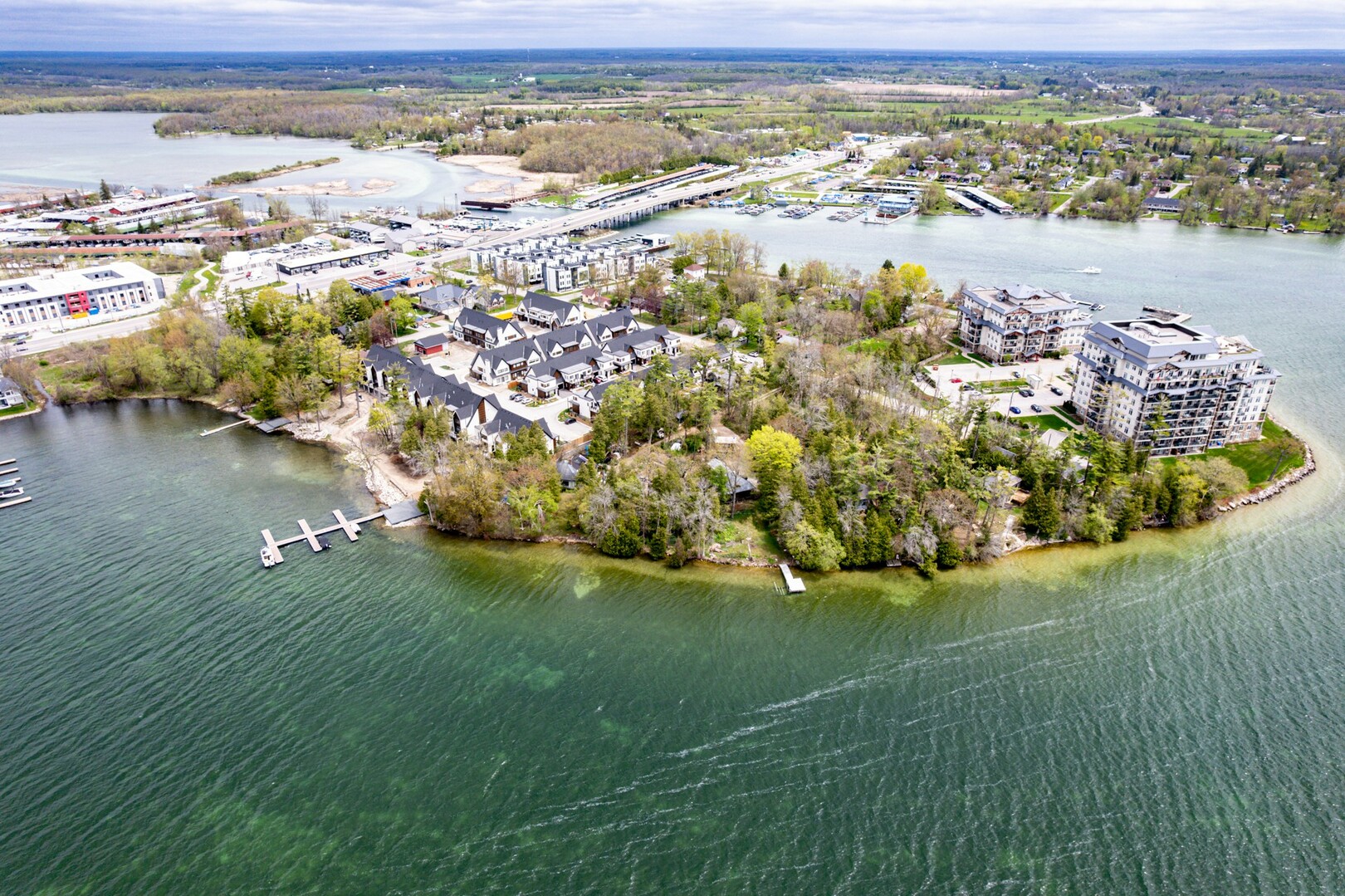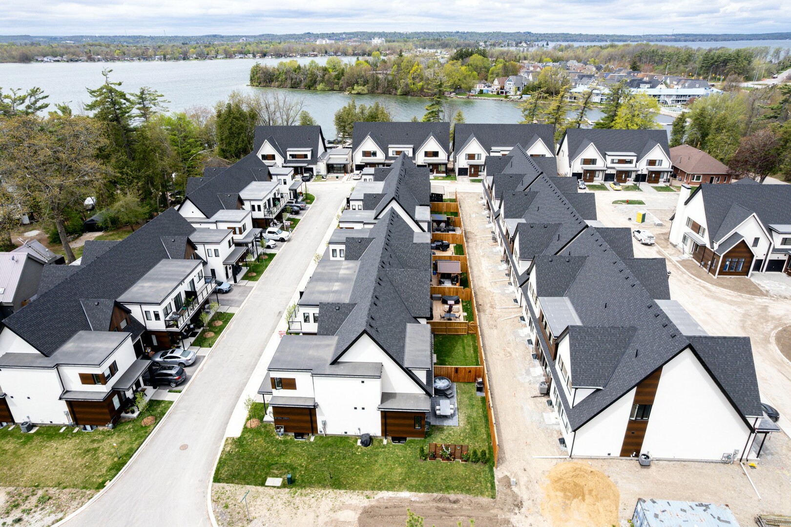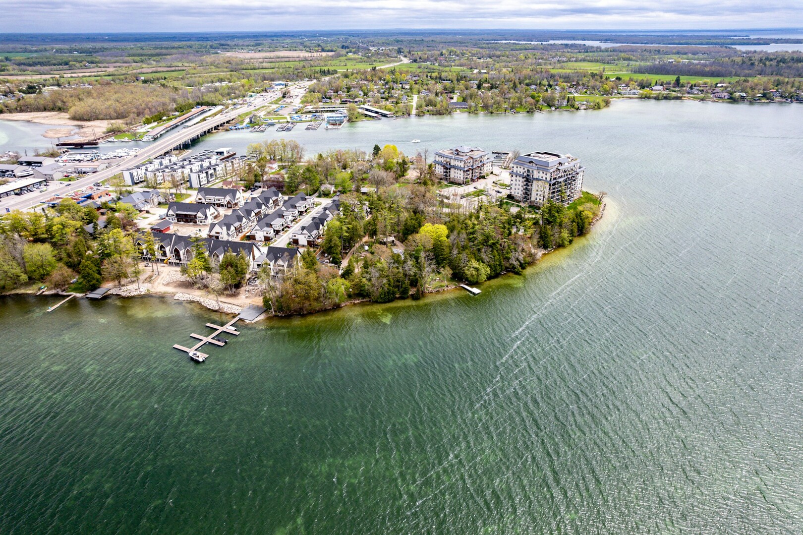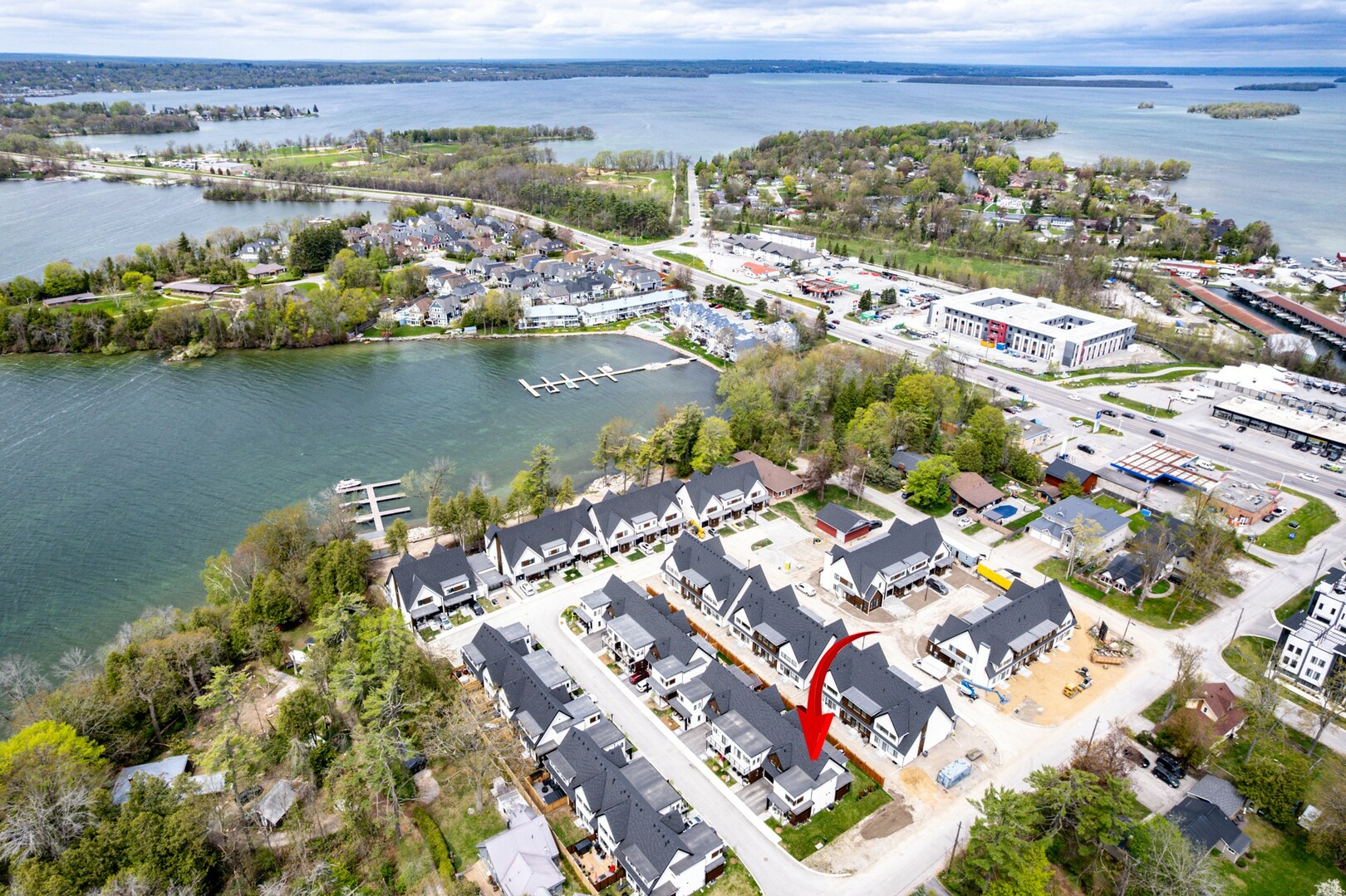 Welcome to Sophies Landing, a highly sought-after gated waterfront community nestled on the shores of Lake Simcoe in the vibrant City of Orillia. Dont miss this incredible opportunity to own in one of the areas most unique and scenic neighborhoods, now offered at a NEW PRICE! This beautifully upgraded end-unit townhouse, 3 spacious bedrooms & 2 full bathrooms, A bright, modern open-concept layout with soaring 18 ft ceilings in the living/dining area flooded with natural light, Main-floor bedroom with access to a luxurious 4-piece bathroom featuring quartz countertops and elegant Spanish tile perfect for guests or multi-generational living, Stylish vinyl cork flooring throughout main and upper levels, Upgraded kitchen with quartz countertops, stainless steel appliances, and a large functional island perfect for entertaining, Enjoy a large fenced backyard with no right-of-way easement (unlike interior units), offering privacy and security. Live the waterfront lifestyle surrounded by nature and convenience, Access to Lake Simcoe with operational boat slips and community dock, A brand-new clubhouse (under construction) with gym, party room and outdoor pool, Direct access to walking & biking trails, nearby parks, and Mara Provincial Park, Minutes to Casino Rama, downtown Orillia, shops, restaurants, and more! Experience luxury, comfort, and peace of mind in this safe, gated community. Book your private viewing today and take advantage of this rare opportunity to own Sophie's Landing before the community is fully completed and prices rise!