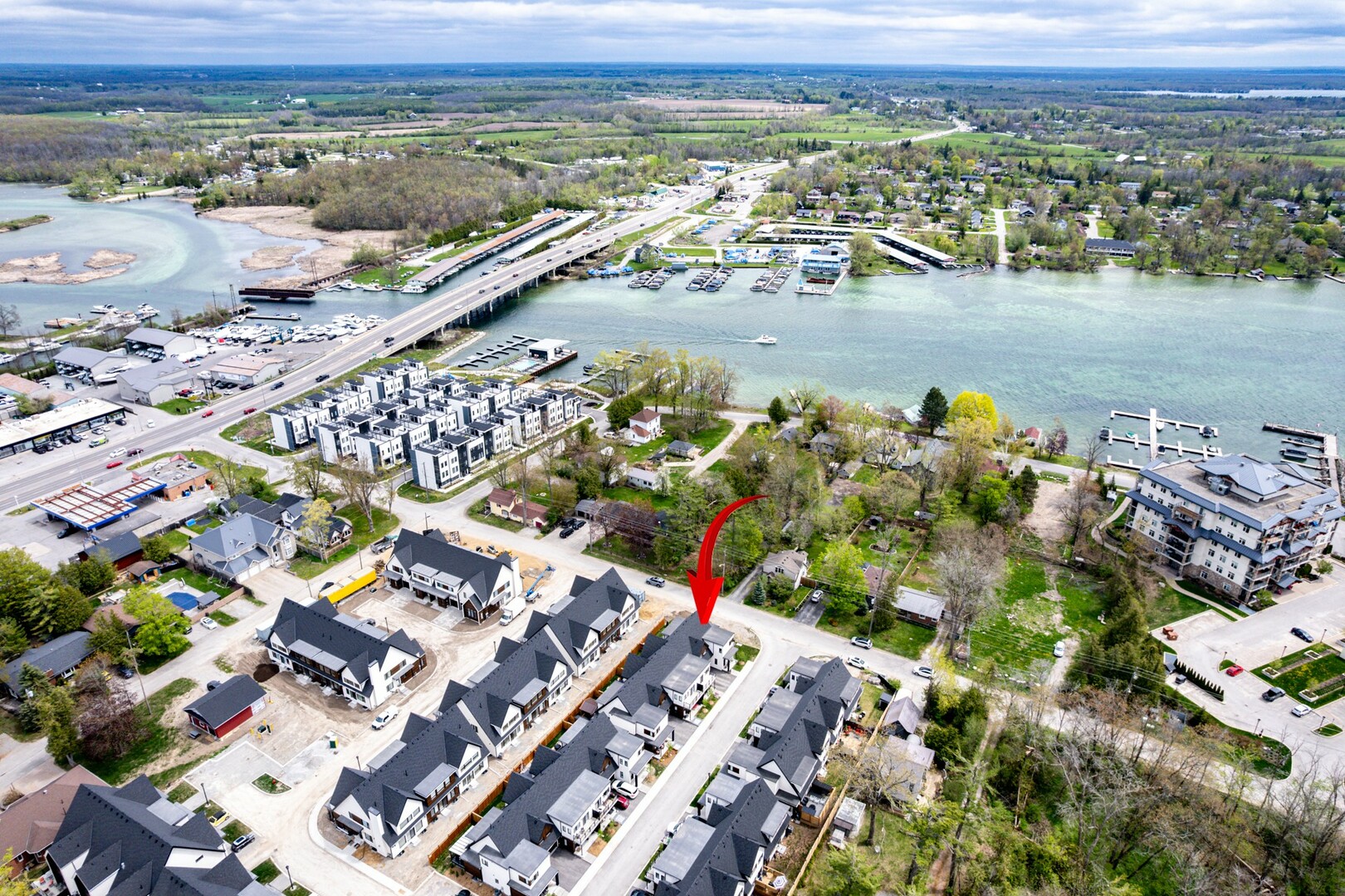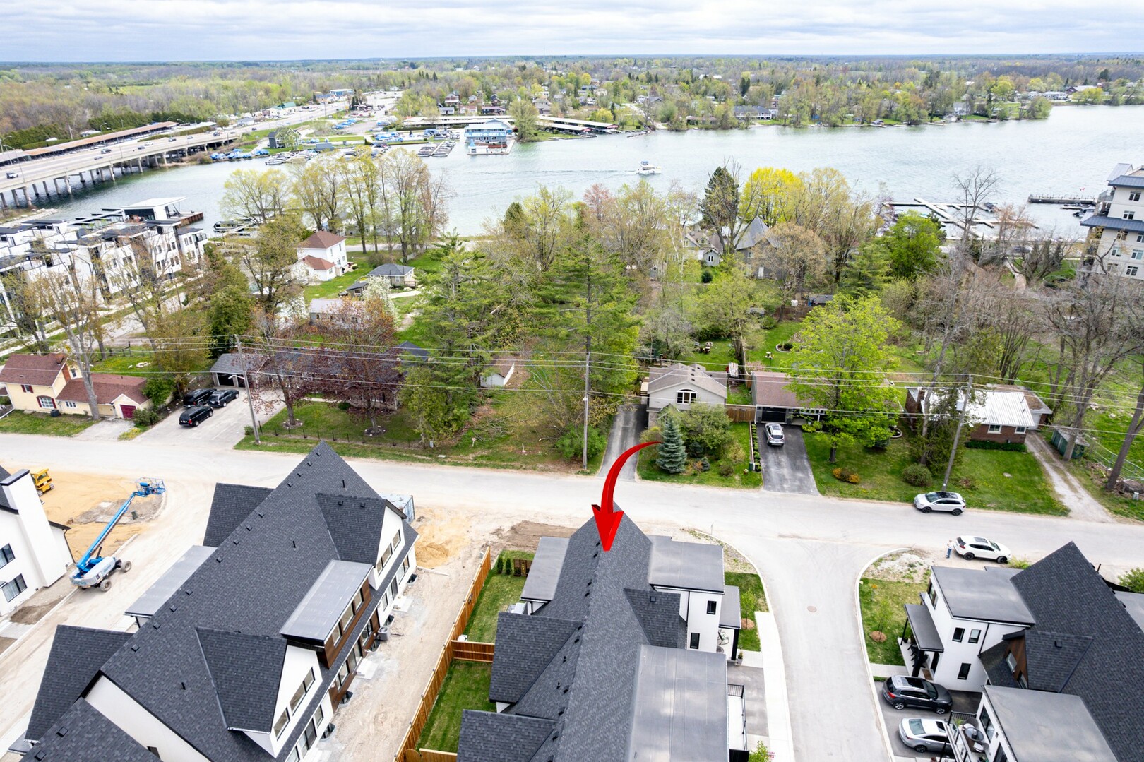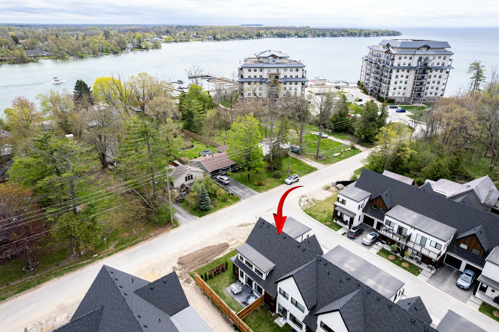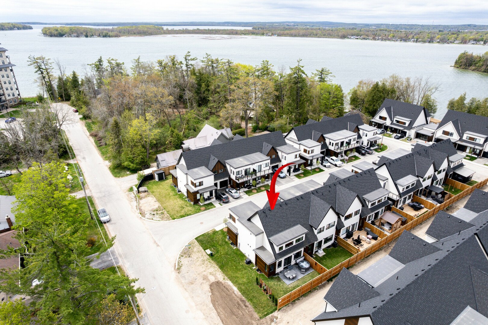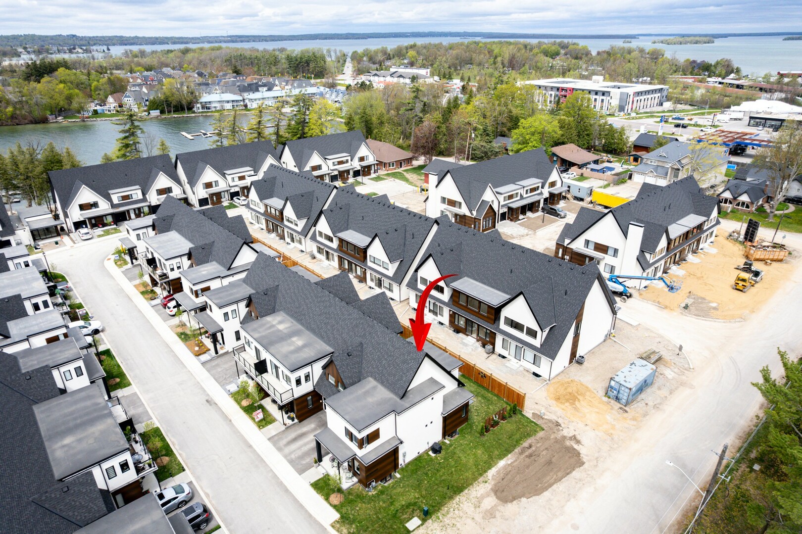 Welcome to Sophies Landing, a highly sought-after gated waterfront community nestled on the shores of Lake Simcoe in the vibrant City of Orillia. Dont miss this incredible opportunity to own in one of the areas most unique and scenic neighborhoods, now offered at a NEW PRICE! This beautifully upgraded end-unit townhouse, 3 spacious bedrooms & 2 full bathrooms, A bright, modern open-concept layout with soaring 18 ft ceilings in the living/dining area flooded with natural light, Main-floor bedroom with access to a luxurious 4-piece bathroom featuring quartz countertops and elegant Spanish tile perfect for guests or multi-generational living, Stylish vinyl cork flooring throughout main and upper levels, Upgraded kitchen with quartz countertops, stainless steel appliances, and a large functional island perfect for entertaining, Enjoy a large fenced backyard with no right-of-way easement (unlike interior units), offering privacy and security. Live the waterfront lifestyle surrounded by nature and convenience, Access to Lake Simcoe with operational boat slips and community dock, A brand-new clubhouse (under construction) with gym, party room and outdoor pool, Direct access to walking & biking trails, nearby parks, and Mara Provincial Park, Minutes to Casino Rama, downtown Orillia, shops, restaurants, and more! Experience luxury, comfort, and peace of mind in this safe, gated community. Book your private viewing today and take advantage of this rare opportunity to own Sophie's Landing before the community is fully completed and prices rise!