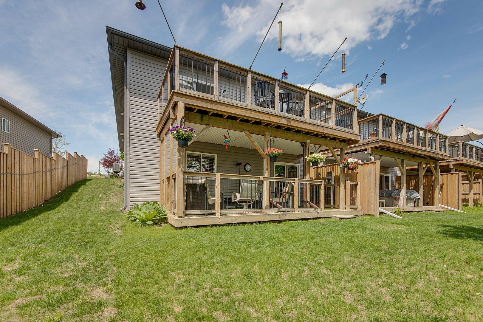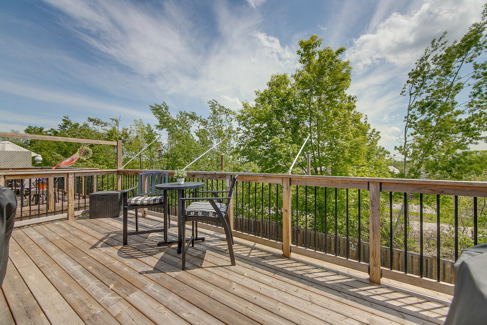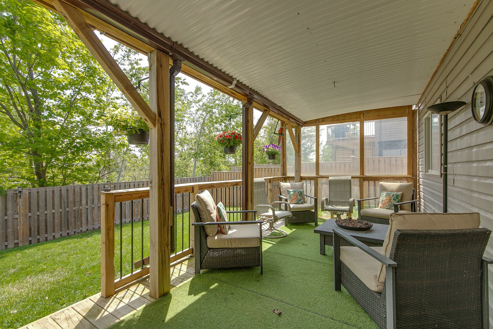 END UNIT Freehold Townhome With Walk Out Basement!!! Welcome To This Beautifully Maintained Bungalow In The Heart Of Orillia. Offering Over 2,500 Sq Ft Of Comfortable, Thoughtfully Designed Living Space. Perfect For Downsizers Or Those Seeking A Low-Maintenance Lifestyle Without Compromising On Space Or Quality. Enjoy The Bright, Open-Concept Main Floor, Ideal For Hosting Family & Friends Or Relaxing In Peace. Step Out Onto 1 Of The 2 Upgraded & Designated Decks, Complete With Cozy Lounge Areas And Built-In Gas BBQ. The Finished Walk-Out Basement Featuring A Custom Bar Is A True Bonus, Embrace Warm Moments During The Cooler Months By The Gas Fireplace And Try Your Hand In The Generous Workshop Space For Hobbiests Or Handy Men, Plus a Convenient Third Bathroom. As An End Unit, You Will Appreciate the Added Privacy, Additional Windows & Natural Light, Extra Green Space And Quiet Surroundings. Located Close To Shopping, Parks, & Beautiful Lake Couchiching. This Home Offers The Perfect Blend Of Comfort, Convenience And Lifestyle. Come Enjoy This Upgrade!